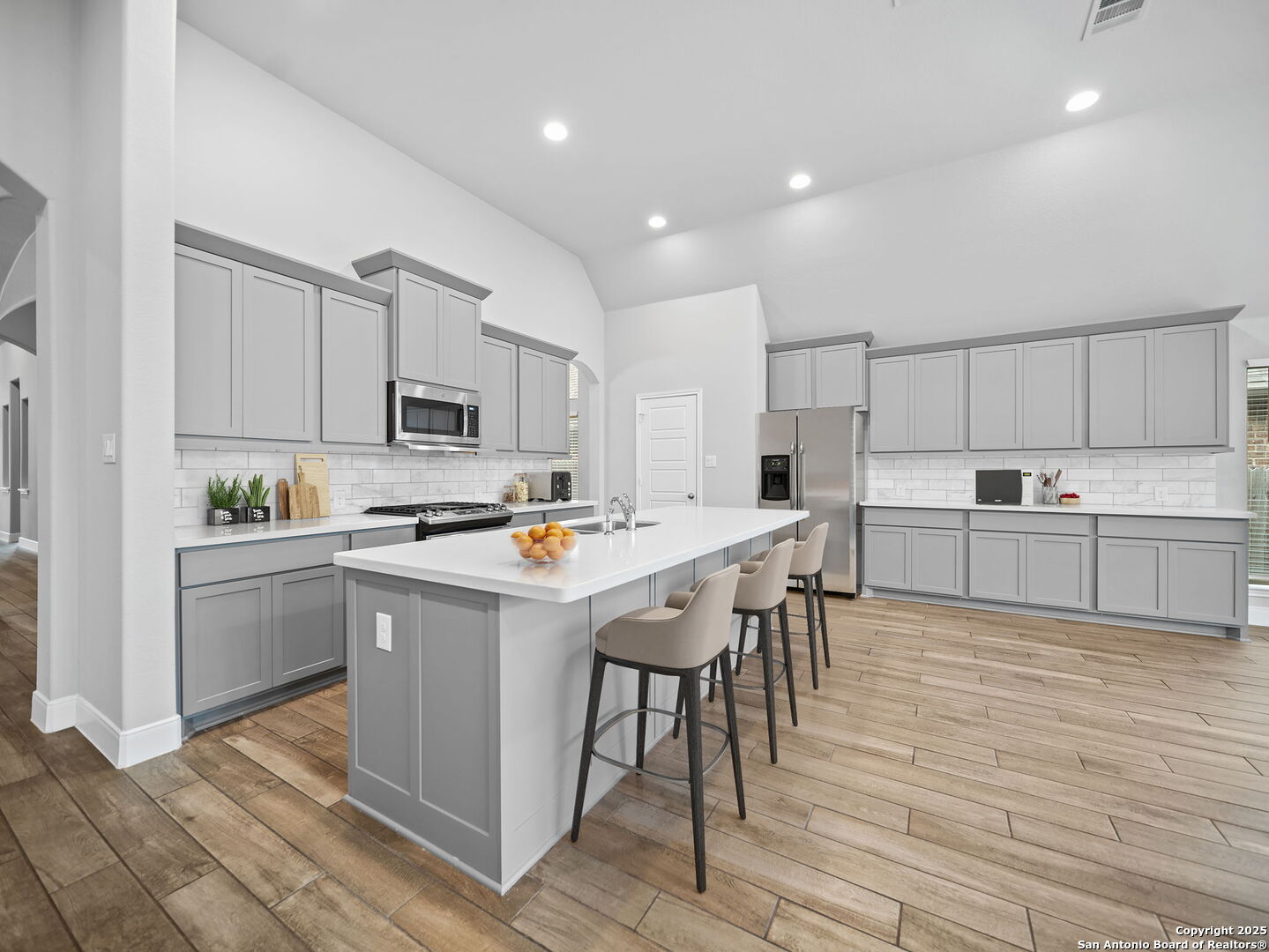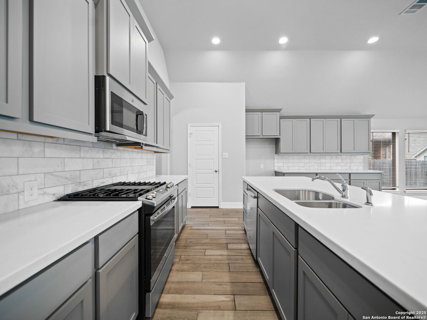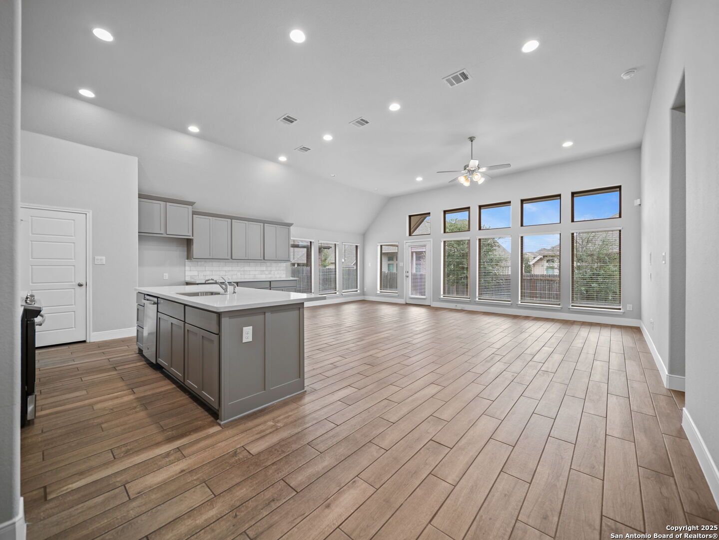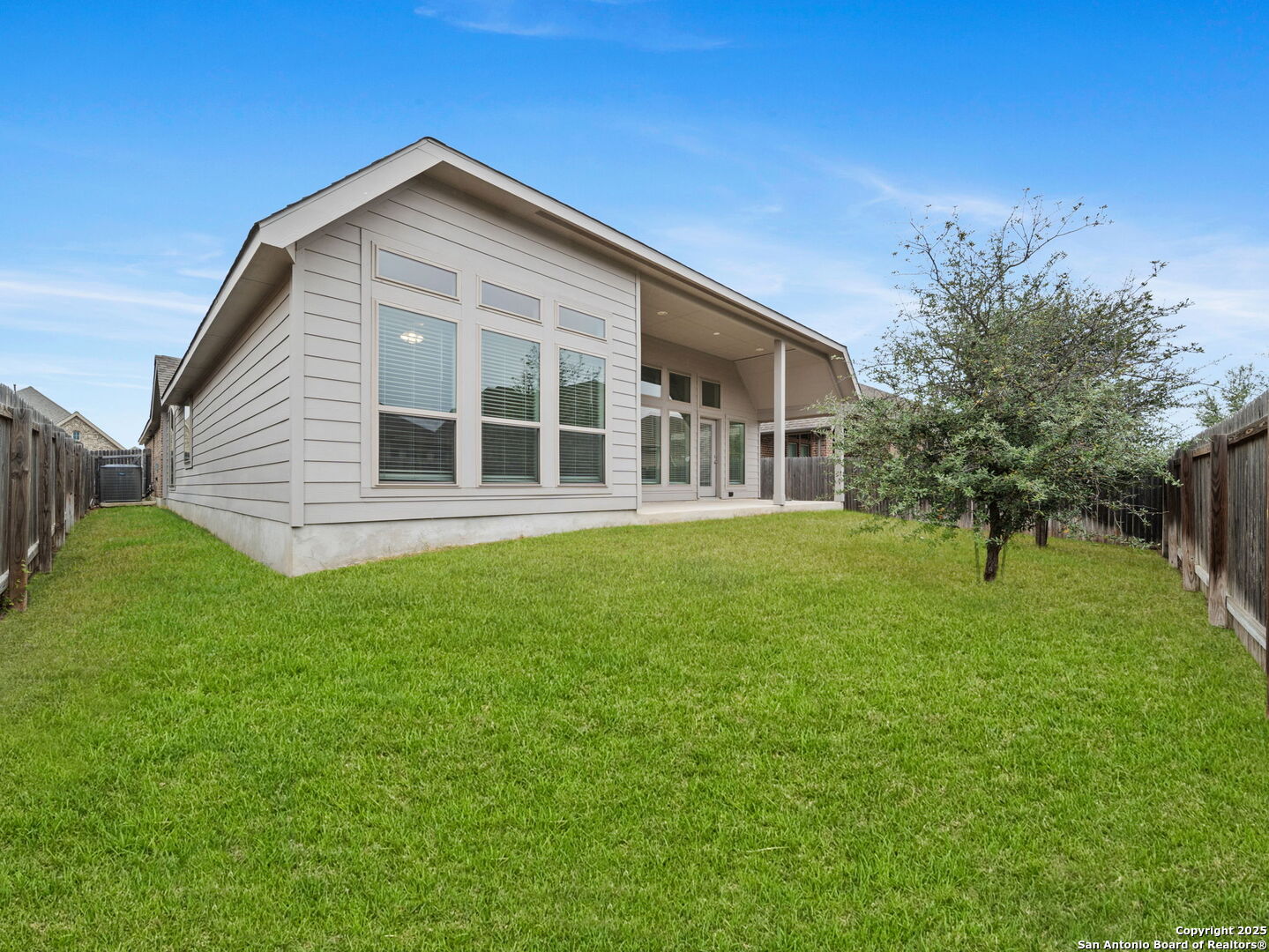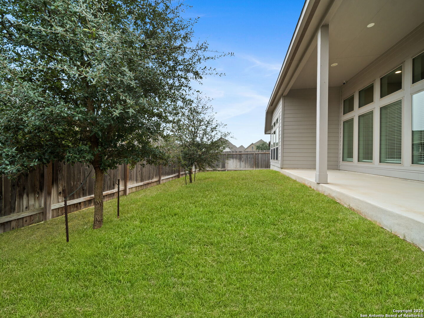 $10,000 in closing costs you don't want to miss! Welcome to this stunning 4-bedroom, 3-bath home located in the desirable Kallison Ranch community. Built in 2019, this well-maintained property offers an open-concept layout with high ceilings, abundant natural light, and modern finishes throughout. The spacious kitchen features a large island with seating, stainless steel appliances, granite countertops, and a walk-in pantry, opening to a bright living area perfect for entertaining. The primary suite includes a garden tub, separate shower, dual vanities, and a large walk-in closet. Additional features include a formal dining room, versatile game room or office with French doors, and a full guest suite. Enjoy outdoor living on the covered patio overlooking the fenced backyard. Community amenities include pools, playgrounds, and walking trails. Conveniently located near shopping, dining, and top-rated NISD schools, this home offers comfort and convenience in one of San Antonio's most sought-after areas. Buyer and Buyer's Rep to verify all information contained herein.