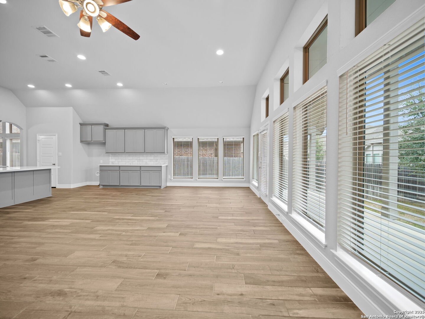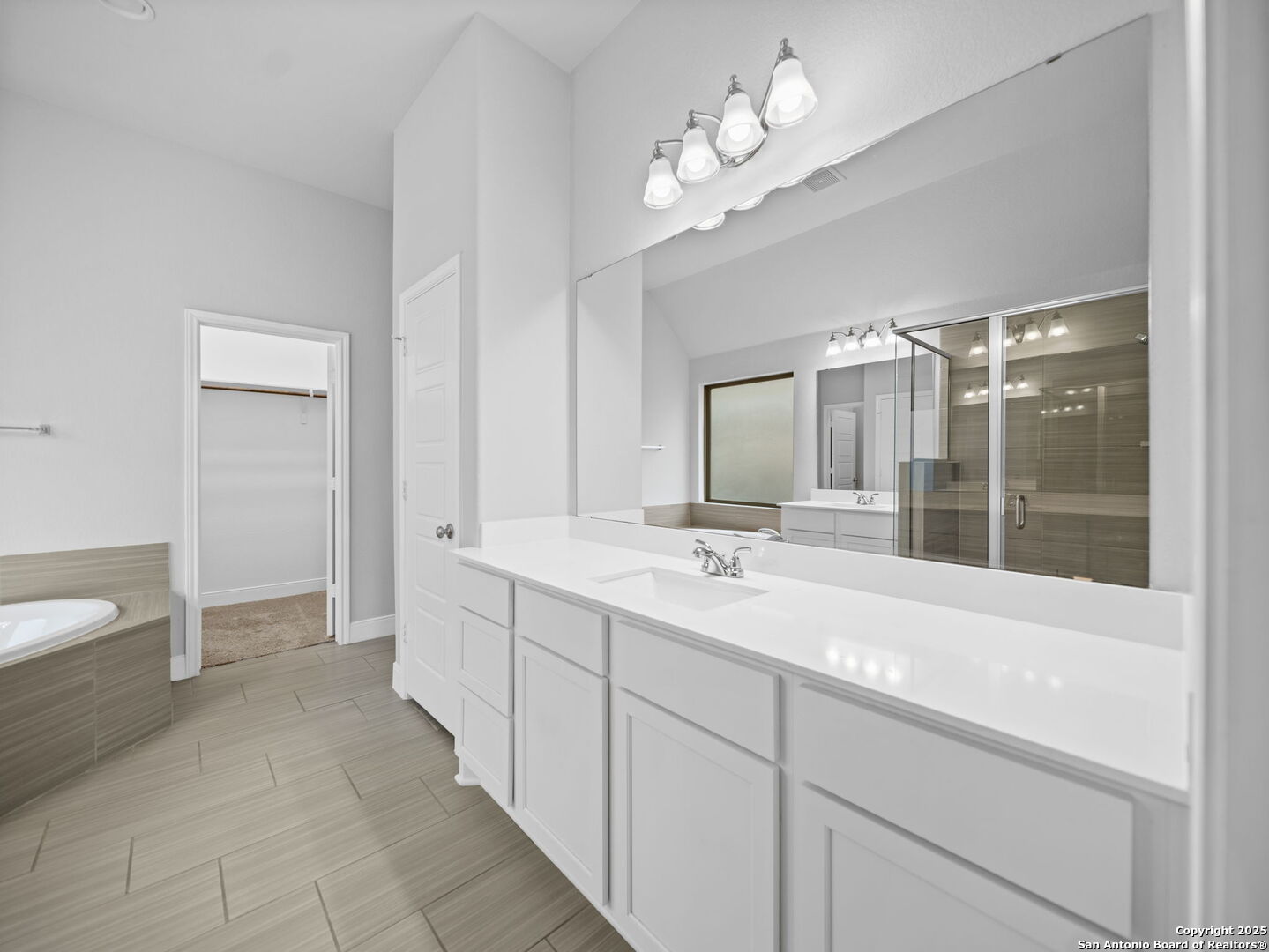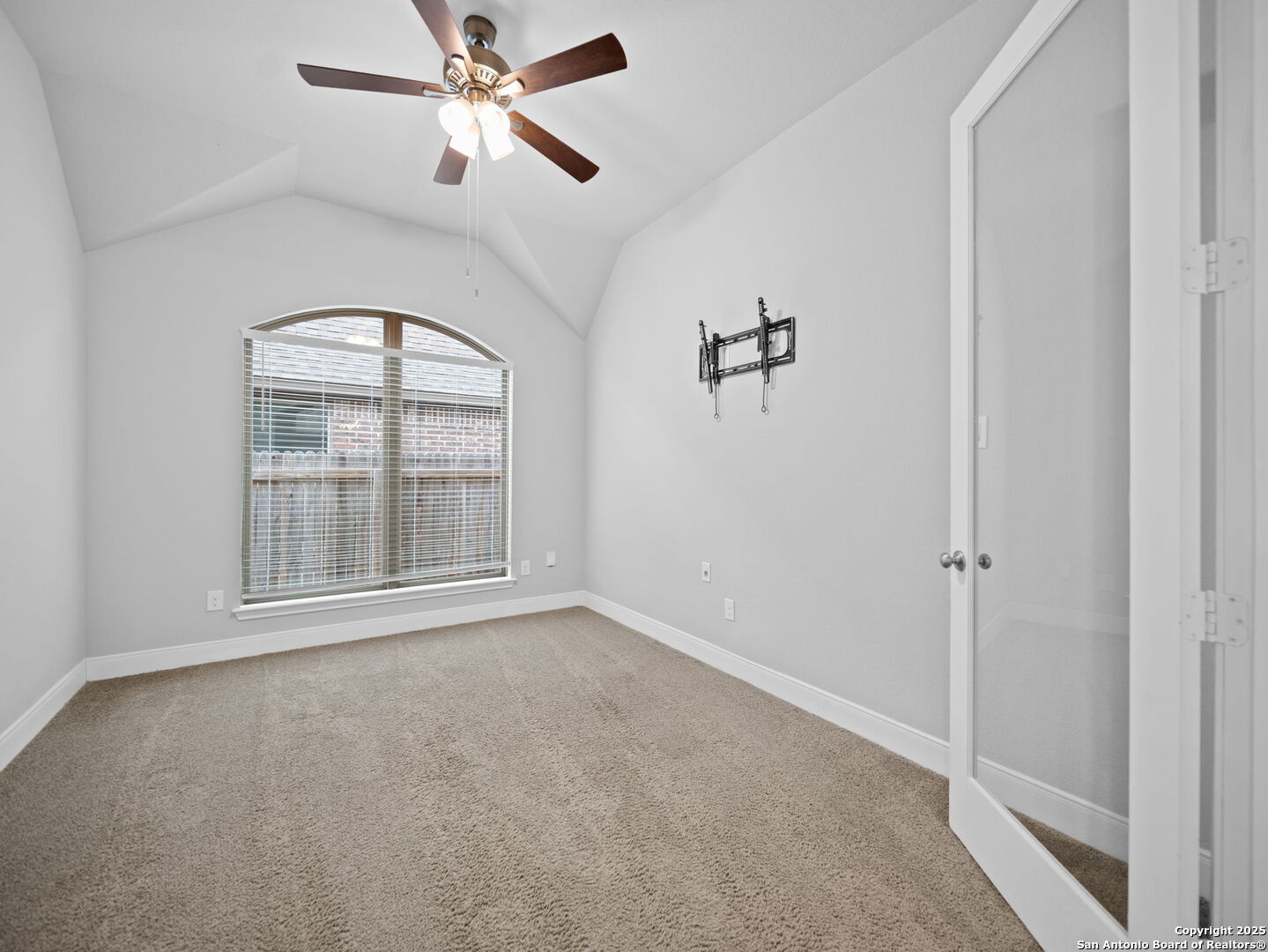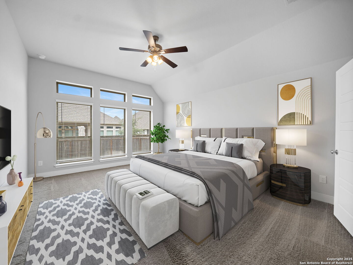 $10,000 in closing costs you don't want to miss! Welcome to this stunning 4-bedroom, 3-bath home located in the desirable Kallison Ranch community. Built in 2019, this well-maintained property offers an open-concept layout with high ceilings, abundant natural light, and modern finishes throughout. The spacious kitchen features a large island with seating, stainless steel appliances, granite countertops, and a walk-in pantry, opening to a bright living area perfect for entertaining. The primary suite includes a garden tub, separate shower, dual vanities, and a large walk-in closet. Additional features include a formal dining room, versatile game room or office with French doors, and a full guest suite. Enjoy outdoor living on the covered patio overlooking the fenced backyard. Community amenities include pools, playgrounds, and walking trails. Conveniently located near shopping, dining, and top-rated NISD schools, this home offers comfort and convenience in one of San Antonio's most sought-after areas. Buyer and Buyer's Rep to verify all information contained herein.