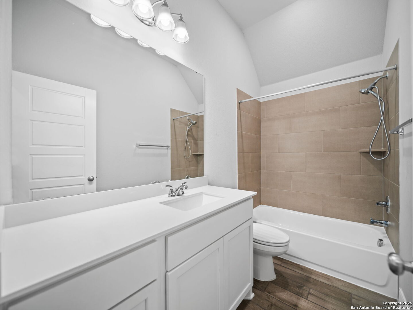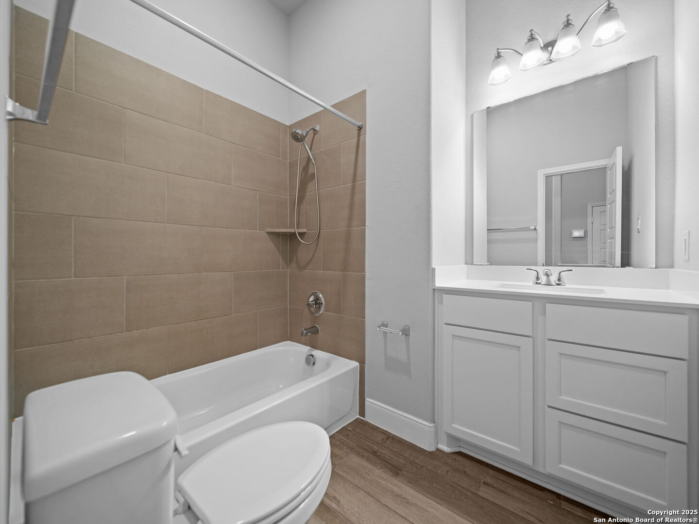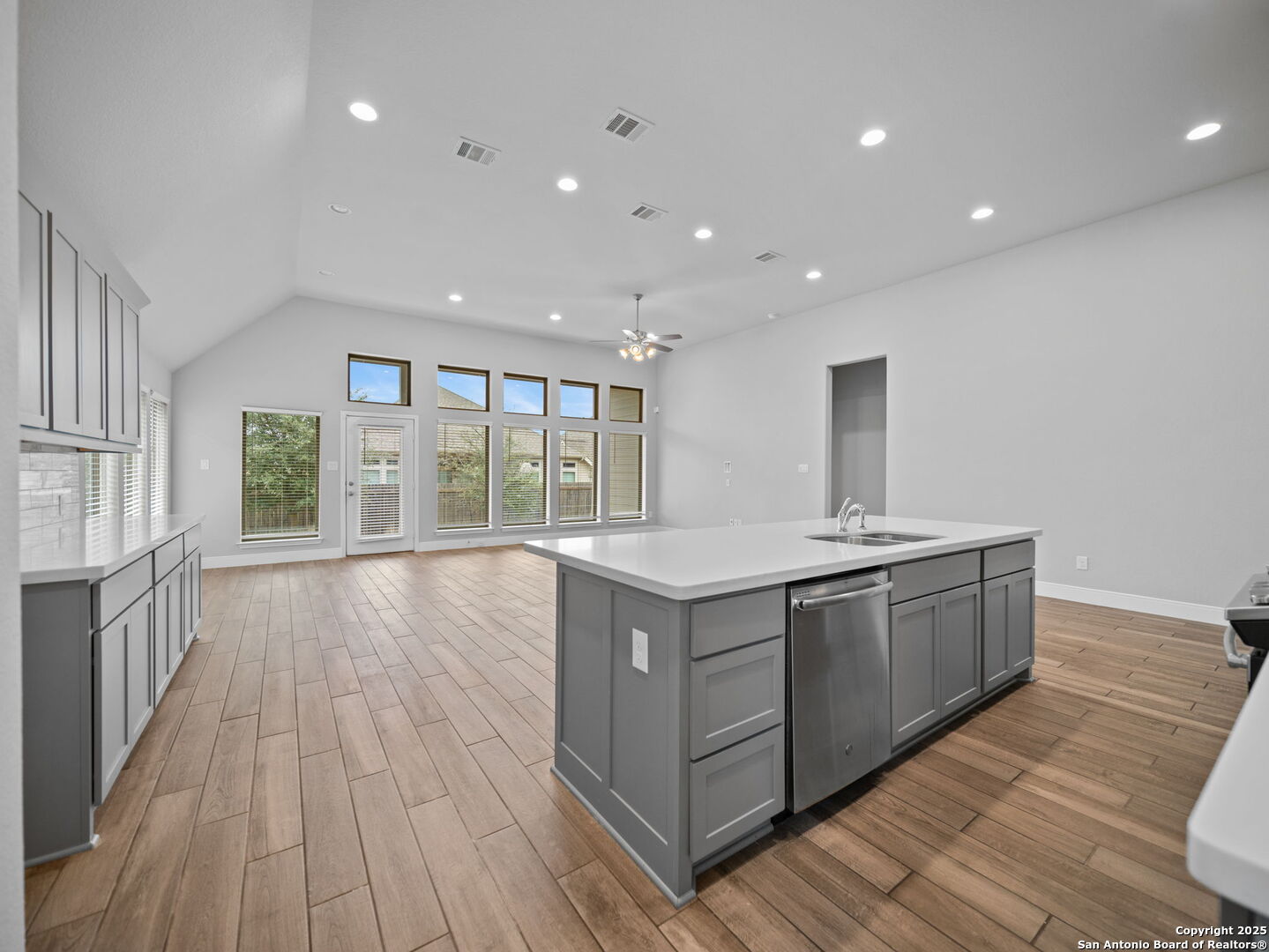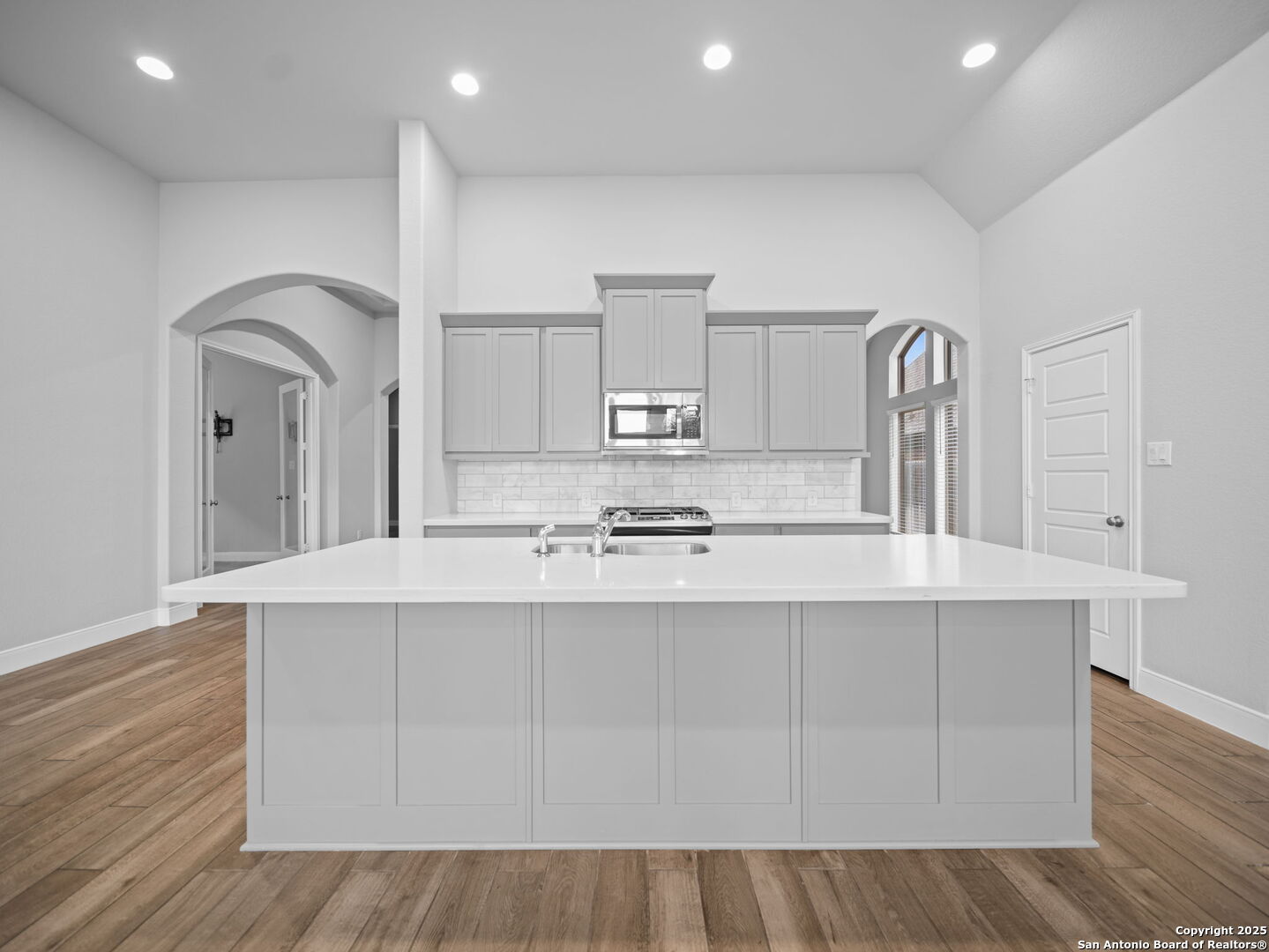 $10,000 in closing costs you don't want to miss! Welcome to this stunning 4-bedroom, 3-bath home located in the desirable Kallison Ranch community. Built in 2019, this well-maintained property offers an open-concept layout with high ceilings, abundant natural light, and modern finishes throughout. The spacious kitchen features a large island with seating, stainless steel appliances, granite countertops, and a walk-in pantry, opening to a bright living area perfect for entertaining. The primary suite includes a garden tub, separate shower, dual vanities, and a large walk-in closet. Additional features include a formal dining room, versatile game room or office with French doors, and a full guest suite. Enjoy outdoor living on the covered patio overlooking the fenced backyard. Community amenities include pools, playgrounds, and walking trails. Conveniently located near shopping, dining, and top-rated NISD schools, this home offers comfort and convenience in one of San Antonio's most sought-after areas. Buyer and Buyer's Rep to verify all information contained herein.