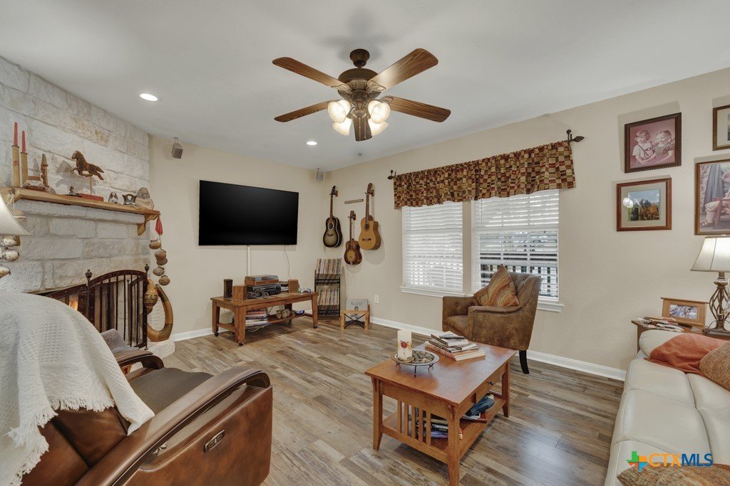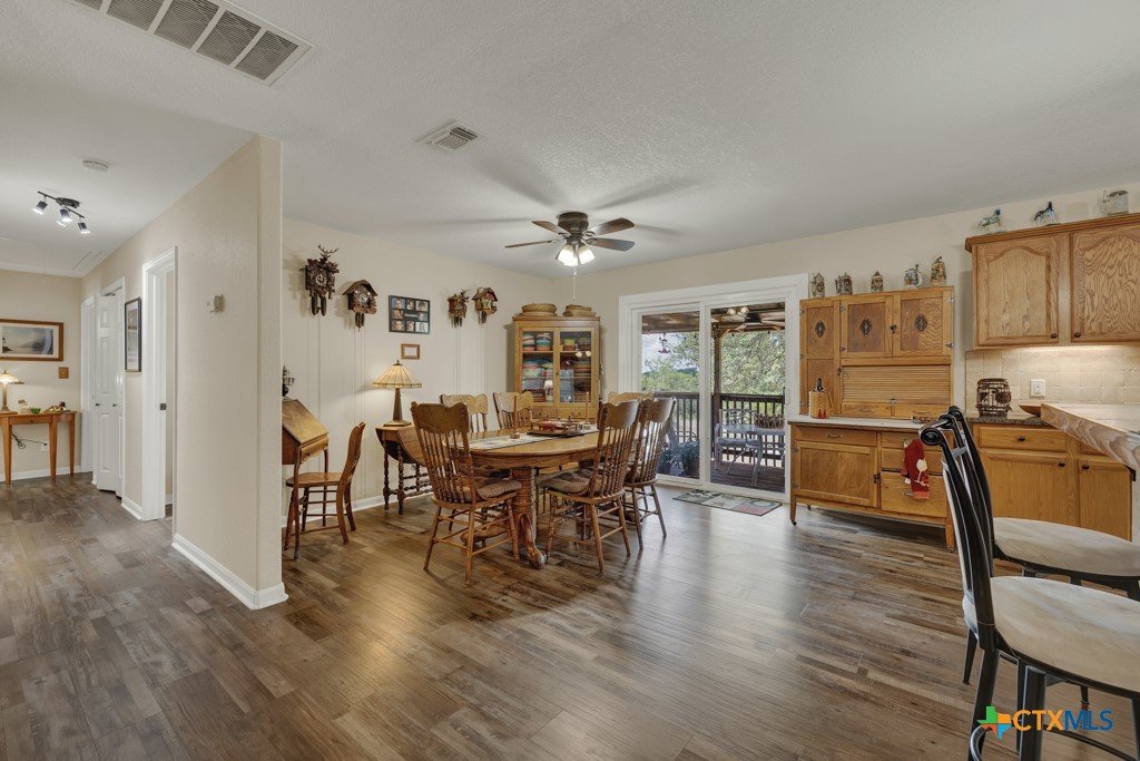 Welcome to 911 Heritage Hill, a thoughtfully designed home nestled in the heart of Canyon Lake. Surrounded by the natural beauty of the Texas Hill Country, this property offers the perfect blend of comfort, style, and convenience. Step inside to find an open floor plan filled with natural light, ideal for both everyday living and entertaining. The spacious kitchen boasts modern finishes, and ample counter space, perfect for gathering with family and friends. The living area features a fireplace, recessed lighting, and scenic views, creating a welcoming atmosphere throughout. The primary suite provides a private retreat with a generous layout and en-suite bath. Additional bedrooms offer flexibility for guests, family, or a home office. Enjoy peace of mind with a roof that’s just a couple of years old, adding value and reducing future maintenance. Outdoors, enjoy a covered deck and private backyard that invite relaxation, barbecues, or evenings under the stars. Have extra toys? There is also boat and/or RV covered parking with attached storage building! The property’s location is a standout—just minutes from Canyon Lake, local marinas, parks, and nature trails, offering endless opportunities for recreation. Whether you’re seeking a full-time residence, weekend getaway, or investment property, 911 Heritage Hill delivers Hill Country living at its finest.