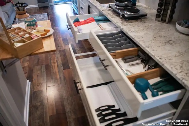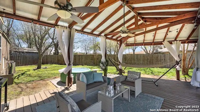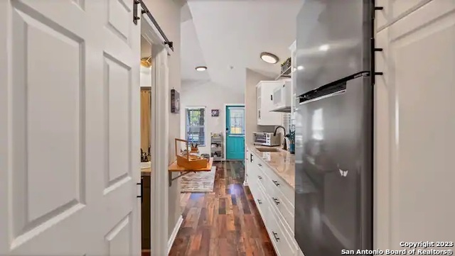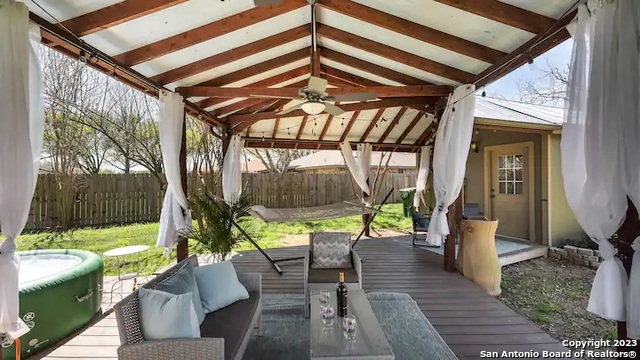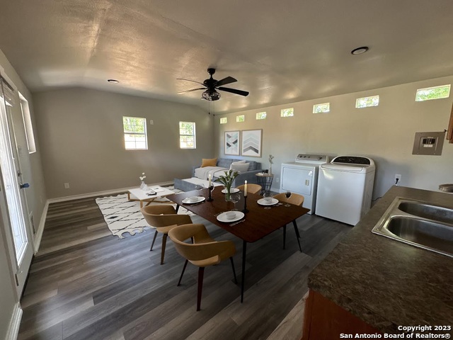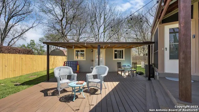 Welcome to your dream escape in this enchanting property containing a fully furnished Tiny Haus and separate dwelling nestled in a serene and picturesque setting. Previously an Air BNB, this thoughtfully designed and meticulously crafted retreat offers a unique blend of comfort, convenience, and tranquility. Whether you're seeking a cozy weekend getaway for guests or a minimalist lifestyle, this Tiny Haus has it all. Step into a world of elegance within a compact space. Despite its size, this Tiny Haus doesn't compromise on comfort. The clever layout maximizes every square inch, offering an open living area, a cozy sleeping loft, and a functional kitchenette. Enjoy modern amenities and storage including being well-equipped with essentials, a bathroom with a space-efficient shower, and a convenient stacked washer and dryer. The separate spacious dwelling (approx. 352 sqft) includes kitchenette, washer/dryer, new flooring and is freshly painted ready for your personal touch! The rustic yet contemporary design creates a warm and welcoming ambiance. Embrace the beauty of nature on the charming outdoor deck. It's the perfect spot for morning coffee, evening stargazing, or simply unwinding in the fresh air. This Tiny Haus presents an excellent opportunity for rental income through platforms like Airbnb. Its uniqueness and charm make it a sought-after destination for travelers seeking a one-of-a-kind experience. Right outside of city limits with no HOA, this property is a dream to live freely while being close to a fantastic community. Situated in New Braunfels, you'll have easy access to rivers, Downtown, Landa Park, Canyon Lake and everything Texas Hill Country! Whether you're an adventure seeker or a culture enthusiast, there's something for everyone nearby!