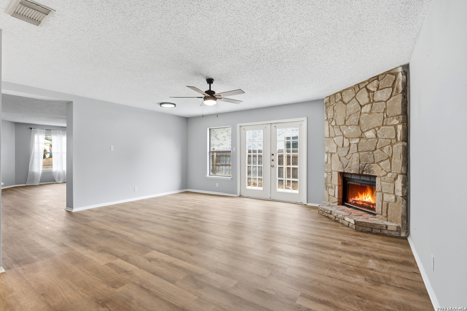 This well-maintained single-story rental offers a functional layout with a stone exterior and comfortable living spaces, featuring a living room with recessed lighting and a stone wood-burning fireplace, plus a kitchen with white cabinetry and a breakfast bar. The primary bedroom includes an attached bath with a garden tub and walk-in closet, while secondary rooms provide flexibility for a home office or storage. The backyard features a patio slab and privacy fence for easy outdoor living, and residents enjoy neighborhood amenities including a pool, park, sports court, and clubhouse. Conveniently located near Loop 1604 with quick access to SeaWorld, Alamo Ranch, La Cantera, Northwest Vista College, and Lackland AFB, and situated in the award-winning Northside ISD. Schedule your showing today!