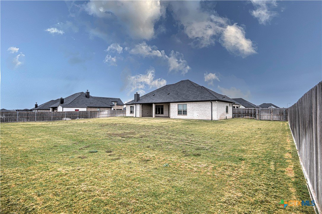 RATE BUY-DOWN CREDITS AVAILABLE!!! Welcome to the Castell floorplan by Carothers Executive Homes—offering 4 bedrooms, 3.5 bathrooms, and 2,804 SqFt on a .44-acre lot in Mesa Ridge within Belton ISD. The main living area features a vaulted ceiling with beam detail, a floor-to-ceiling stone fireplace, and large windows overlooking the covered patio. Roller shades and plantation shutters provide light control and privacy. The kitchen includes an oversized island, double smart wall ovens, custom vent hood, uplighting and under-cabinet lighting, soft-close cabinetry, and a walk-in pantry with wrap-around shelving. Dining spaces are positioned for easy flow between meals and gathering. The bedroom layout includes a private guest suite, plus two secondary bedrooms connected by a true Jack-and-Jill—each with an individual vanity and dressing area and a centrally located tub/shower. A half bath is near the laundry room. Notable builder and owner upgrades include: Atlas Pinnacle Class 3 roofing shingles, LG ultra-capacity French-door refrigerator, custom window treatments, triple shower heads in the primary bath, Ring doorbell, smart thermostat, stone fireplace on patio, outdoor sink/prep area, TV mounts installed, pre-wired TV connections including patio, Christmas light outlets under eaves, water softener loop, exterior lighting automation, operable-glass front door, updated landscaping mulch (winter 2025), and an oversized 3-car garage (approx. 21' x 29.8') with 10-ft ceilings and smart openers with cameras. Outdoor living includes a covered patio with stone fireplace, sink/prep area, and TV connection. Interior finishes include wood-look tile in main areas, granite in secondary baths, crown molding, and a glass-panel entry door. Mesa Ridge offers convenient access to shopping, dining, schools, and Belton Lake.