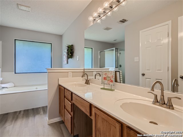 This beautiful home was recently updated. This is a Rare find in a small gated quite neighborhood! Recent renovations including fresh paint and new floors updated contemporary lighting and ceiling fans 2in. faux wood blinds throughout the home. NO CARPET Two living, dining room, fabulous gourmet kitchen/breakfast area with granite counter tops, and new stainless-steel appliances Enjoy the main living room with wood burning fireplace. Downstairs half bath updated with granite counter top. Upstairs you will find fresh carpet ceiling fans in the bed and game rooms.Generous en suite with separate shower & garden tub, dual vanities and a large walk-in closet completes this owner's retreat. You will love the backyard with mature trees and plenty of room for our furry friends and the kids to run and play! Beautiful Small gated community close to Medical Center & USAA, bike trails, highways, schools & dining. Neighborhood park/playground,