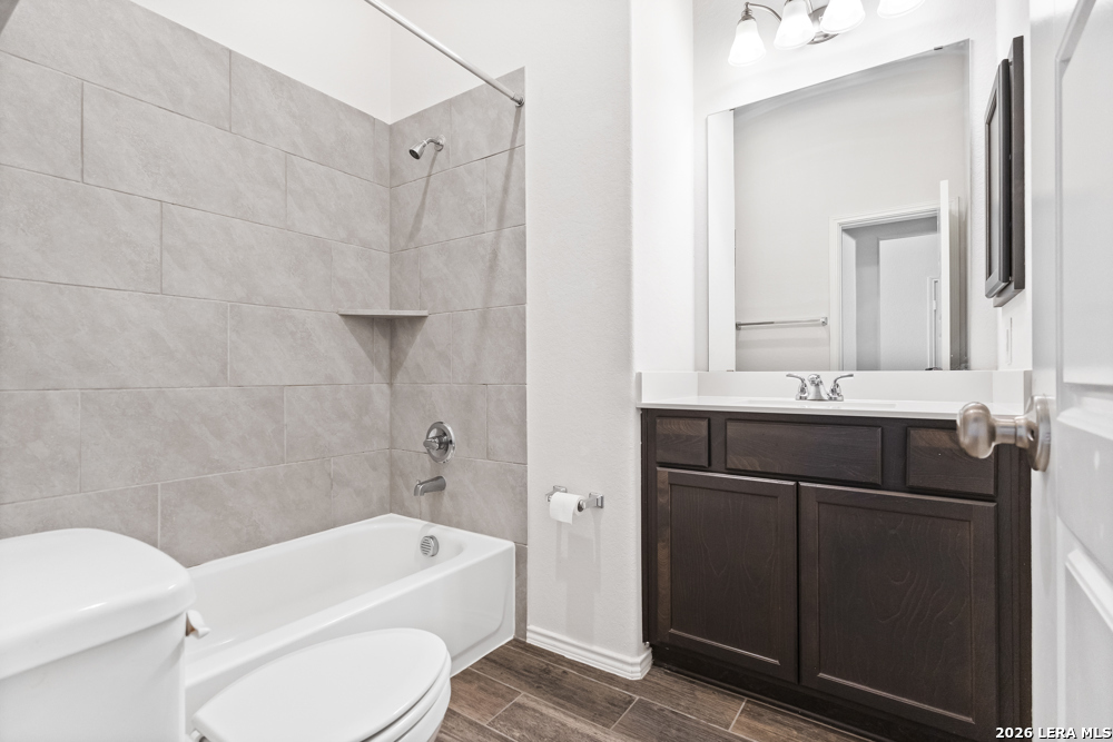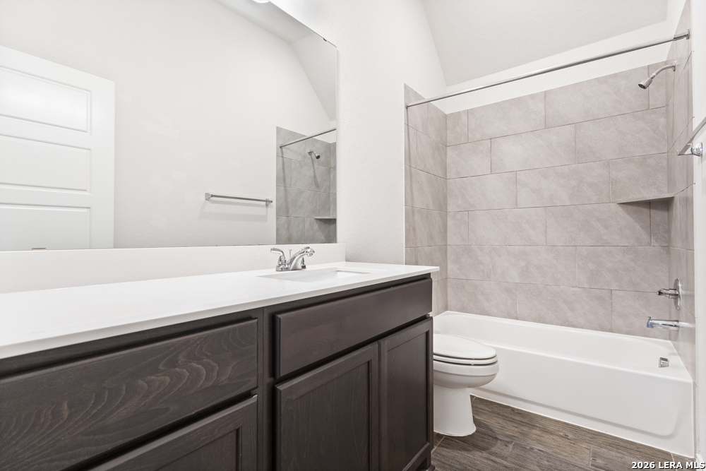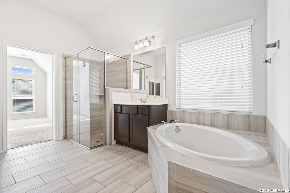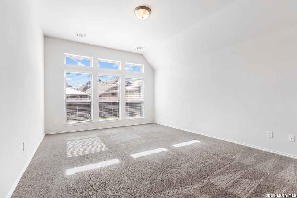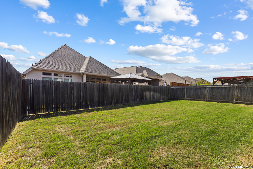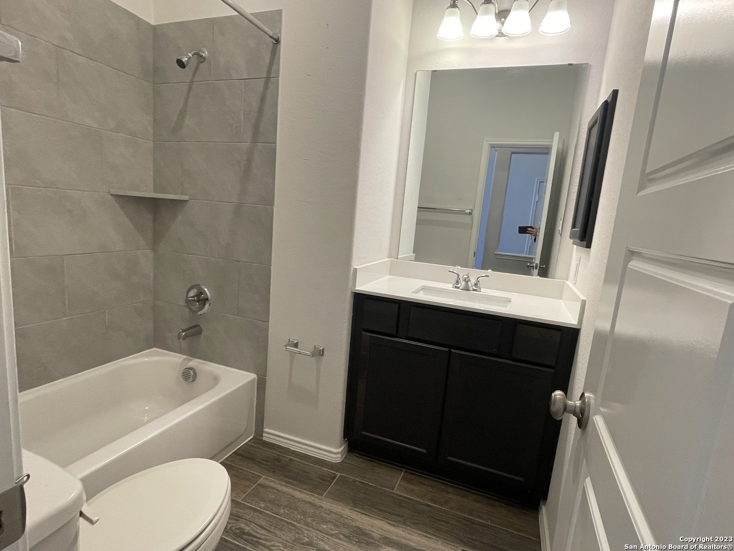 Located in the Kallison Ranch subdivision, this 4-bedroom, 3-bath home offers a spacious layout with high ceilings and abundant natural light throughout. The floor plan includes a dedicated office space suited for working from home or study. The kitchen features white cabinetry, stainless steel appliances including a dishwasher, and a large eat-in island that opens to the main living area. The primary suite continues the high ceilings and includes a walk-in closet and a private bath with a garden tub and separate stand-up shower. Secondary bedrooms provide flexibility for family or guests. The backyard is fully fenced with a privacy fence and covered patio, offering space for outdoor use. Community amenities include a playground and swimming pool. Conveniently located near SeaWorld, Alamo Ranch shopping, theaters, and dining. Make-ready items to be completed.