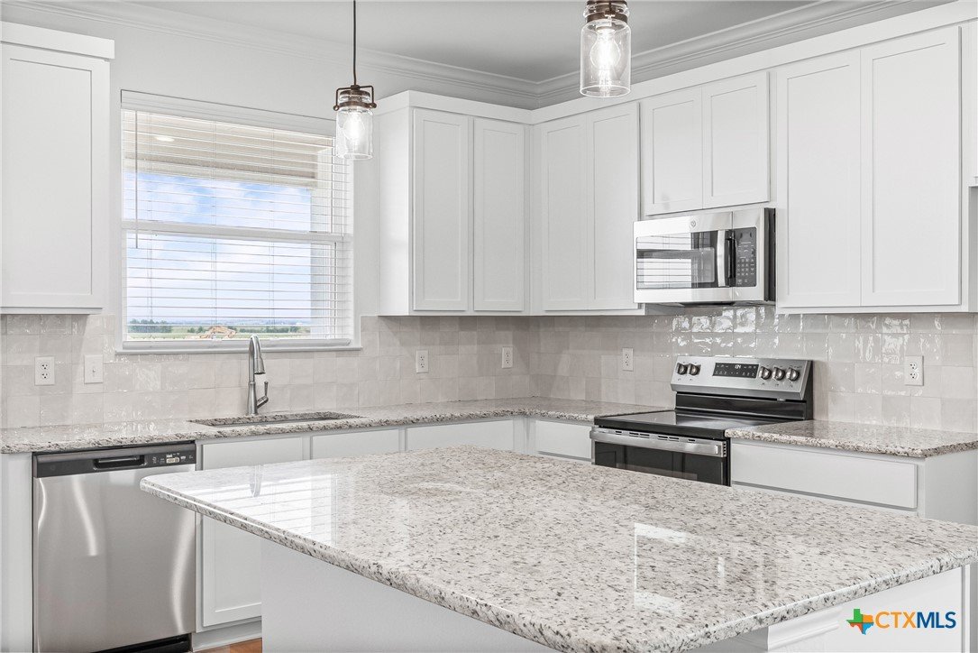 The Alamo floor plan offers a versatile and functional layout across 1,580 square feet. This three-bedroom, two-bath home comes with a study and is ideal for young professionals, families, or downsizers! This plan features an open-concept living area, breakfast, and kitchen with plenty of natural light to complement the space, making it perfect for entertaining. The kitchen includes stainless steel appliances with a large island that provides additional seating, storage, and cabinet space, while the primary bath has dual vanity sinks and a spacious closet. Plan variations include a fourth bedroom in place of the study.