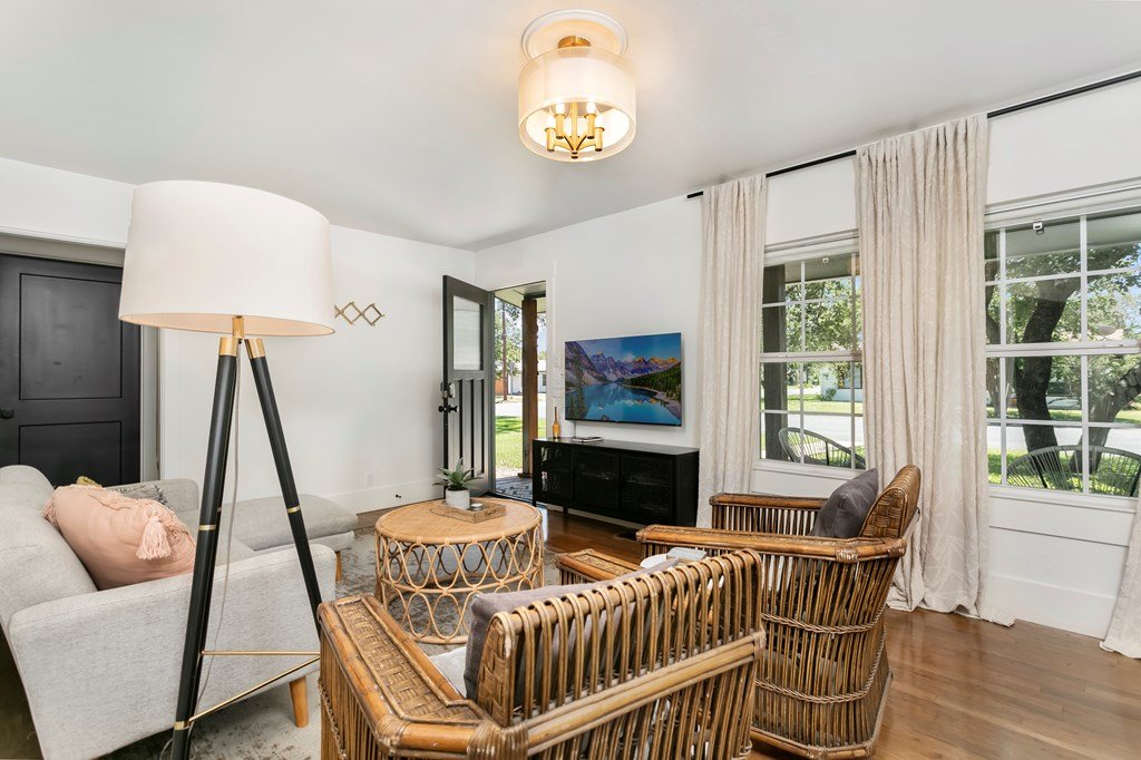Welcome to Shiloh Haus, a beautifully designed active short-term rental in the heart of Fredericksburg, ideally located just minutes from the renowned wineries along Highway 290 and a quick drive to historic Main Street. Situated on an oversized corner lot, this property offers the space, privacy, and outdoor amenities today's guests seek. The backyard is designed for memorable Hill Country evenings with a new six-person hot tub, fire pit, and grilling area, creating the perfect setting to relax after a day of wine tasting and exploring Fredericksburg. Inside, you'll find three spacious bedrooms and two stylish baths, warm hardwood floors, and a well-equipped kitchen ideal for hosting guests or preparing meals after a day of exploring Fredericksburg. The inviting living and dining spaces provide a wonderful gathering place for wine tastings, celebrations, or a cozy evening in. The entertainer's backyard and premium location make this property especially appealing for visitors looking to experience Fredericksburg's vibrant wine country and downtown charm. Currently operating as a successful short-term rental, this property offers excellent flexibility for investors or those seeking a Hill Country getaway. Fully furnished and turn-key, this beautifully appointed property is ready to continue as a successful short-term rental or become your own private Hill Country retreat just minutes from Fredericksburg's famed wineries and Main Street.