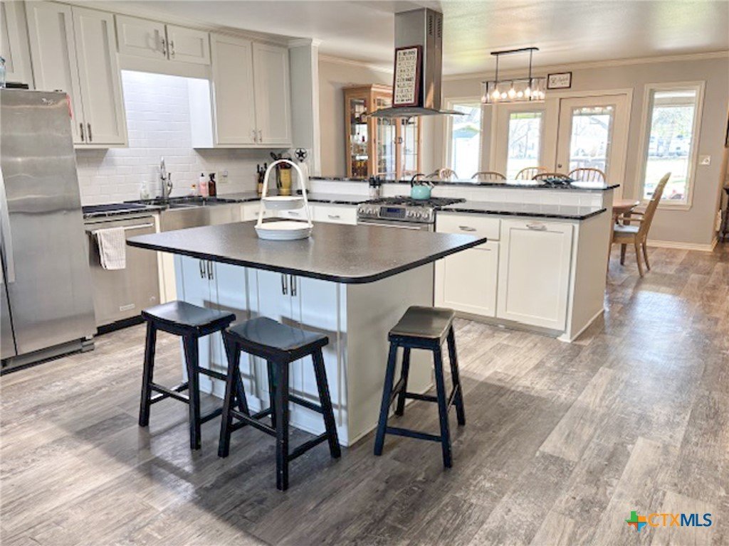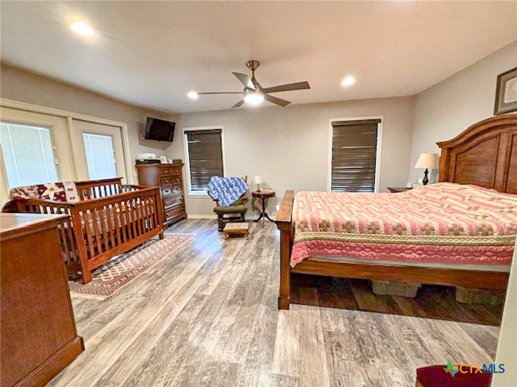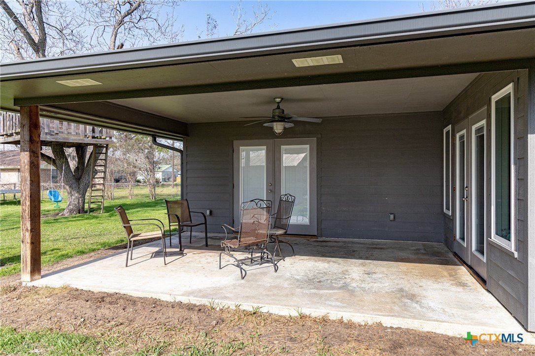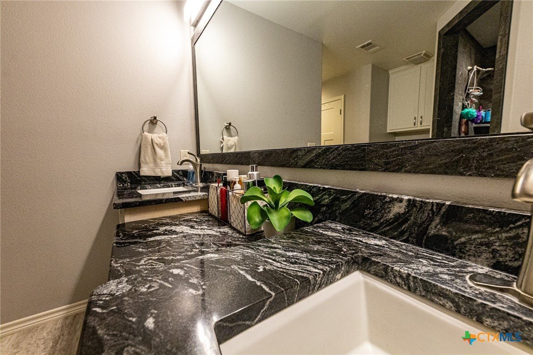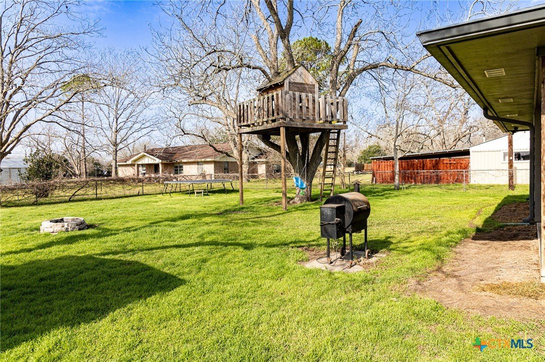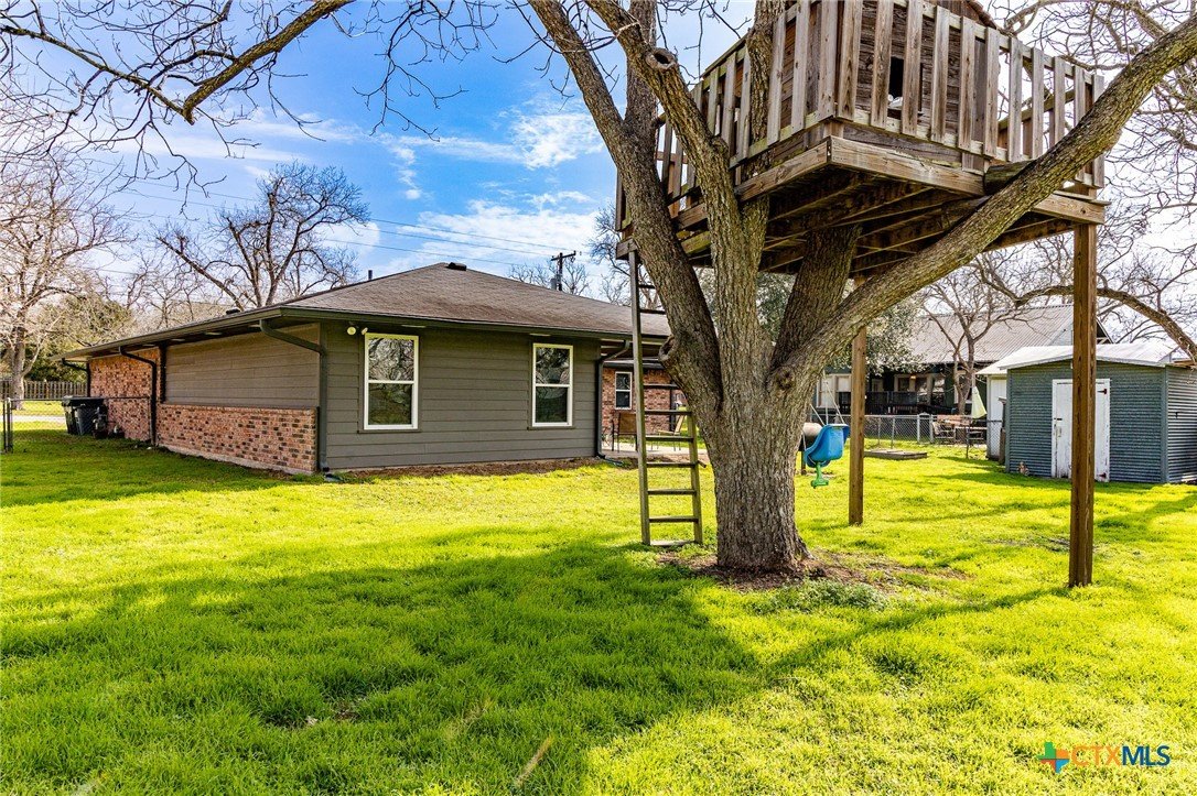 Beautifully remodeled 4 bedroom 2.5 bath home in Shiner, TX. This fantastic 1,949 square foot home was renovated a few years ago to feature many modern finishes that match today’s style. From the time you walk through the front door your eyes will be attracted to the openness of the living, kitchen and dining areas. The floor of the house is a an attractive, high end, scratch resistance, wood look vinyl flooring. In the kitchen a black corian countertop island and granite top cabinets accent the custom white cabinetry. The split design home features a master bedroom on one end of the home and three bedrooms on the other end. The large master bedroom has a walk-in closet, double vanity and custom shower ensuite. One of the three bedroom has a half bath ensuite and the other two bedrooms offer ample space. The home has a one car garage which shares utility space for the washer, dryer and space for extra freezers & refrigerators. The back yard can be access from the dining room as well as the master bedroom. As you step out of the house into the back yard you step onto a spacious covered porch. The back yard is shaded by a huge pecan tree with an awesome tree house built into it. The back yard is fully fenced with a chain link fence and features a storage building.