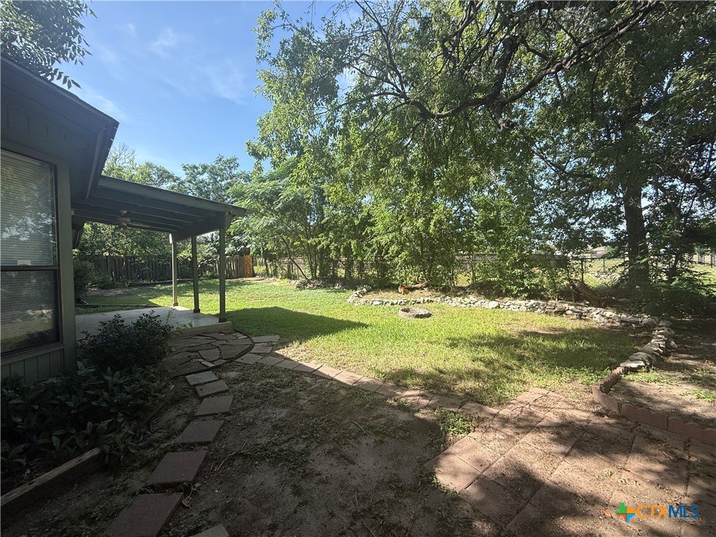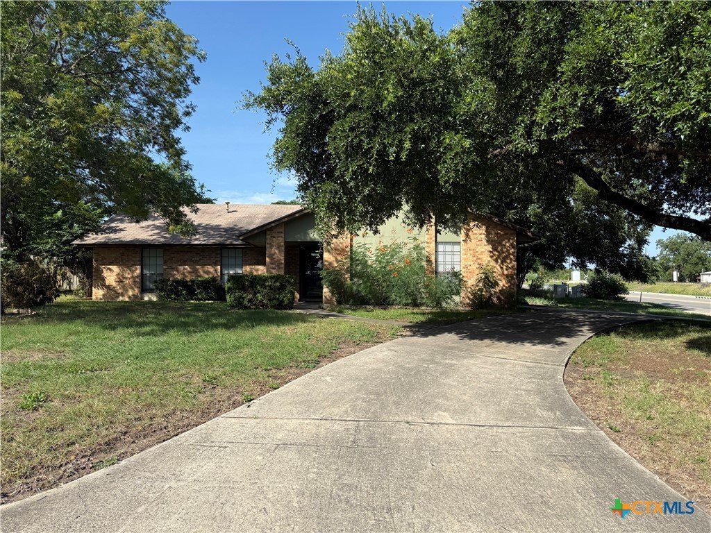 **Move In Now & Get 1 Month FREE! Applies to Month 2 or 3 Based on Start Date** Welcome to this inviting single-story home, perfectly positioned on a spacious corner lot with a circular driveway and side-entry two-car garage. Step inside to find durable tile flooring throughout and a spacious living room featuring a vaulted ceiling and a centrally located decorative fireplace that adds charm and character. The eat-in kitchen includes a cozy breakfast area with a bay window, a dishwasher, and an updated stove/oven. The generous primary suite offers a full bath with a walk-in shower accented by floor-to-ceiling tile, a single vanity, and a large walk-in closet. Two additional bedrooms are well-sized and share a hall bathroom with a tub/shower combo. Enjoy outdoor living in the fenced backyard, complete with mature trees and a covered patio-ideal for relaxing or entertaining guests. Located with quick access to Loop 337 and IH-35, this home is just minutes from shopping, dining, the newest H-E-B on Walnut Avenue, and within walking distance to the local dog park.