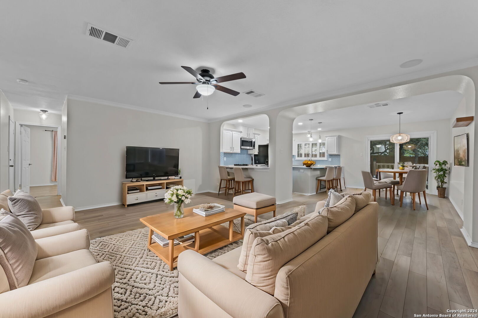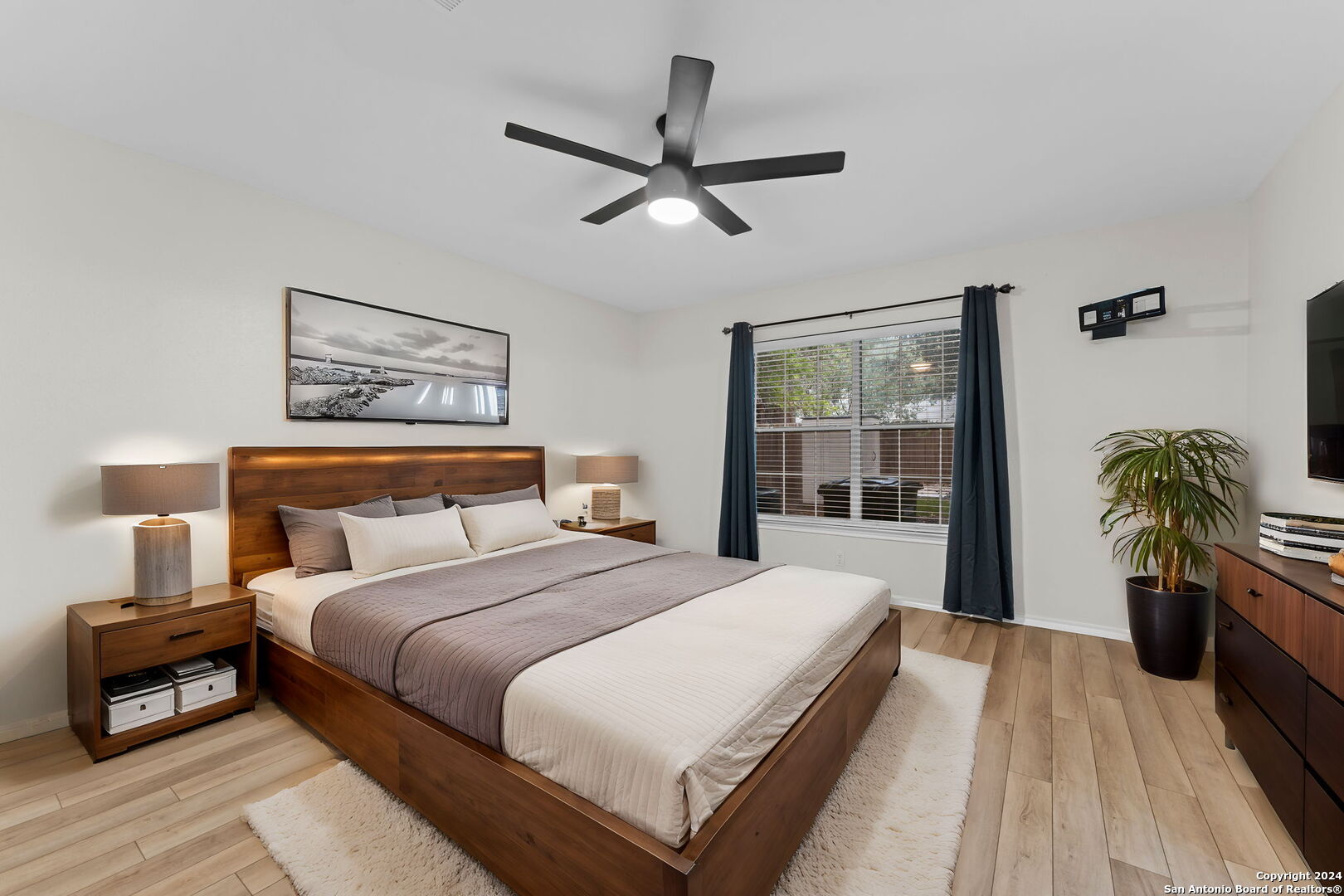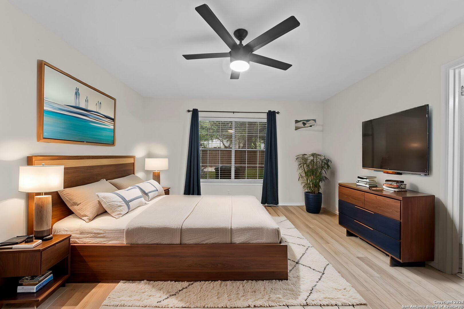 Welcome to 9134 Shadystone Dr, a beautifully refreshed one-story gem in San Antonio's Stonefield community. This 3-bedroom, 2-bathroom residence boasts a modernized kitchen and bathrooms completed in November 2021, along with stylish flooring and fresh interior paint throughout. Step outside to an inviting, low-maintenance backyard designed with artificial turf and paver rock landscaping, installed in October 2023, perfect for relaxation and entertainment. The Stonefield community offers exclusive amenities, including a pool, park, and pavilion, all just a short walk away. Experience contemporary comfort in a fantastic location-schedule your visit today!