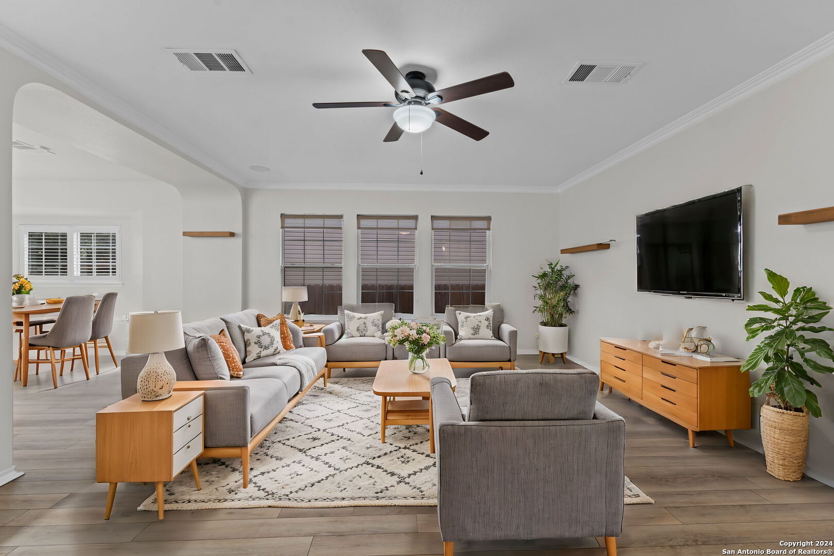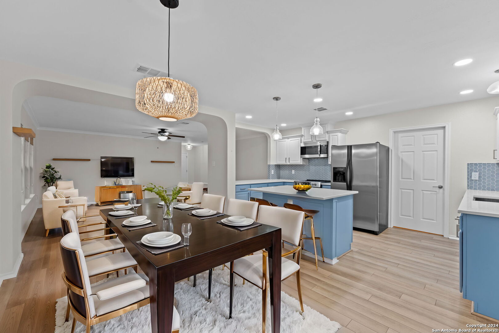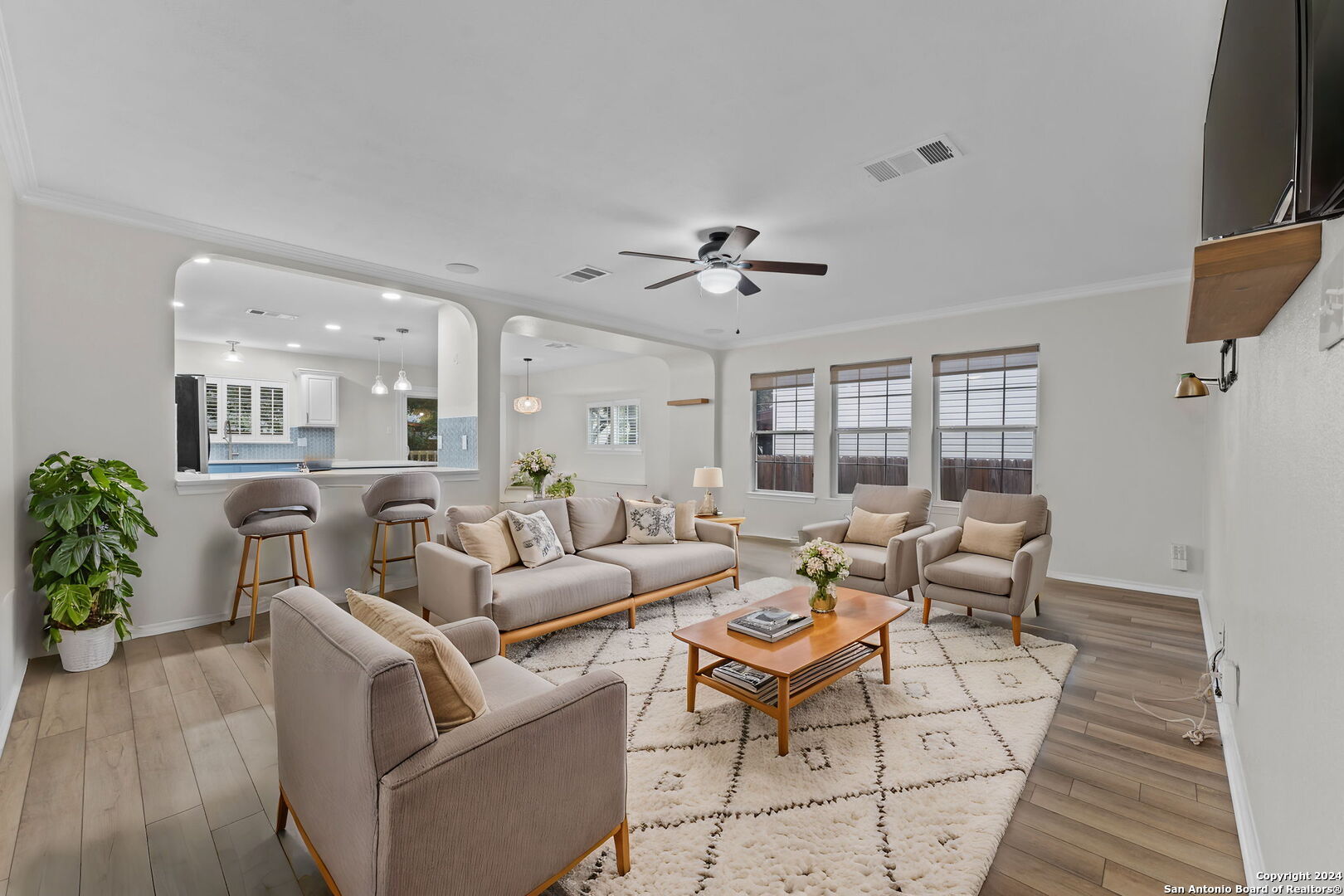 Welcome to 9134 Shadystone Dr, a beautifully refreshed one-story gem in San Antonio's Stonefield community. This 3-bedroom, 2-bathroom residence boasts a modernized kitchen and bathrooms completed in November 2021, along with stylish flooring and fresh interior paint throughout. Step outside to an inviting, low-maintenance backyard designed with artificial turf and paver rock landscaping, installed in October 2023, perfect for relaxation and entertainment. The Stonefield community offers exclusive amenities, including a pool, park, and pavilion, all just a short walk away. Experience contemporary comfort in a fantastic location-schedule your visit today!