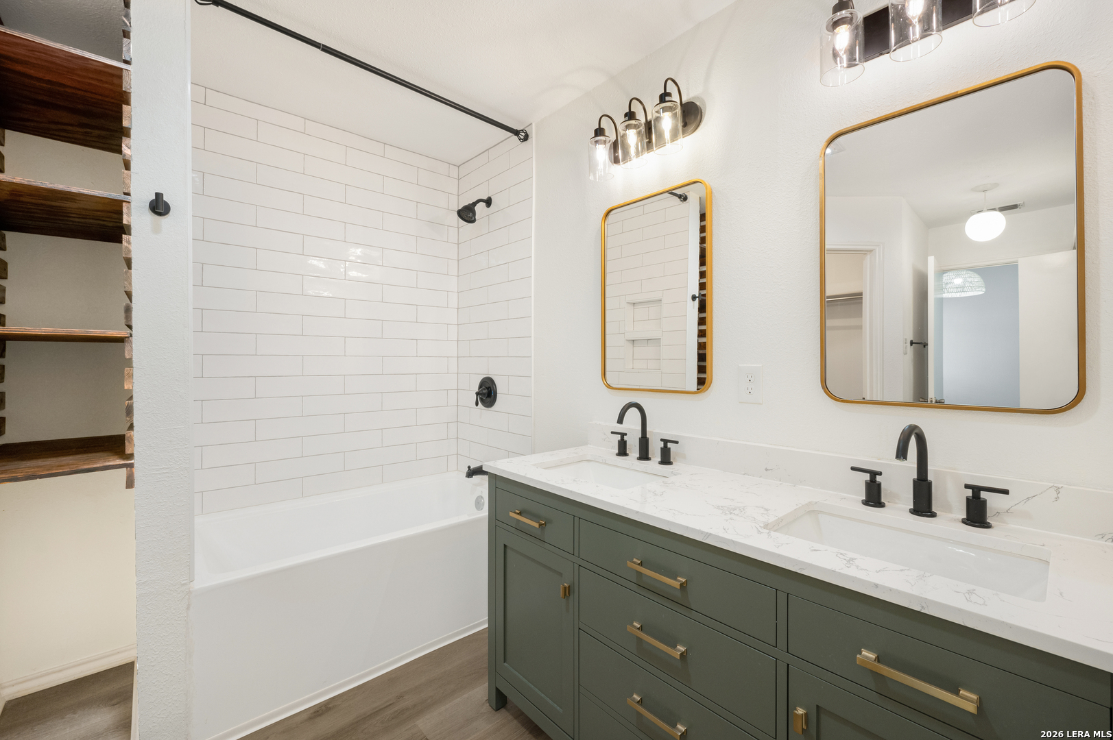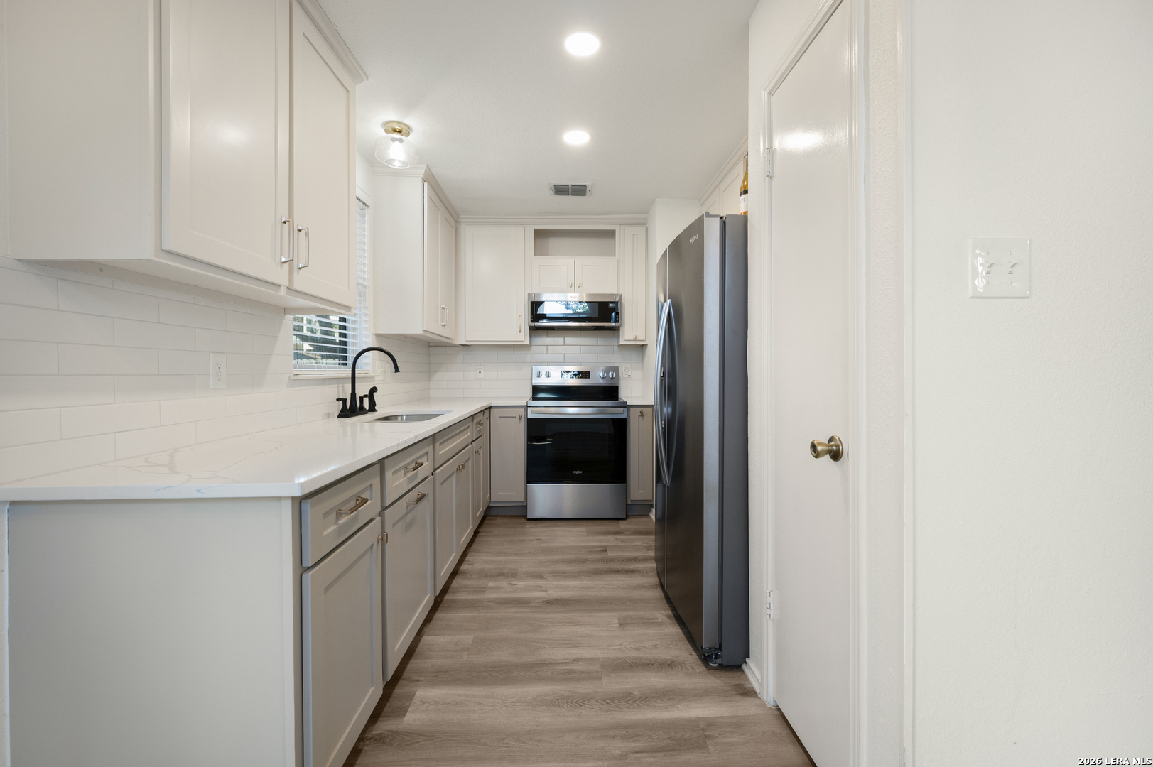 Washer, Dryer and Fridge included! Located in the established Guilbeau Park neighborhood, this well updated three bedroom, two bath home offers functional and comfortable living space. The kitchen features custom wood cabinetry with a thoughtfully designed lazy Susan, quartz countertops, a new stove, and updated plumbing and electrical. Both the primary and secondary bathrooms have been completely and custom remodeled. Vinyl plank flooring runs throughout the home, with soft carpet on the stairs only, and fresh interior paint provides a clean, modern feel. Residents enjoy access to neighborhood amenities including a pool, basketball courts, and tennis courts. Zoned to Northside ISD and conveniently located near shopping, dining, and major roadways. Pets are welcomed with a maximum weight of 50 pounds per animal. A $400 pet deposit, $15 monthly pet rent per pet, and a $400 non-refundable pet cleaning fee apply.