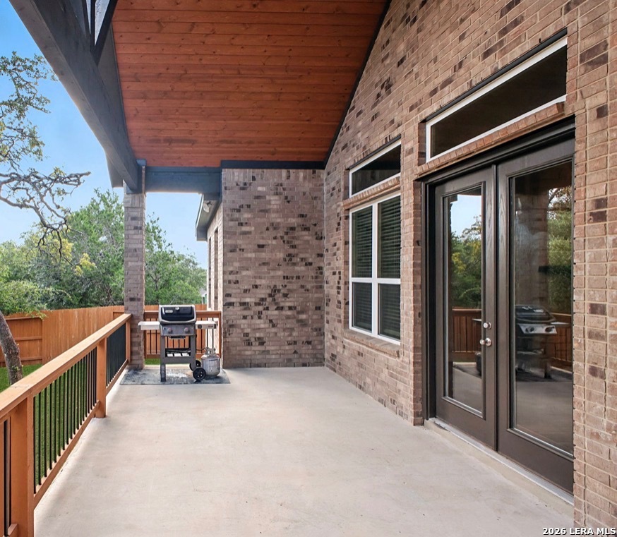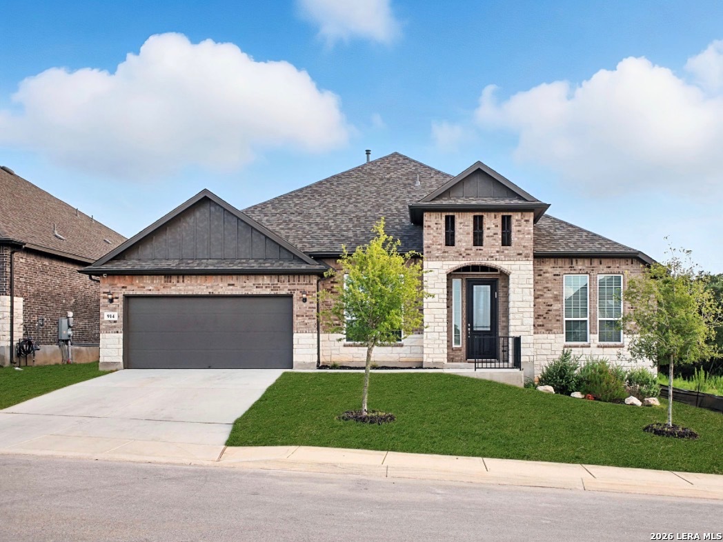 Beautifully designed single-story home offering a functional and versatile layout with 4 bedrooms, a private office, and a spacious game room that can easily adapt to your needs. The kitchen features a center island, gas cooktop, built-in double ovens, and a walk-in pantry, all opening to the main living area with a cozy fireplace and eye-catching ceiling detail. Eight-foot doors throughout the home enhance the sense of space and flow. The primary suite is privately situated and includes a well-appointed bath with a mudset shower, garden tub, and double vanities. This home also includes a water softener and reverse osmosis system. The exterior showcases four-sided brick construction with stone accents and a full irrigation system, along with a low maintenance yard for easy keep up. Enjoy the covered patio with a beautiful wood finish, creating a warm and inviting outdoor space.