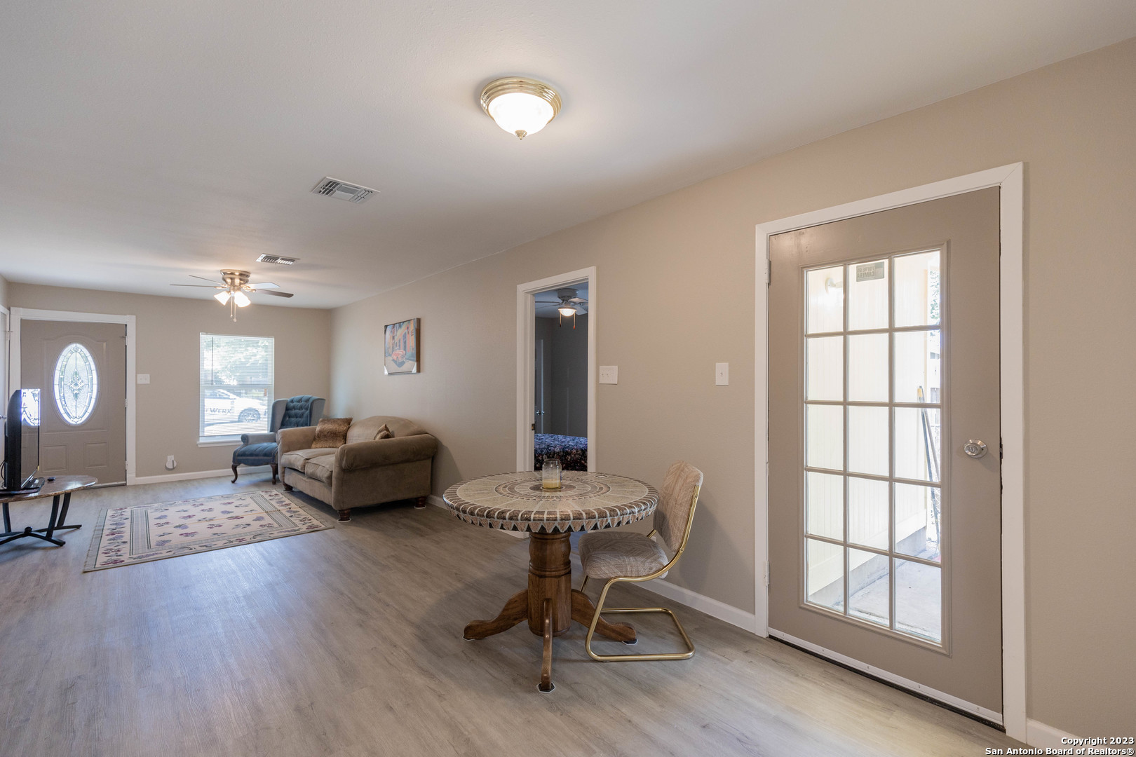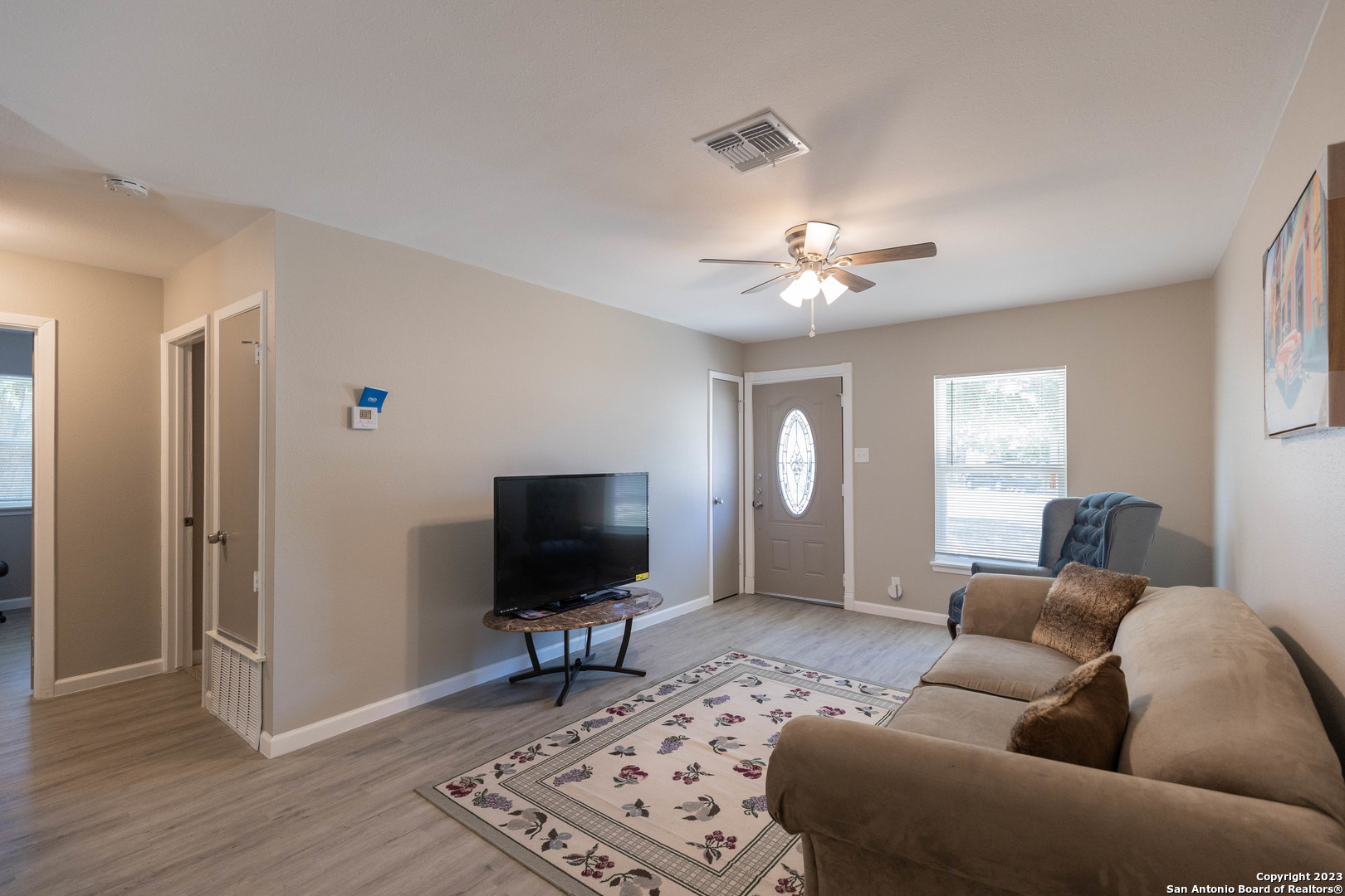 Available Immediately! Additional showing options available! Fantastic one-story home featuring four bedrooms and two bathrooms with walk in showers. Enjoy an abundance of natural light throughout the house, making it a bright and inviting space, with the added bonus of no carpet for easy cleaning. The main living area is open and welcoming, accompanied by a delightful dining area adorned with a dazzling light fixture. The kitchen is a true highlight, offering ample cabinet space with charming brick and mirror detailing. Discover the main bedroom, boasting a walk-in closet and full bathroom for your comfort. The secondary bedrooms are equally appealing, each equipped with ceiling fans for added convenience. Step outside to the very spacious backyard deck, partially covered, providing the perfect setting for outdoor enjoyment and relaxation. Don't miss this one and schedule your showing today! Monthly fee in lieu of security deposit. Small Pets under 30 lbs only.