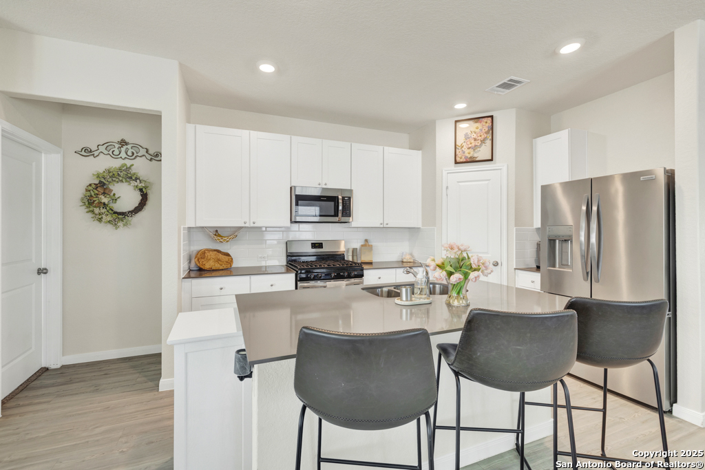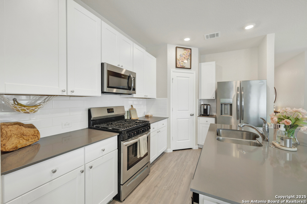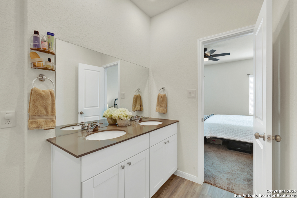 Seller says "bring me all offers!" so we slashed our list price to 259k and now we are offering our upgraded home with the yard already established for UNDER what the builder has available--same Siesta floor plan home with less features at their price of $299k!! AND AN INCREDIBLE OPPORTUNITY, as the current loan is ASSUMABLE interest rate at 4.375% AND Sellers are willing to pay up to $6k in closing costs!! We are listed $30k less than the sellers paid, way below Market Value, priced below the Builder with incentives to make our upgraded home to be the better value! With our assumable low rate, the Buyer will save hundreds monthly compared to the current national interest rate options. Welcome home to this pristine and updated single story home with builder warranty and with all of the upgrades already done for you! Inviting spacious entry leads to the generous secondary bedrooms and large office or media room with double doors. The smart open floor plan makes a great entertainment home boasting a large family area open to the designated dining area and island kitchen where everyone congregates. Gas cooktop/oven range, 42 inch cabinetry, and plenty of meal preparation space on the gorgeous Corian countertops, and a walk-in pantry any cook would adore. The primary suite is privately nestled in the back of the home with a gorgeous ensuite with upgraded mega-sized shower and an even bigger walk-in closet. BBQ or relax on your eastern exposure covered patio where you will have shady afternoons to enjoy. This fine home has been recently professionally painted throughout. The neighborhood amenities include a water park, splash pad, clubhouse with gym, walking trails, bbq areas to enjoy the lifestyle if you choose. Garage is equipped with an overhead heavy duty permanent storage rack for additional storage. Water softener, blinds, sprinkler system, fans all on a Navarro Ranch premium oversized lot. A must see in person!