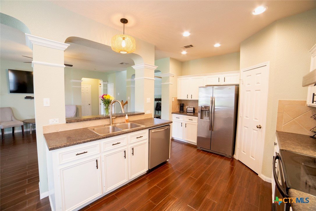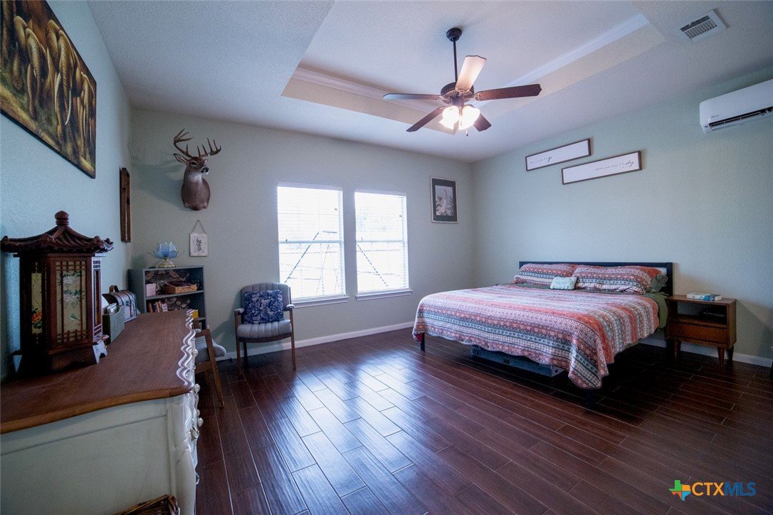Move-in-ready 4-bedroom, 2.5-bath home located in Harker Heights mere minutes from local parks and Stillhouse Hollow Lake. Just a short walk to Skipcha Elementary School means less time waiting in the pick-up and drop-off line. Inside, you’ll find a bright, open layout that creates space to customize this home based on your day-to-day needs. There is plenty of room to spread out comfortably, entertain guests, or just keep an eye on everything going on. Fresh interior paint gives the home a clean, updated feel. The primary bedroom is located downstairs, providing a little safe haven away from the hustle and bustle. It includes a walk-in closet, as well as its own additional AC unit, because everyone deserves to sleep at their own perfect temperature. The huge backyard has endless potential- for a garden, jungle gym, or even a backyard photo shoot in front of the beautiful Leyland Cypress trees. It basically functions as a built-in energy burner for kids, pets, and spouses that have ambitious hobbies. The patio offers the perfect opportunity to unwind after a long day, or supervising backyard chaos, while still having a little room to breathe. Close to shopping, dining, and everything your family needs, this home is built for real life.