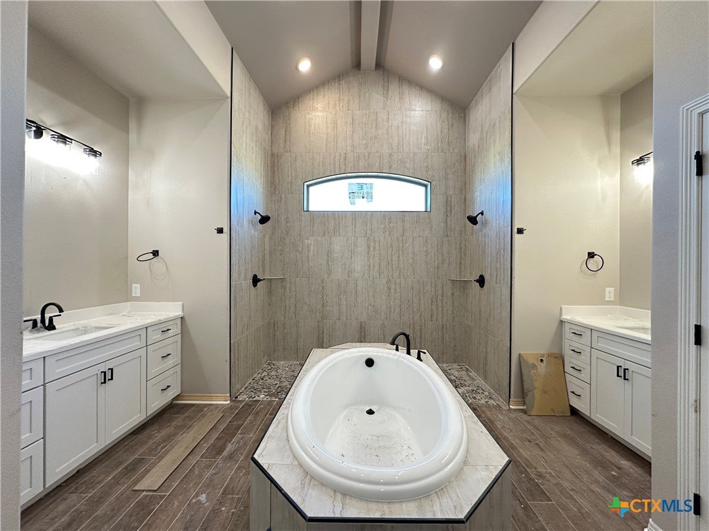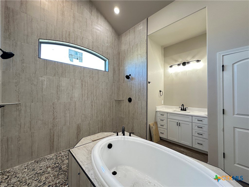 Discover the Nugget Plan — a thoughtfully designed 4-bedroom, 2.5-bath home with 2,120 sq ft, a 3-car garage, and standout features throughout. Enjoy a warm, cozy living room with a beamed ceiling and electric fireplace, plus a chef-inspired kitchen with quartz countertops, soft-close cabinetry, and built-in GE Profile appliances—including a no-preheat Air Fryer. The spa-like primary bath offers vaulted ceilings, dual vanities, a dual-entry walk-in shower, and a garden tub for ultimate relaxation. Zoned to award-winning Academy ISD and close to shopping, dining, schools, and BSW Hospital.