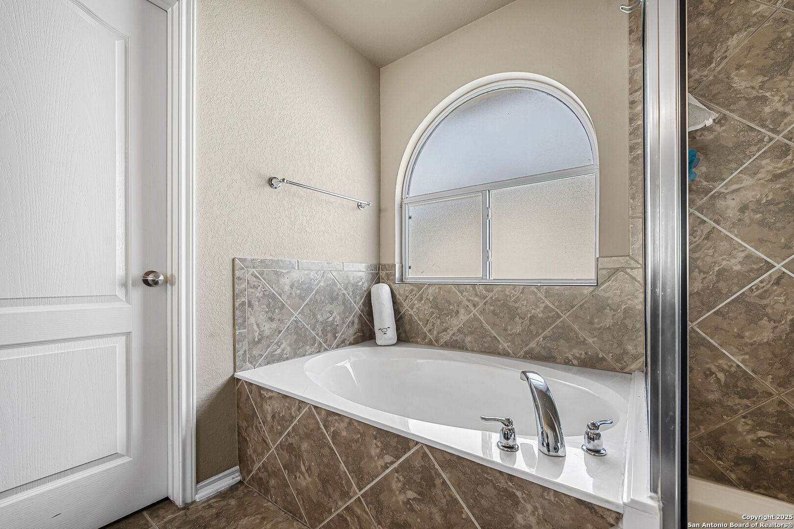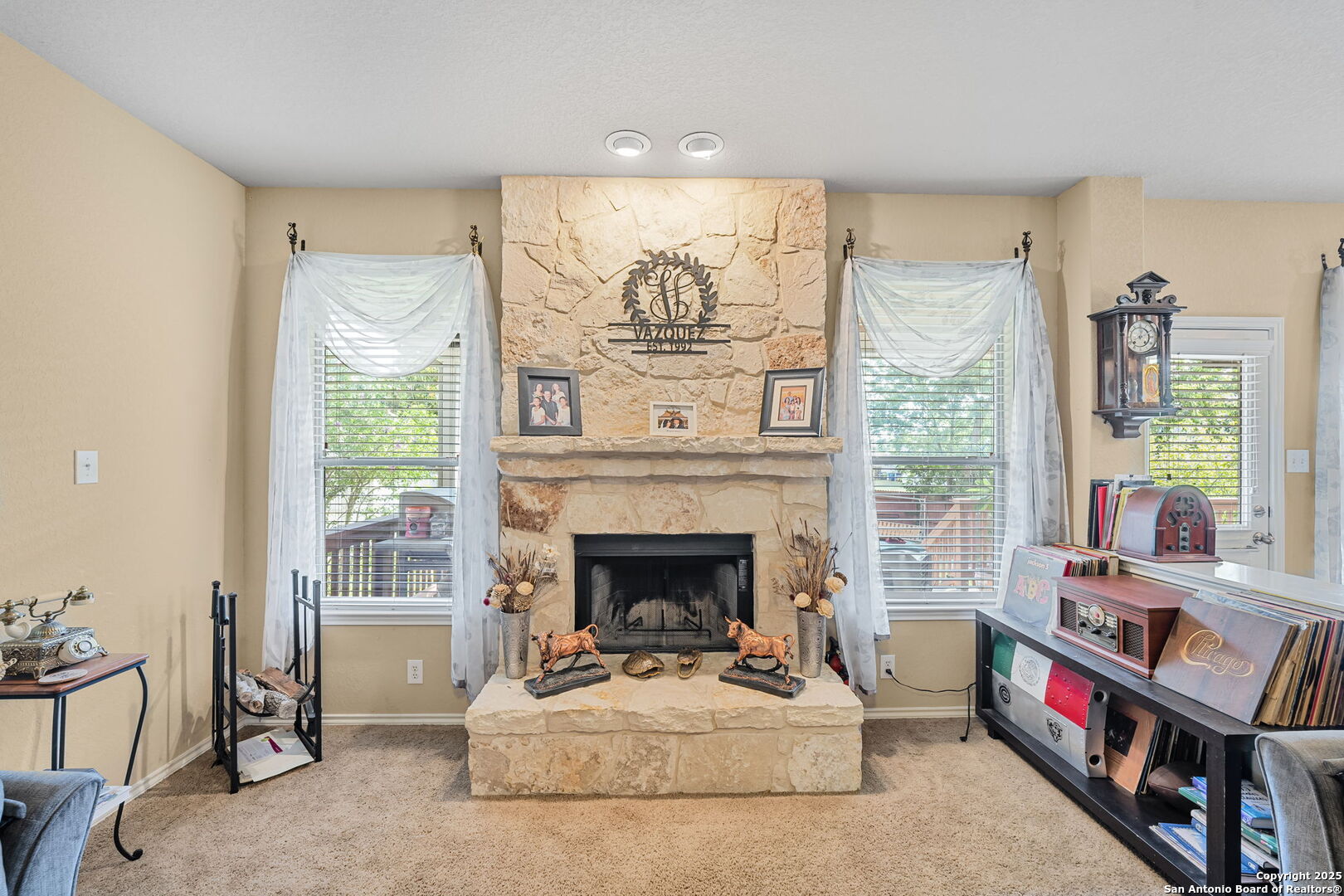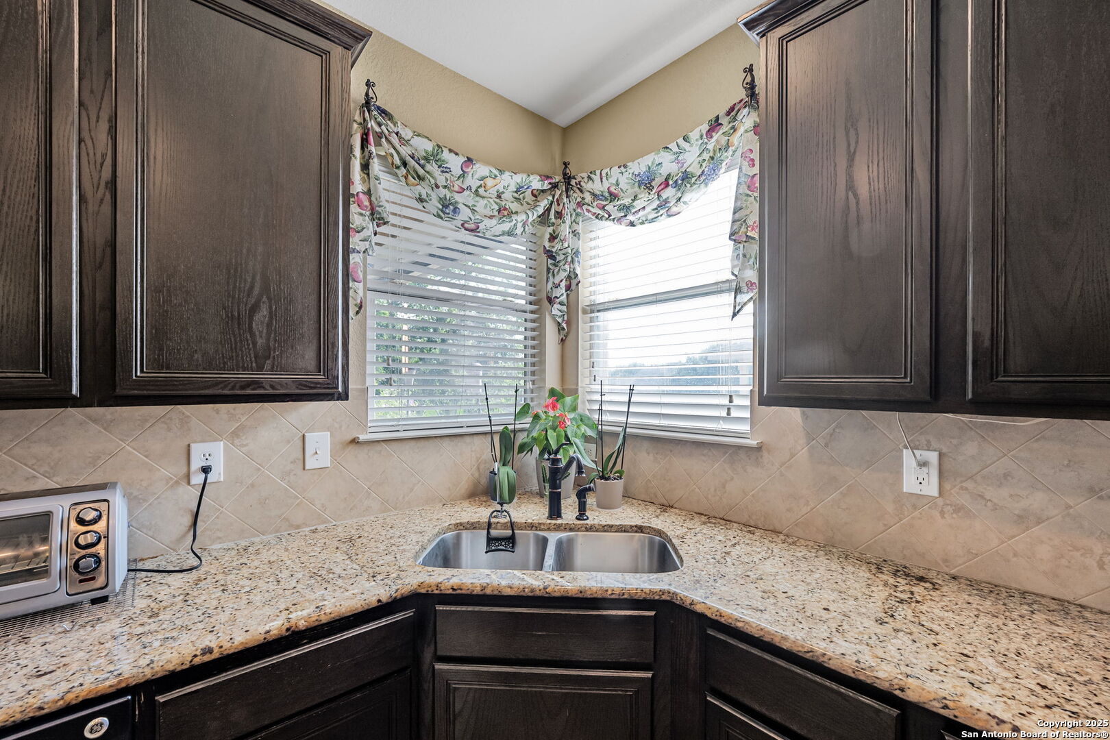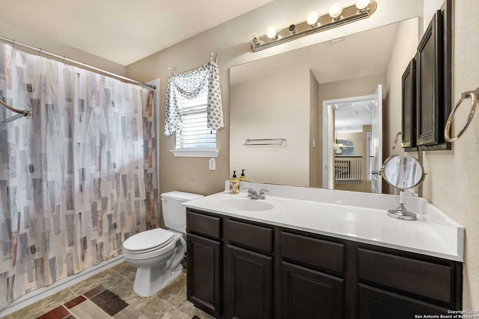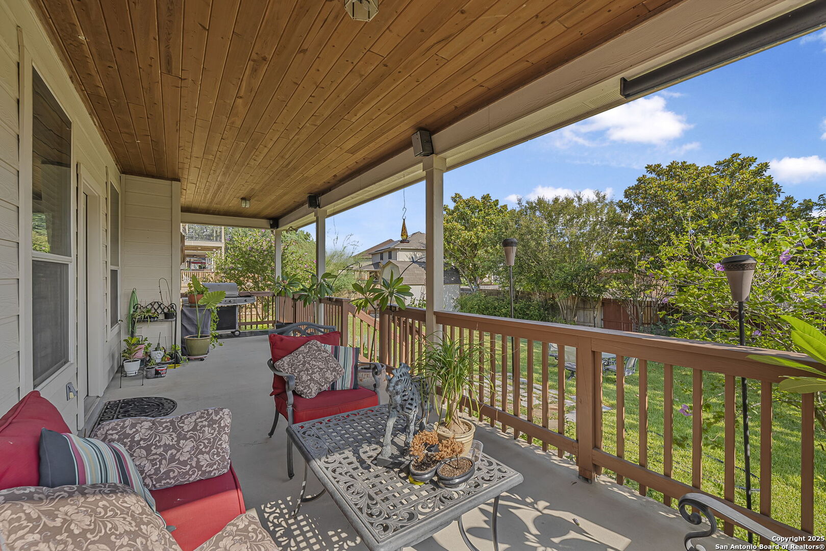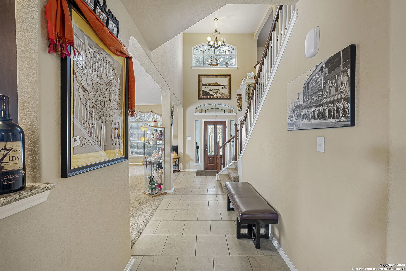 Immaculate Cibolo Home with Modern Upgrades and 3-Car Garage! This beautifully maintained two-story features updated finishes, a stylish wet bar, and an owned water softener. The open-concept layout includes granite countertops, 9-ft ceilings, and a spacious family room with fireplace. Upstairs offers a large game room with office nook and an oversized primary suite with double vanities. Enjoy outdoor living on the covered patio, complete with sprinkler system and solar screens.