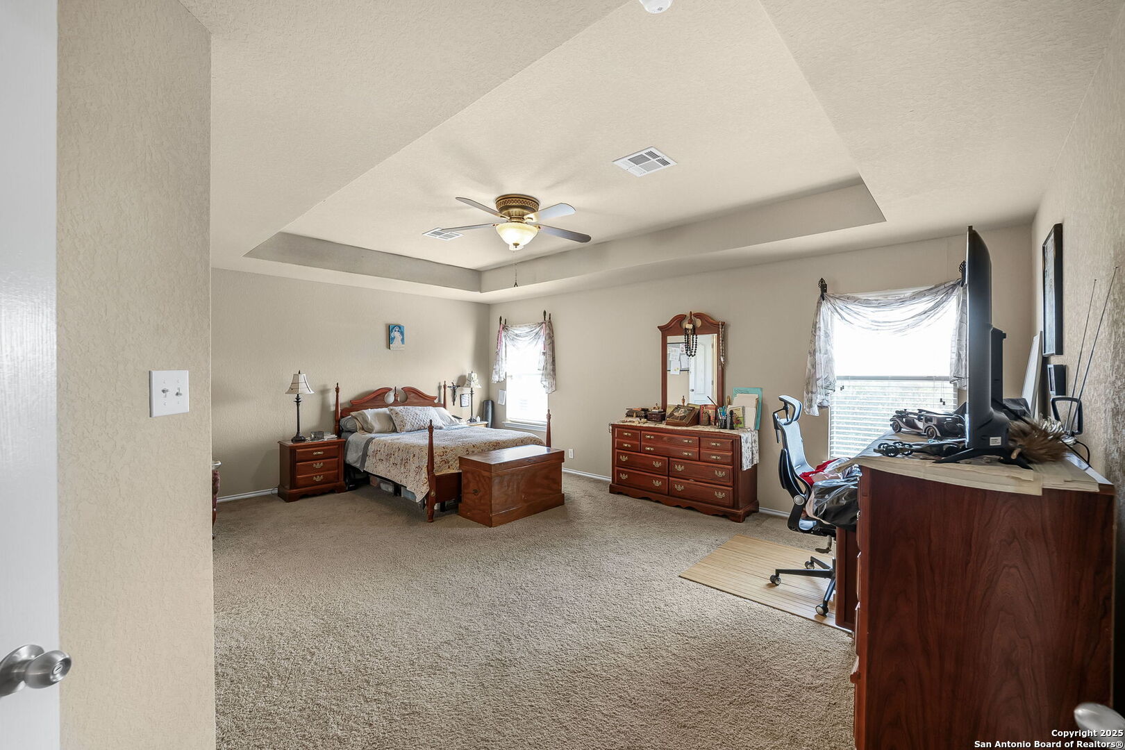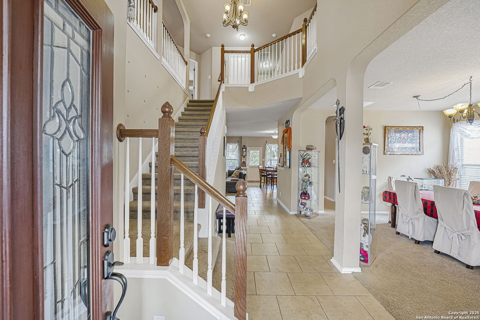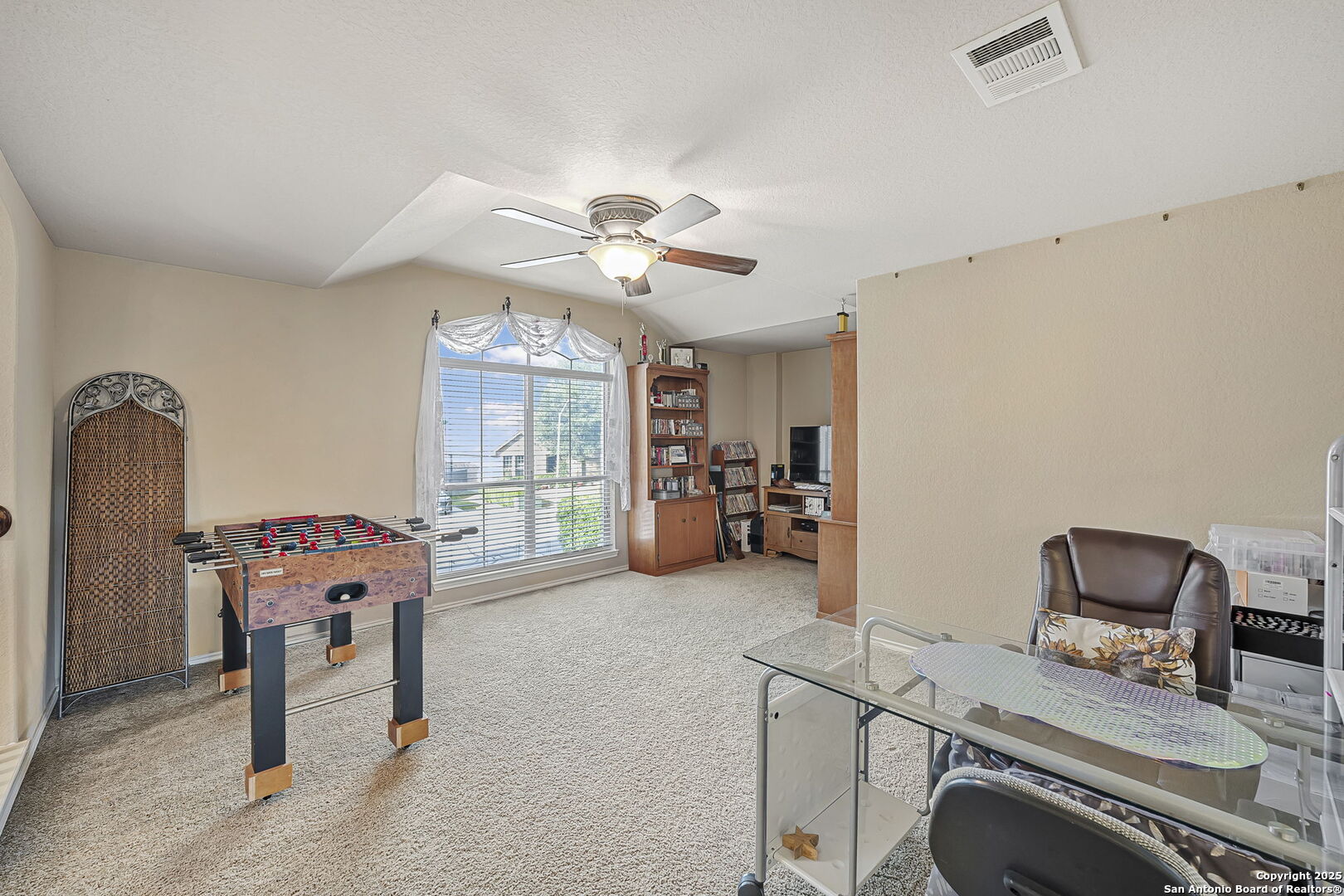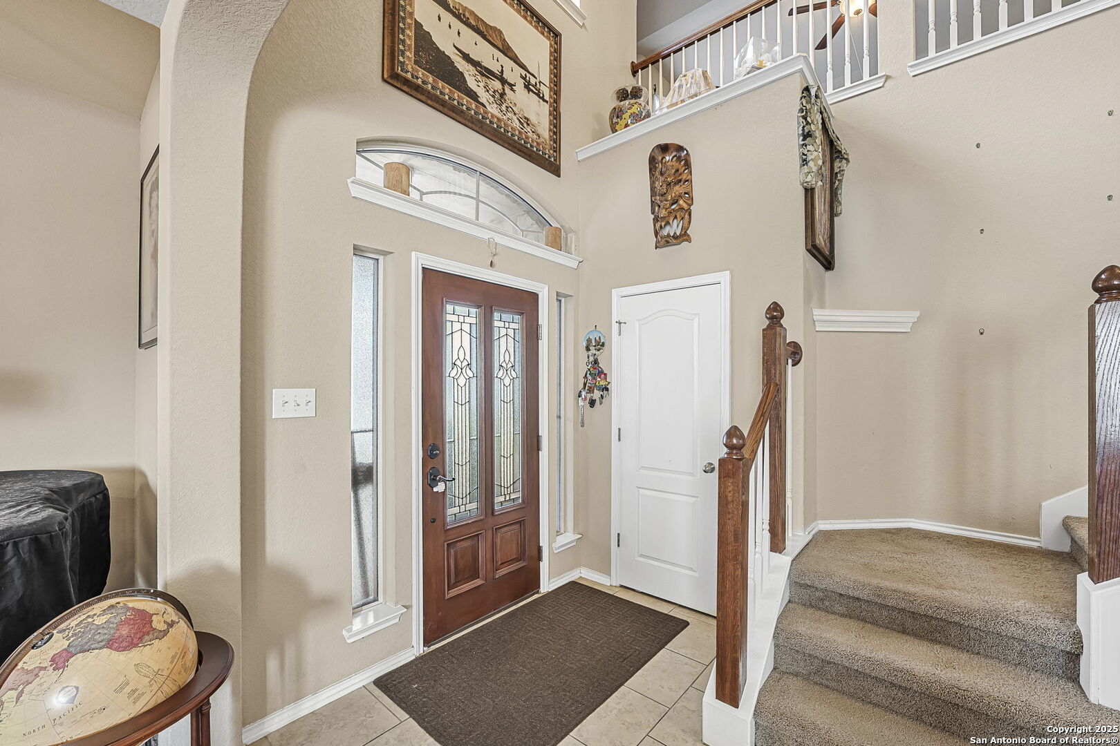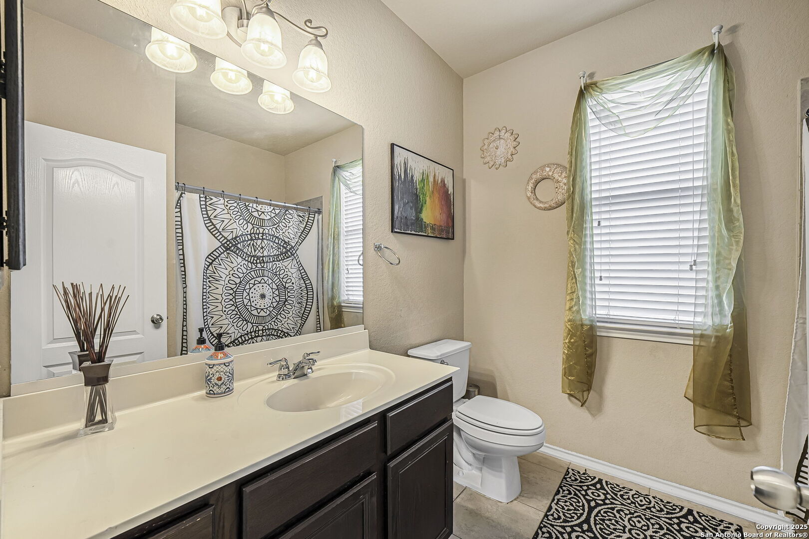 Immaculate Cibolo Home with Modern Upgrades and 3-Car Garage! This beautifully maintained two-story features updated finishes, a stylish wet bar, and an owned water softener. The open-concept layout includes granite countertops, 9-ft ceilings, and a spacious family room with fireplace. Upstairs offers a large game room with office nook and an oversized primary suite with double vanities. Enjoy outdoor living on the covered patio, complete with sprinkler system and solar screens.