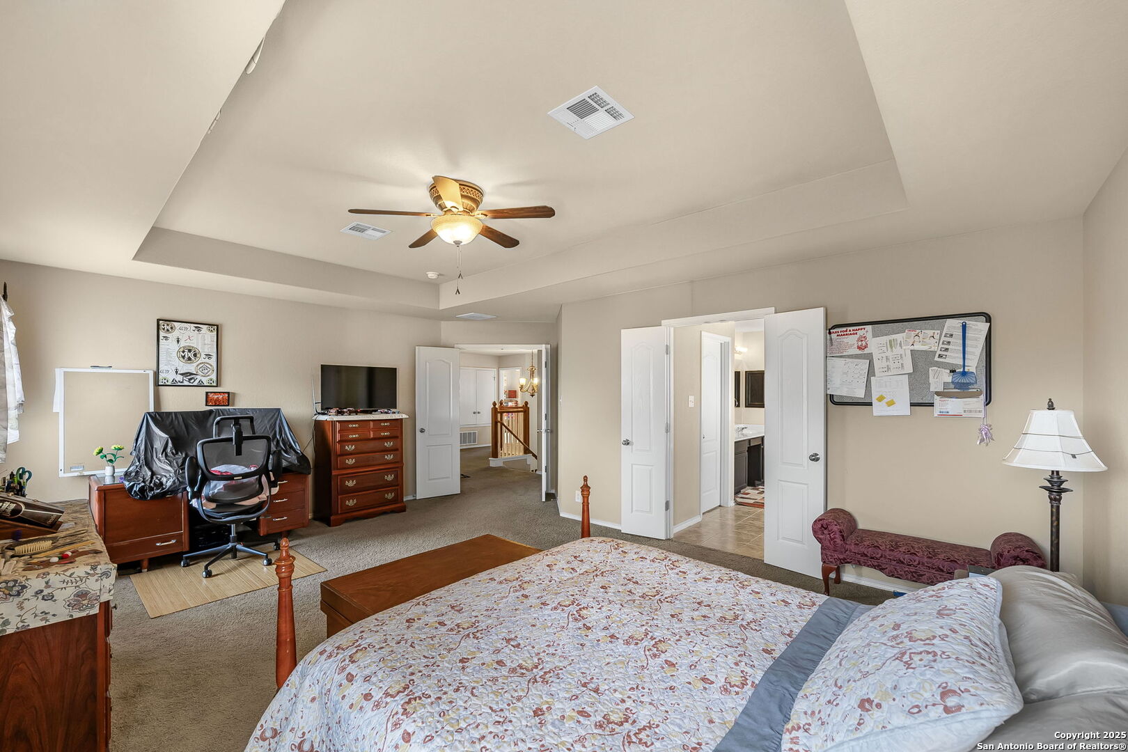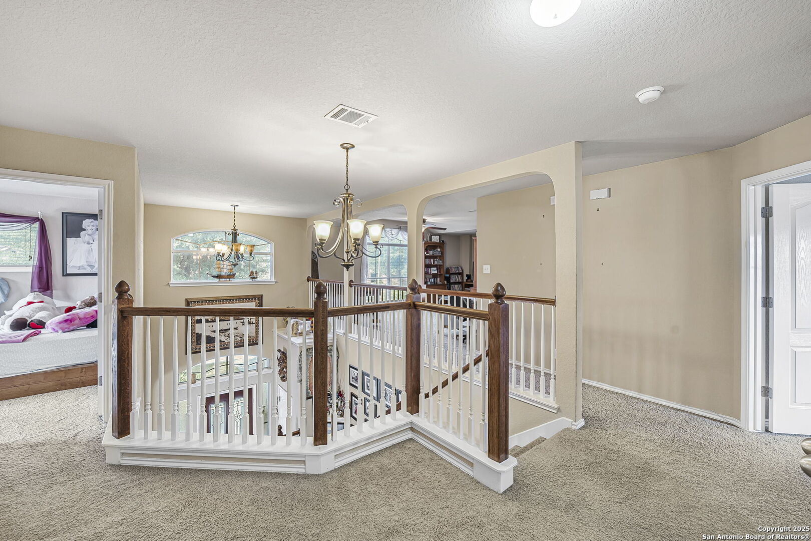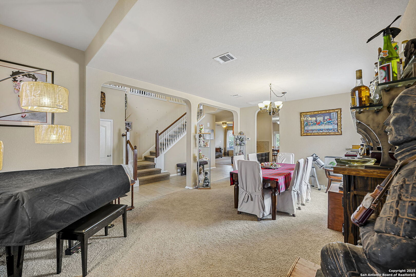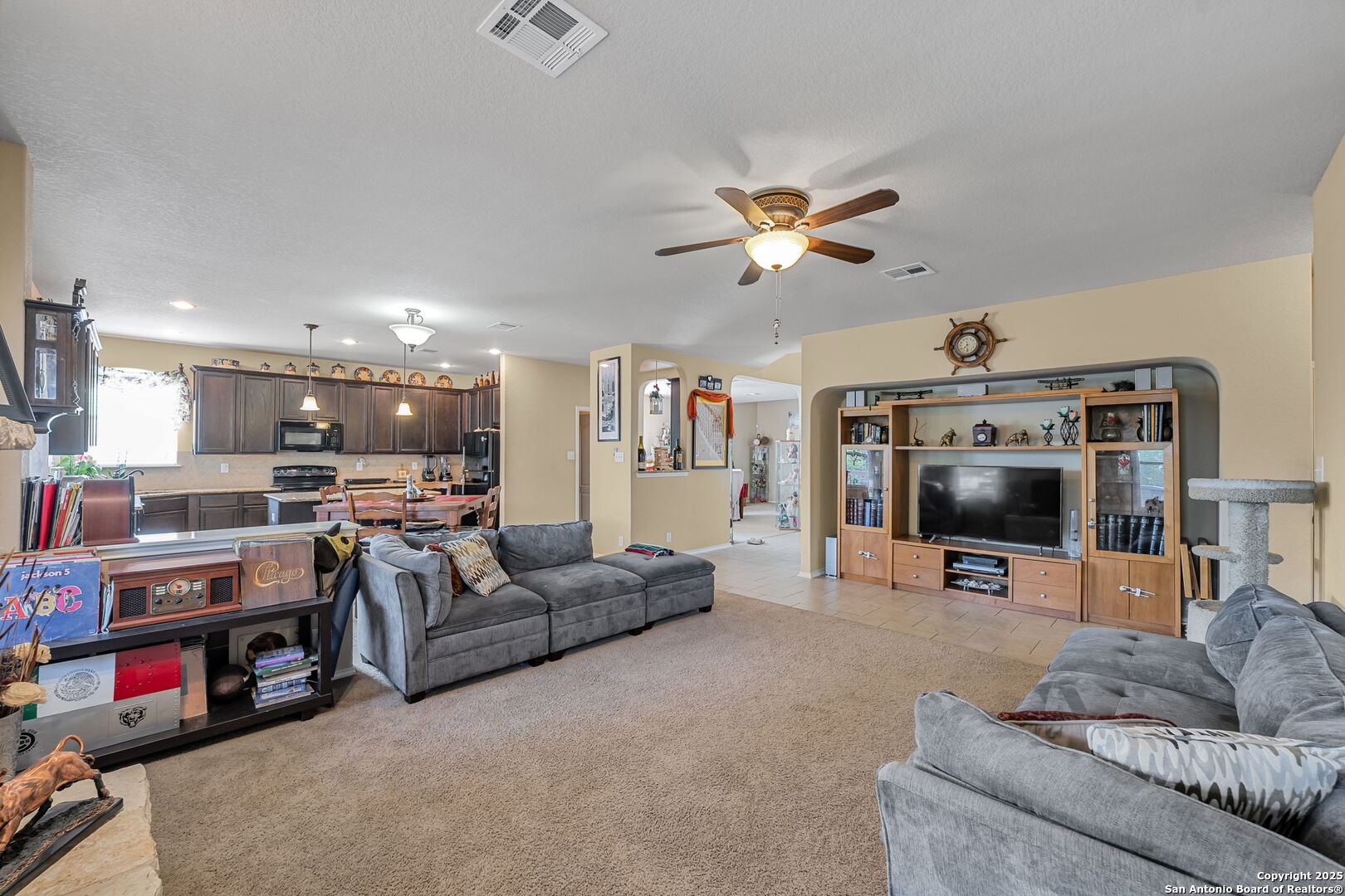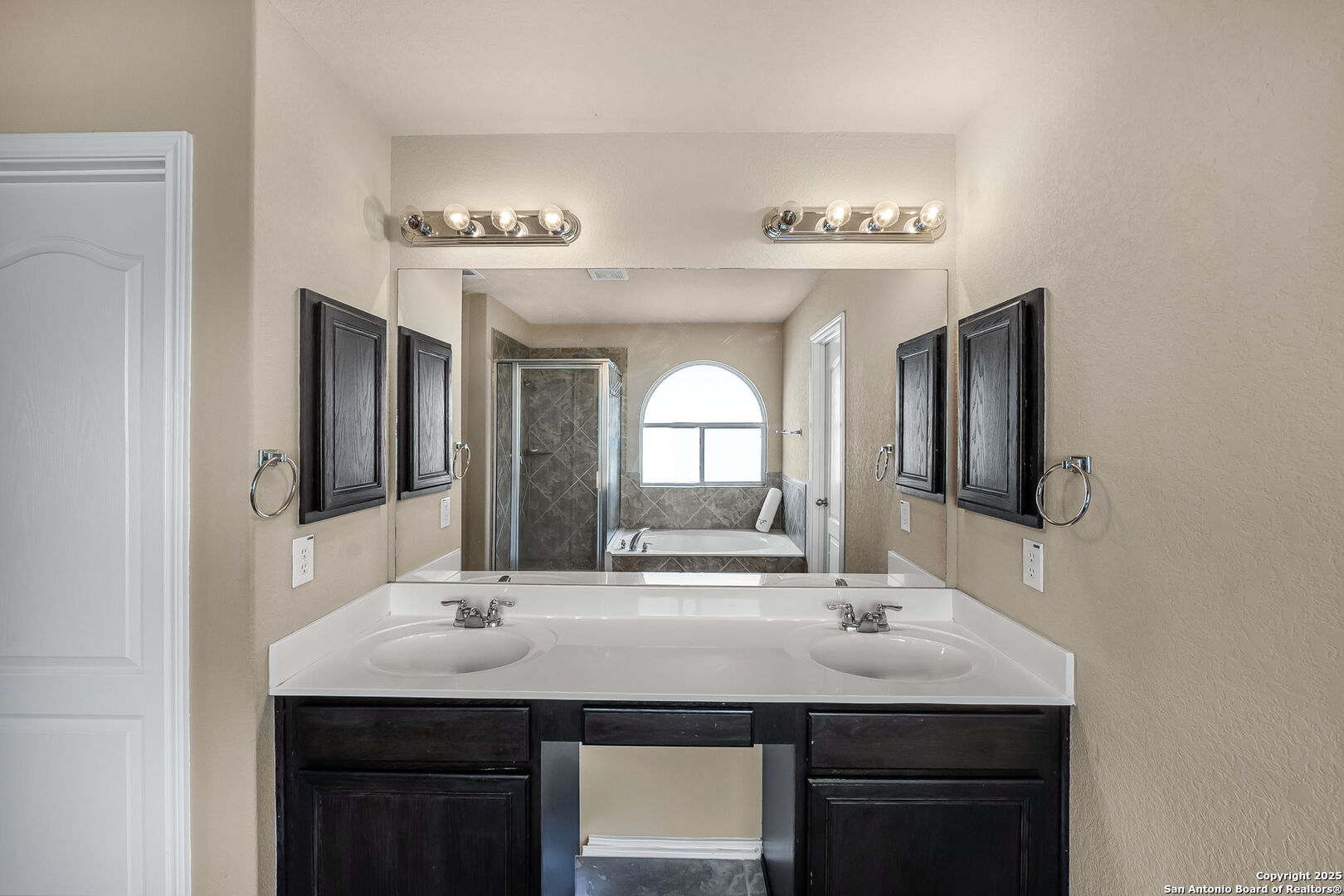 Immaculate Cibolo Home with Modern Upgrades and 3-Car Garage! This beautifully maintained two-story features updated finishes, a stylish wet bar, and an owned water softener. The open-concept layout includes granite countertops, 9-ft ceilings, and a spacious family room with fireplace. Upstairs offers a large game room with office nook and an oversized primary suite with double vanities. Enjoy outdoor living on the covered patio, complete with sprinkler system and solar screens.