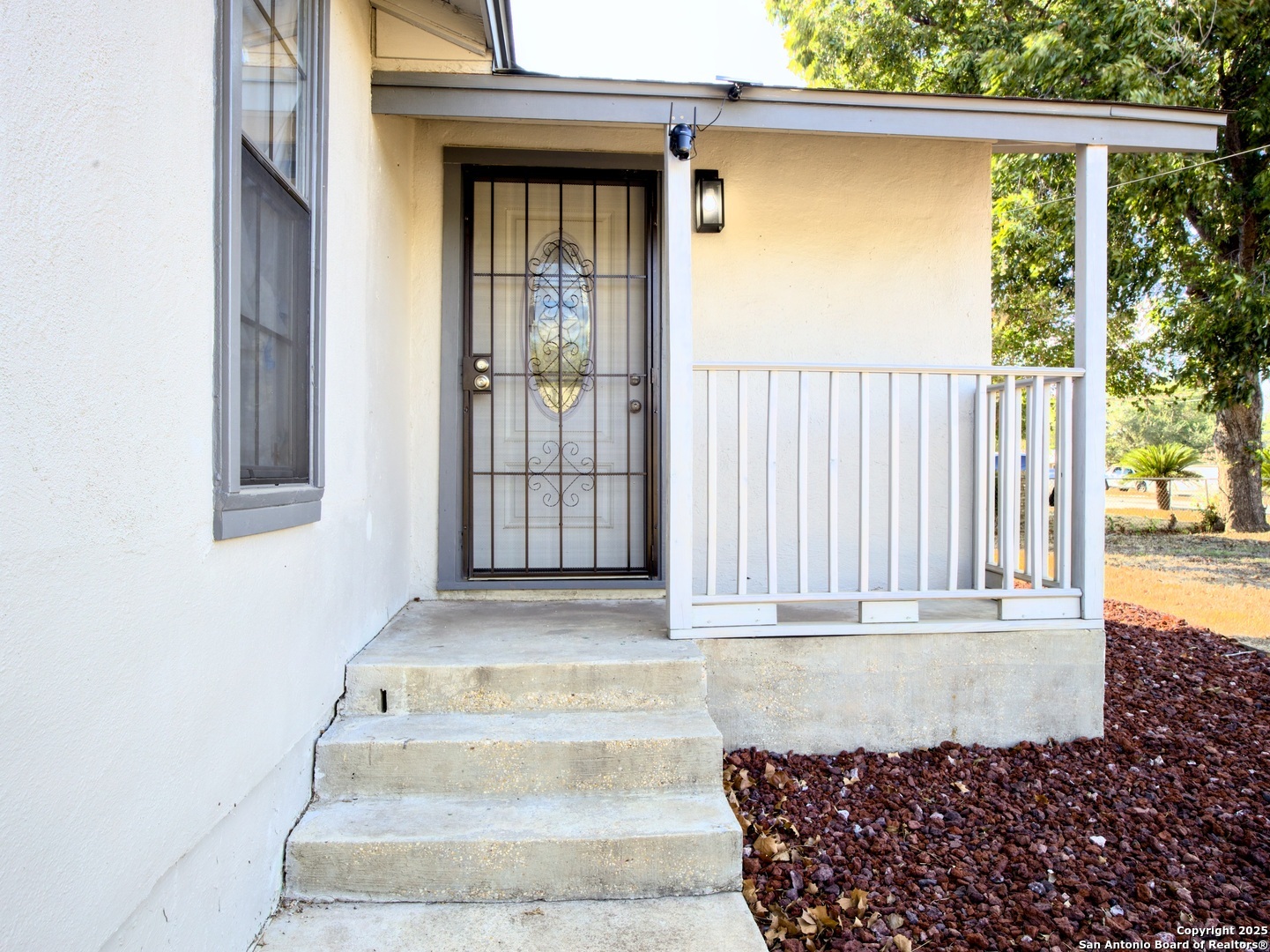 Nestled on an oversized corner lot, this charming one-bedroom, one-bathroom home boasts a range of impressive upgrades that enhance both its functionality and aesthetic appeal. The property features a brand-new roof, ensuring durability and peace of mind for years to come. Inside, you'll find completely updated electrical wiring and plumbing, providing a modern and efficient living experience. The upgraded flooring adds a fresh touch throughout the home, while the newly installed countertops elevate the kitchen's style and utility. Both the interior and exterior have been freshly painted, giving the house a vibrant and welcoming appearance. For climate control, a new air conditioning system has been installed, ensuring comfort during hot months. The bathroom has also been thoughtfully updated, adding to the overall appeal of the home. Additional conveniences include connections for both gas and electric stoves, catering to your cooking preferences. The property offers a unique opportunity with a slab ready for construction in the back, allowing for potential expansion or the creation of outdoor living spaces. This home combines modern upgrades with the potential for personalization, making it a perfect choice for those seeking a cozy retreat with room to grow. A must see!