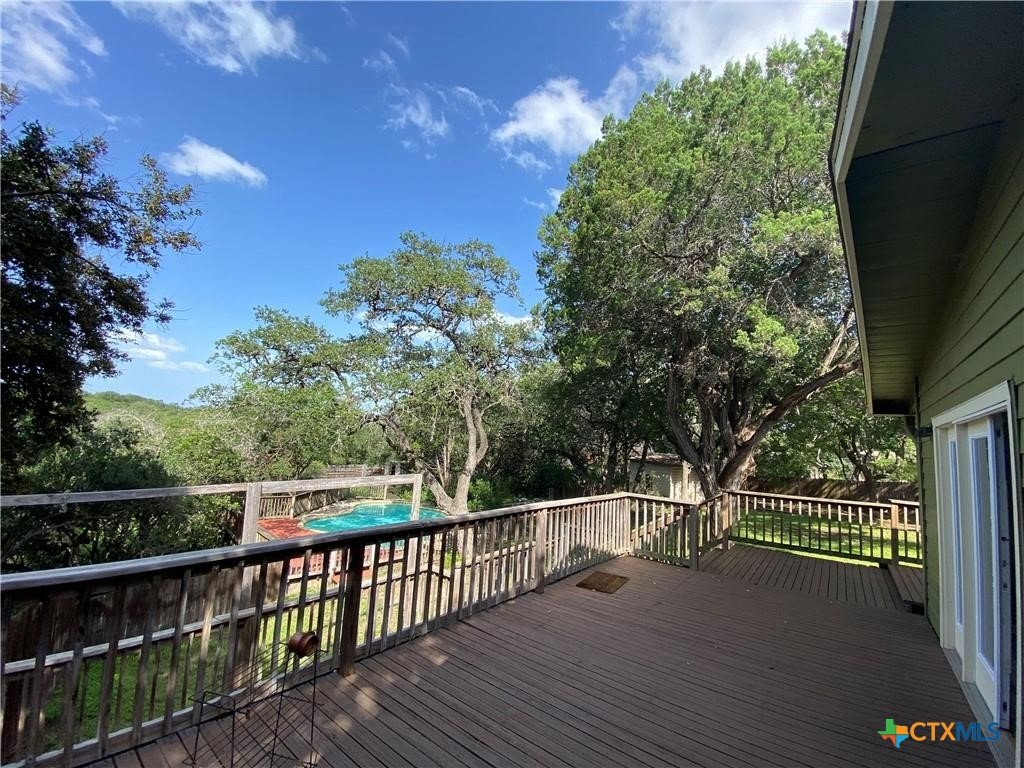 So much space to enjoy a peaceful home life! Beautiful house on a private lot with large covered porches, decks, and a sparkling pool surrounded by mature trees. Enjoy the outdoors inside, as a spacious living room opens with double doors to the back deck. The updated and bright kitchen also overlooks the backyard and features granite countertops, a tile backsplash, and an island. Utilize tons of built-ins and a large walk-in closet in the primary bedroom for all your storage needs, plus enjoy an oversized primary bath with separate shower and tub. A separate flex area would be a great second living, home office, gym, or play room! Numerous ceiling fans. Be sure to check out the extra storage building on the property.