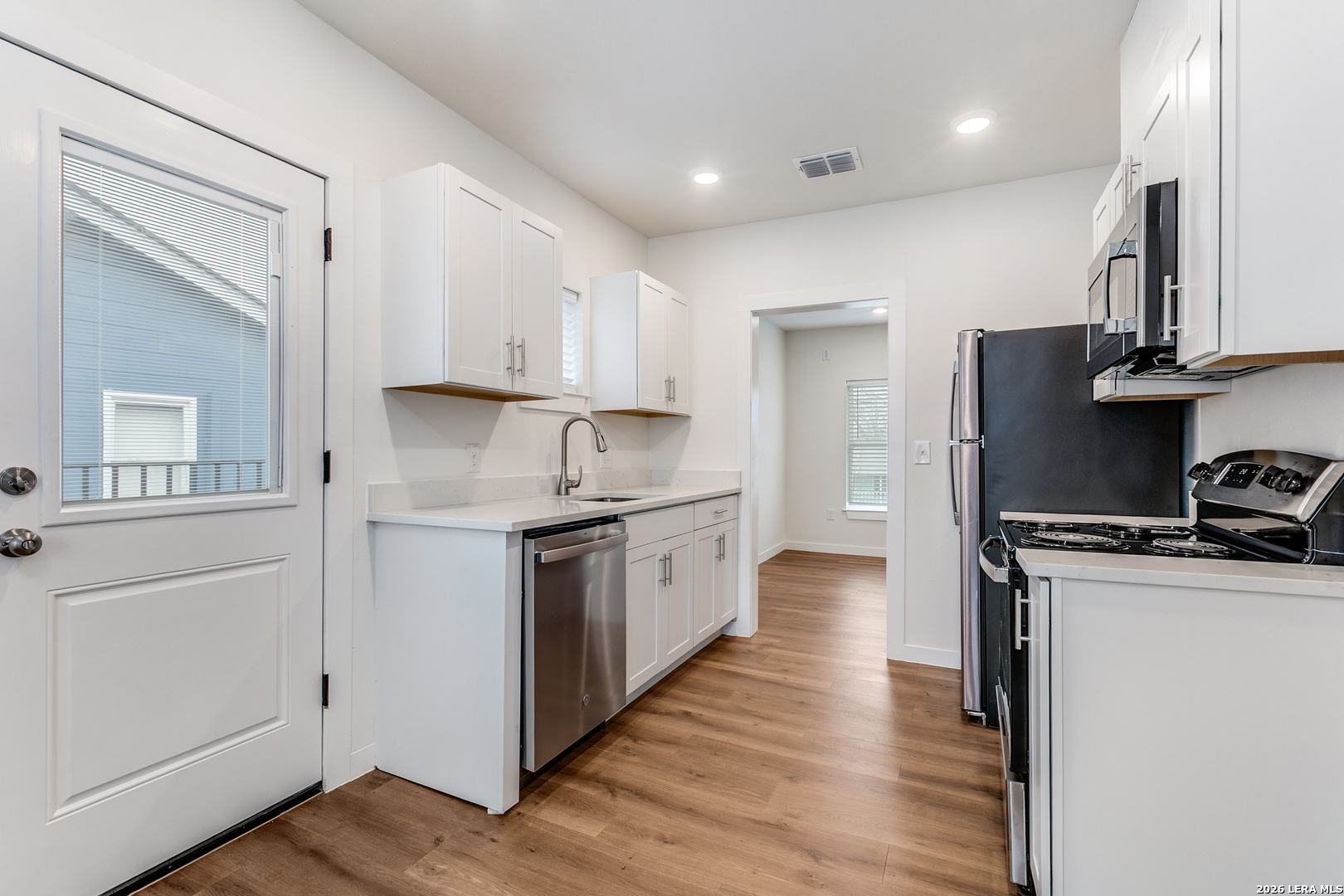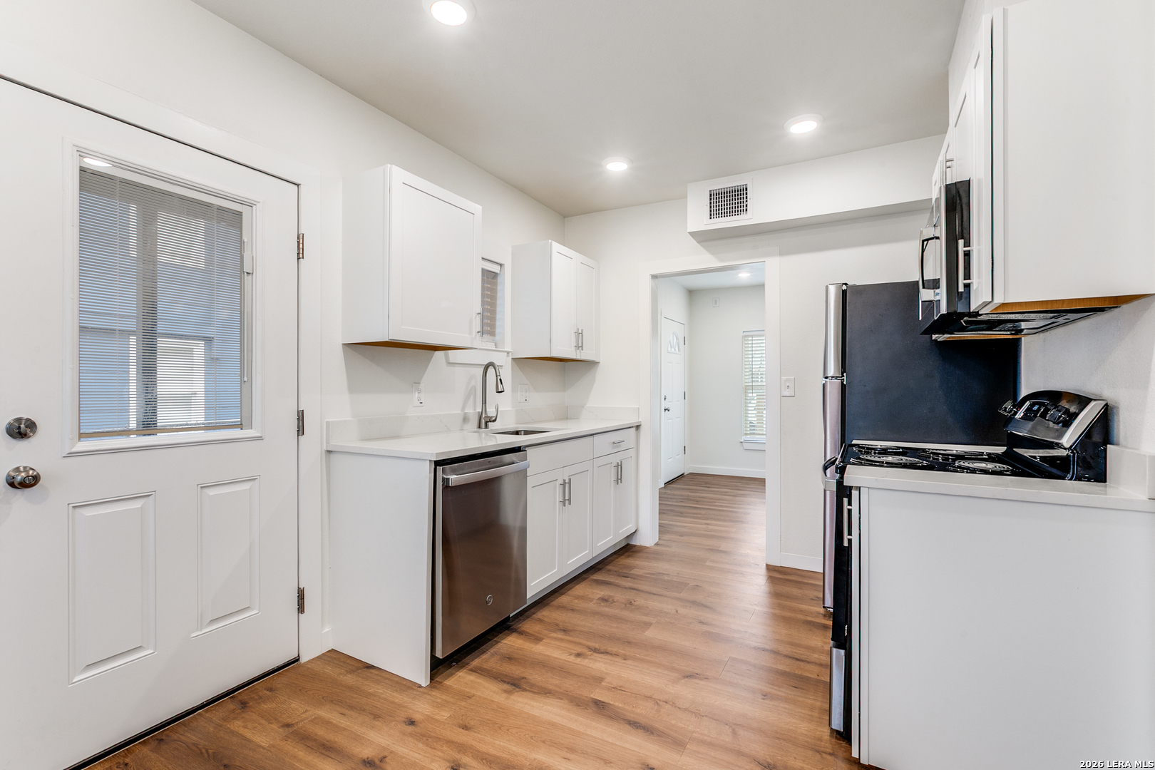 Renovated 2-Bedroom, 1-Bathroom Downstairs, Duplex in Los Angeles Heights Neighborhood in San Antonio, TX. Convenient Location Near I-10 HIGHWAY, Minutes to Downtown, Shopping, Restaurants, San Antonio College, & More. Enter to Spacious Living, Finishes Include Wood Flooring, Recessed Lighting, & Neutral Paint Colors. Gourmet Kitchen Features New Cabinetry, Granite Countertops, New Stainless-Steel Appliances, Built in Pantry Space. Nicely Sized Bedrooms with Natural Lighting, Ceiling Fans and Multi-Closet Space. Full Bathroom with Tub/Shower. Stackable Washer/Dryer Included! Low-Maintenance Backyard with Privacy Fence. Pets Case-by-Case, San Antonio ISD.