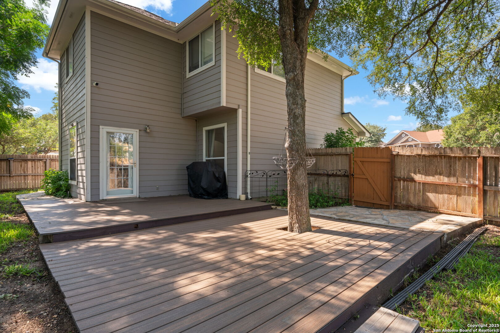 Tucked away in a quiet cul-de-sac, this well-cared-for home offers 3 bedrooms, 2.5 baths, and an open floor plan with updated flooring throughout (no carpet!). The upstairs laundry room adds everyday convenience, while the spacious primary suite boasts two walk-in closets, a garden tub, and a separate shower. Step outside to a private deck with direct access to the Salado Creek Greenway Trail, perfect for peaceful mornings, biking, or walking straight to Hardberger Park and beyond. Living room, primary suite, and patio are all wired for surround sound-ideal for entertaining. Major updates bring peace of mind: roof, water heater, and HVAC all replaced between 2017-2018. Located in the sought-after Northeast ISD with award-winning schools, and just minutes from Wurzbach Parkway, 1604, 281, and 410, this home offers easy access to shopping, dining, and recreation.