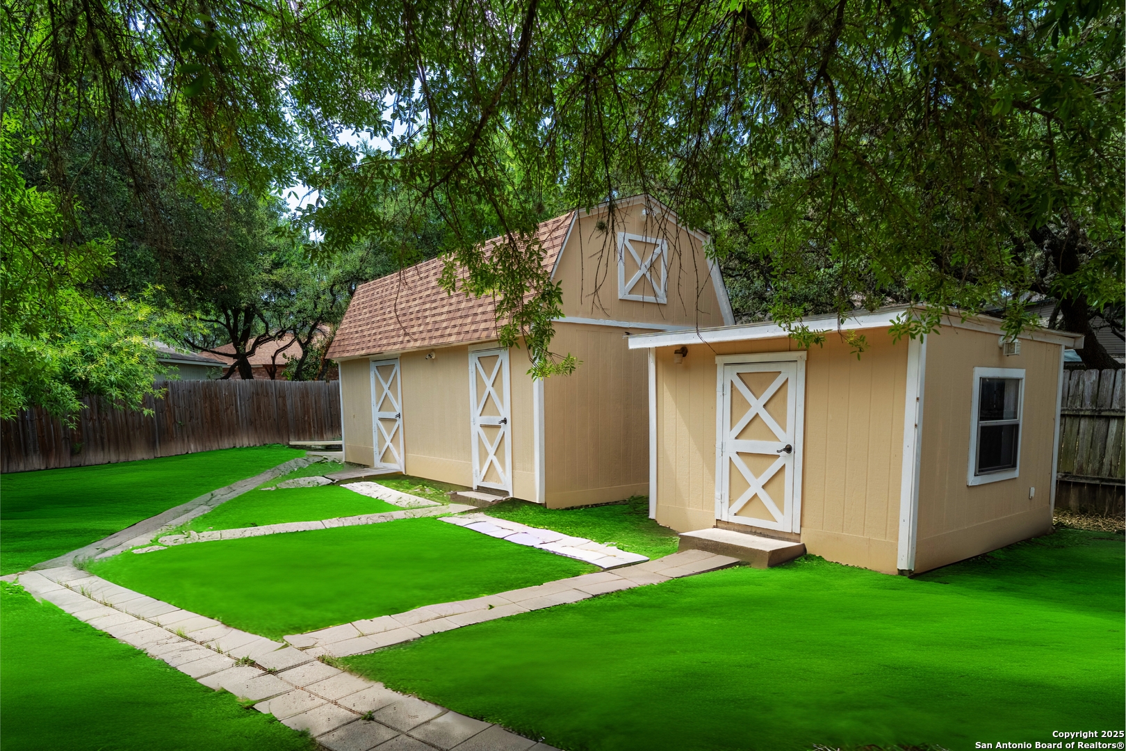 Spacious and well-maintained 3-bedroom, 2.5-bath two-story home offering approximately 3,000 sq. ft. of living space. Situated on the corner of a cul-de-sac near Loop 1604, UTSA, and premier shopping and dining. Highlights include a large kitchen ideal for everyday meals or entertaining, a dedicated home theater/gaming room upstairs, and plenty of interior storage with oversized closets. The backyard provides ample space for gatherings, complemented by three insulated storage rooms/sheds with electrical utilities-perfect for a workshop, studio, or additional storage. Move-in ready and full of potential-schedule your showing today!