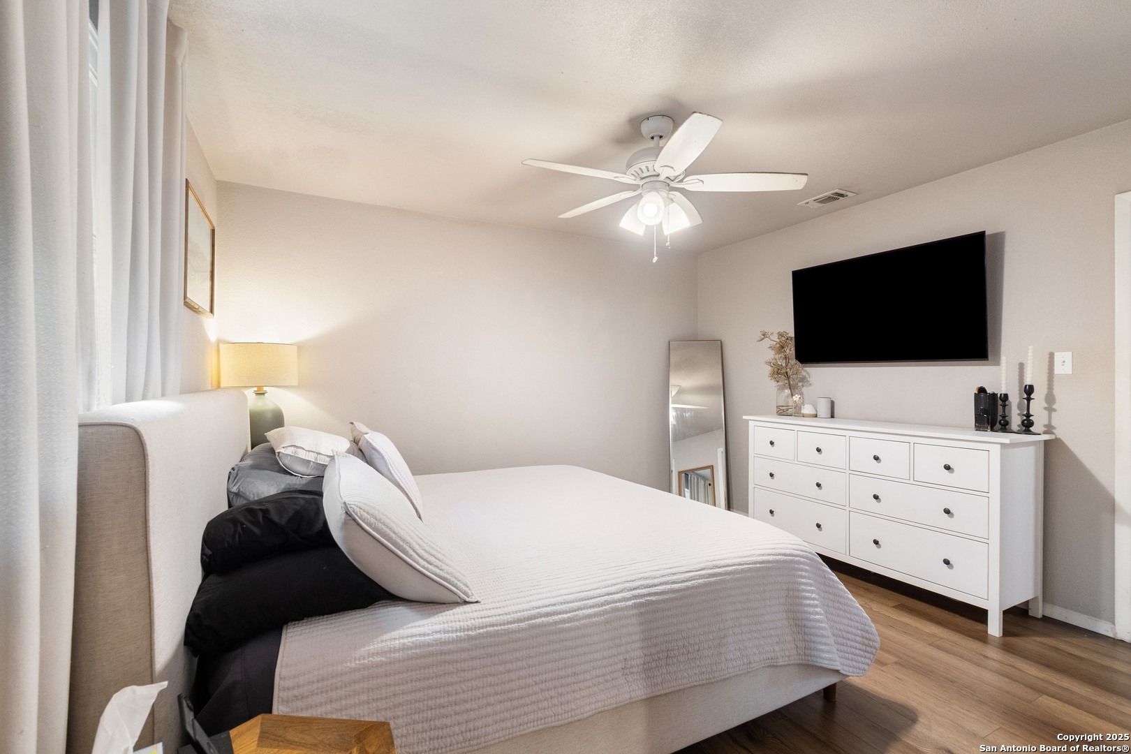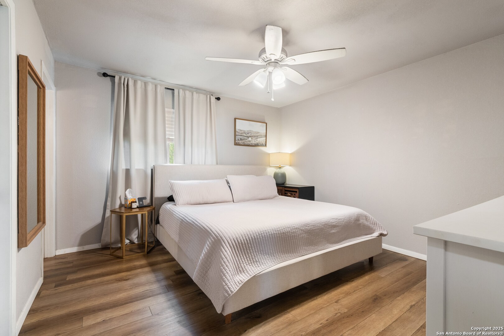 Welcome to a beautiful one-story home with curb appeal in the desirable Great Northwest neighborhood. The current homeowners have added improvements including recent installation of a built-in microwave, stylish laminate flooring in the bedrooms, and a modern stand-up shower in primary suite. Enjoy a spacious backyard with a covered patio-perfect for entertaining and relaxing outdoors. The home offers convenient location to restaurants, grocery stores, major shopping destinations, and Alamo Ranch Marketplace. Great access to major highways, and Northside ISD schools.