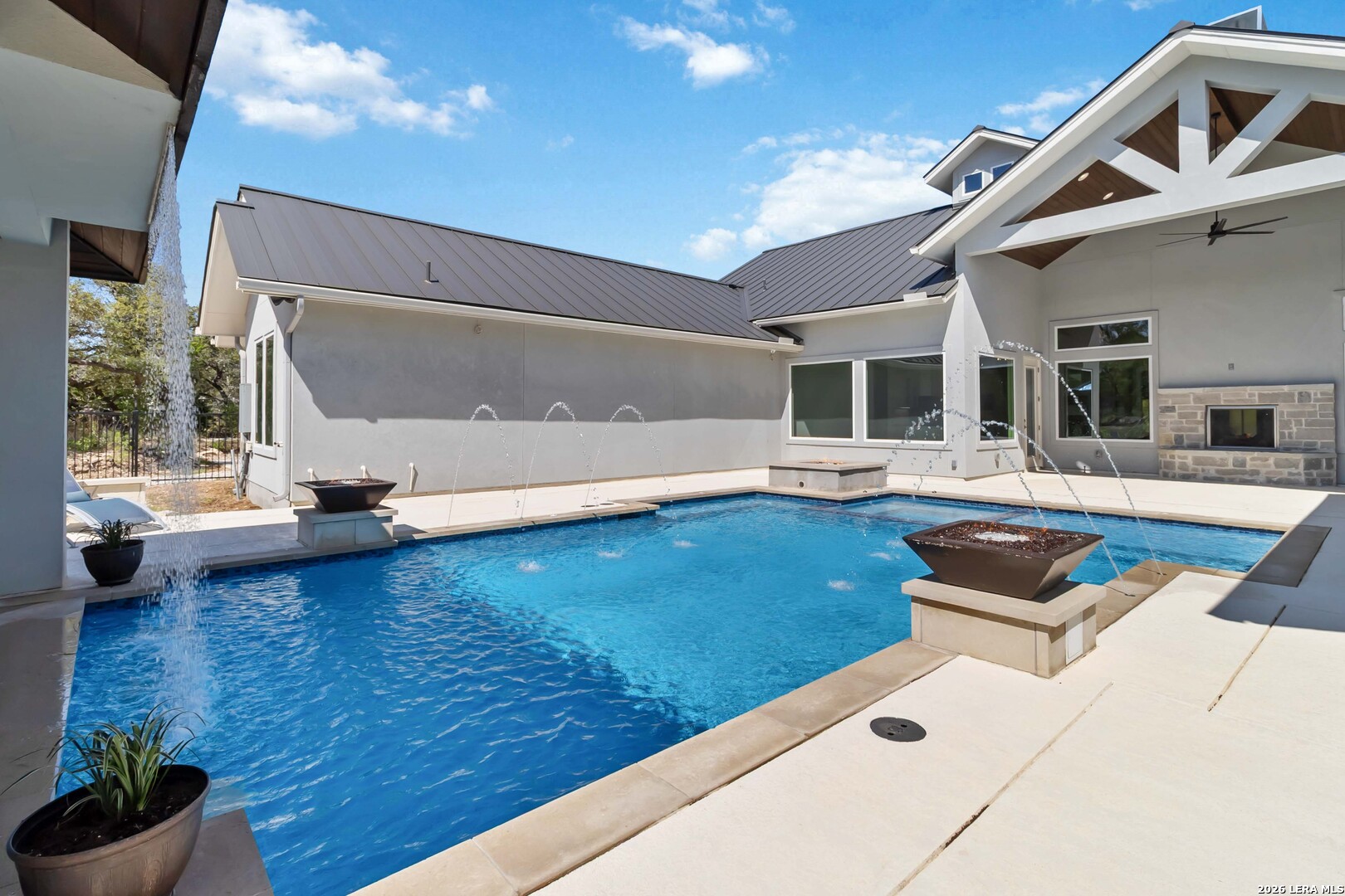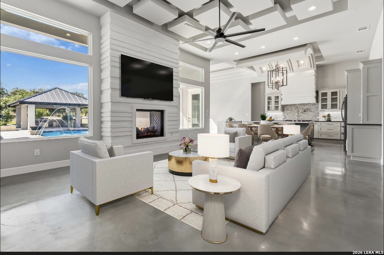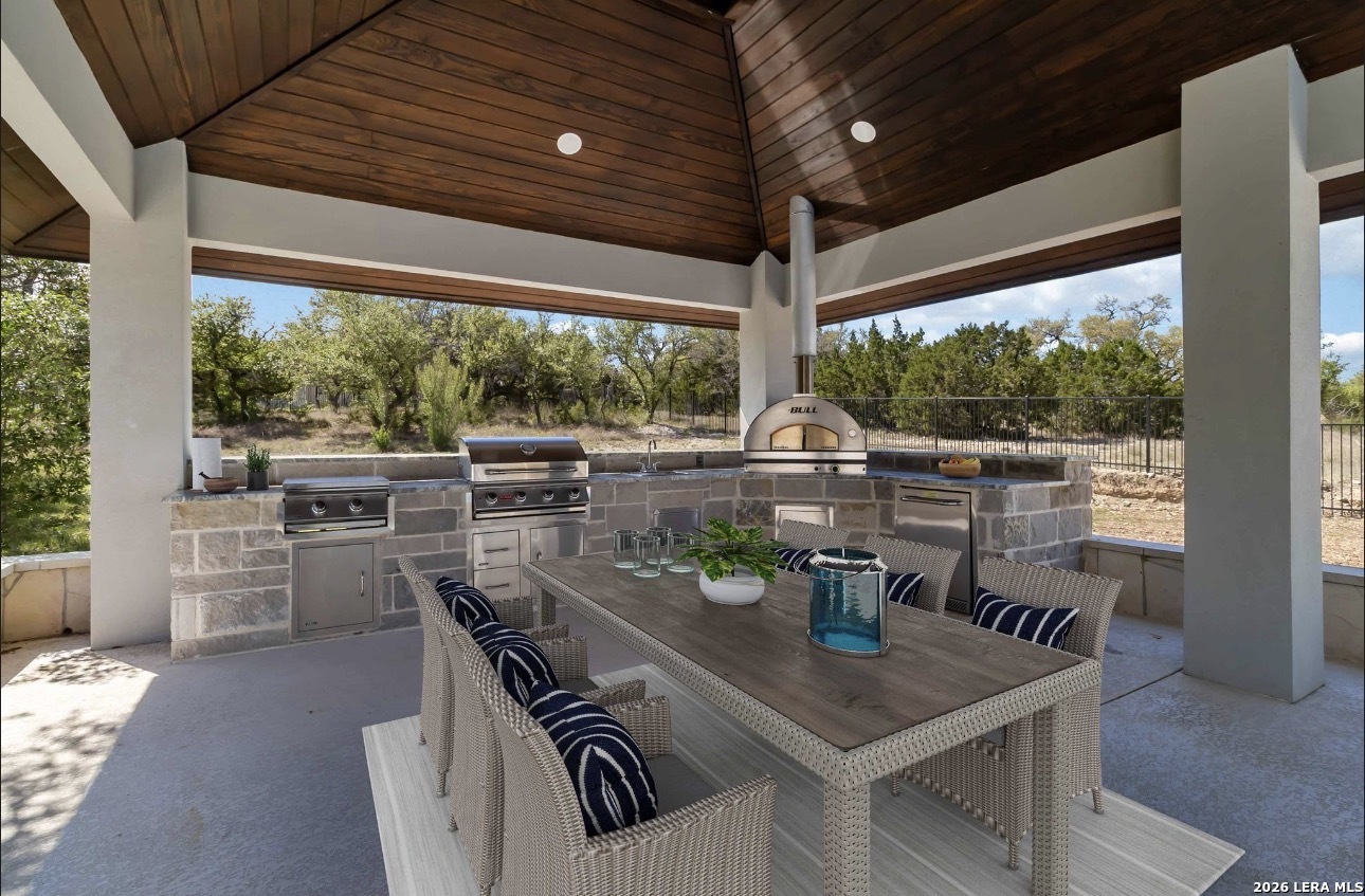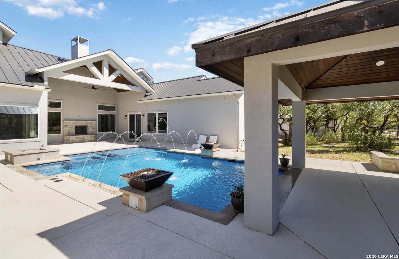 Exquisite and custom-built, this one-story estate sits on a sprawling 1.00-acre lot adorned with majestic heritage oak trees in the exclusive gated community of Belle Oaks Ranch. Designed with the sophistication of a luxury showcase home, this residence has an open-concept living space featuring soaring ceilings and views . Each bedroom has it's own private ensuite perfect for guests. Entertaining travels down the hallway to the massive game and media rooms. The expansive patio area-both covered and uncovered-complete with a fully equipped designer outdoor kitchen finished to the same impeccable standards as the interior. The backyard is a private oasis! Enjoy a custom pool and spa with a sun shelf and water features, rain wall, corner fire bowls, and built in fire pit. Inside, the chef's kitchen is a showstopper with an large island perfect for feeding the masses. The walk-in pantry offers exceptional functionality with built-in cabinetry, shelving and space for an additional refrigerator. Nearby, the mudroom and oversized laundry room add daily convenience with more storage. The luxurious primary suite is a serene retreat with a spa-like bathroom featuring a freestanding tub, oversized walk-in shower, and additional surprises. The workout room is right down the hall so you have no excuses. A dedicated office provides an ideal space for work or study. A circular drive, oversized driveway, and 3-car garage provides plenty of parking for family and friends. Built for comfort and efficiency this beauty is a must see. Belle Oaks Ranch amenities include a clubhouse, pool, playground, tennis court, pickleball, and basketball courts-just minutes away.