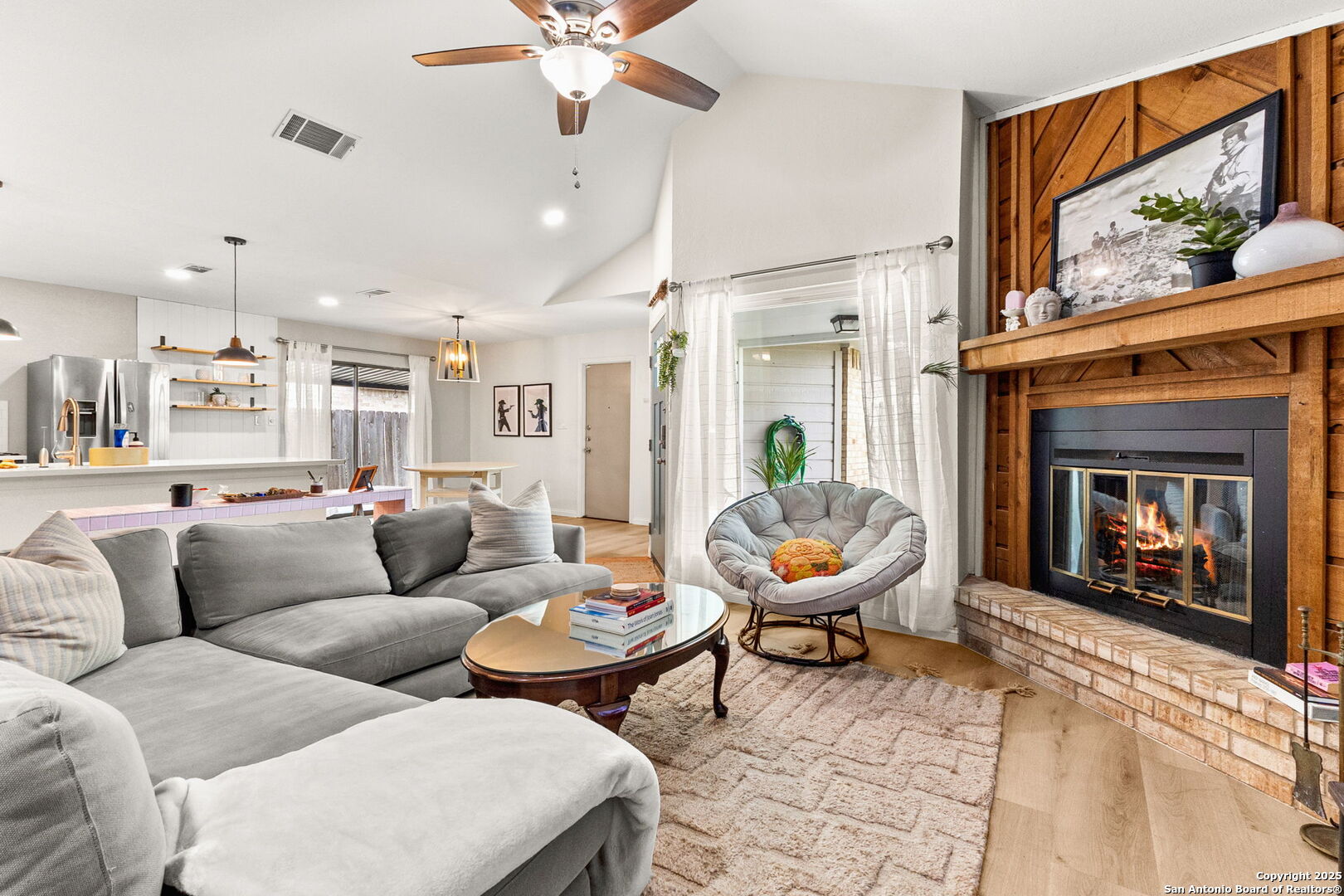 Your Serene Retreat in New Braunfels! Enjoy privacy and tranquility with no rear neighbors! This beautifully maintained 3-bedroom, 2-bath home features an open floor plan, a cozy fireplace, and stylish updates throughout. The kitchen has been completely remodeled with modern finishes, including new cabinets and quartz counter tops perfect for any home chef. New flooring in the main living areas adds warmth and durability, while new windows throughout bring in abundant natural light. Step outside to a large covered patio, ideal for morning coffee while enjoying the lush, mature landscaping. Located in the desirable NBISD, this home blends comfort and convenience in a peaceful setting. Don't miss your chance to make it yours!
