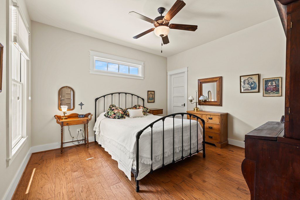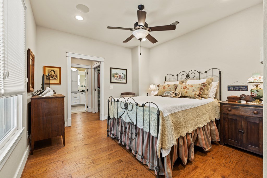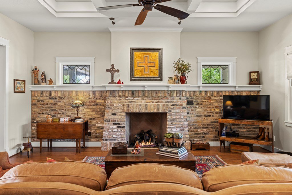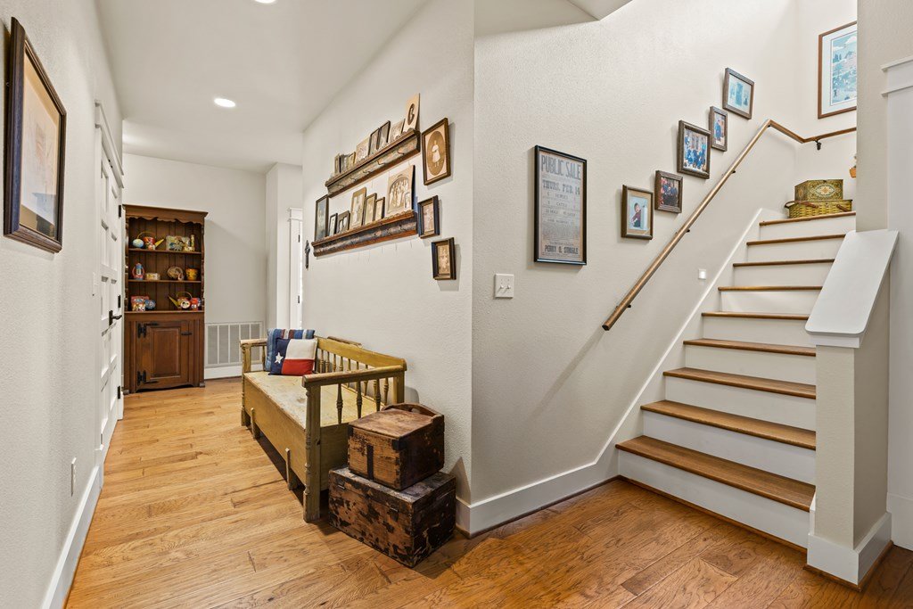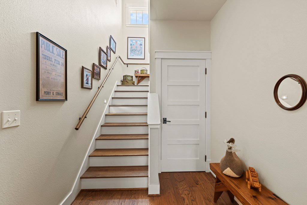 Timeless elegance meets modern Craftsman style in this one-owner, Laughlin designed and built home. Generous foyer welcomes you into open-concept living, dining, and kitchen space, perfect for entertaining and everyday living. The focal point of living room is an exquisite fireplace framed by full-length reclaimed brick accent 1/2 wall, complete with extended dental moulding trim mantel. Kitchen features large granite-top island, farm sink, six-burner gas range, illuminated glass-front cabinetry, custom pull-outs. Just off the kitchen, you'll find a convenient butler's pantry. Downstairs has 3 bedrooms, 2 baths. Master bath has oversized walk-in shower, Nuheat flooring system, and 2 walk-in closets. Throughout the home there are engineered hickory wood floors and solid wood doors. Upstairs is unfinished area with bedroom, bonus room, and bath awaiting your personal finishing touch by adding flooring, bathroom vanity, commode. Enjoy spending time on the wide, double L-shaped front porch which overlooks beautifully landscaped, terraced yard. Terrace walls are reclaimed brick. The home is in one of Fredericksburg's premier neighborhoods, The Preserve, four blocks north of Main St. New roof installed September 2025.