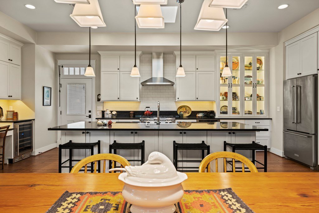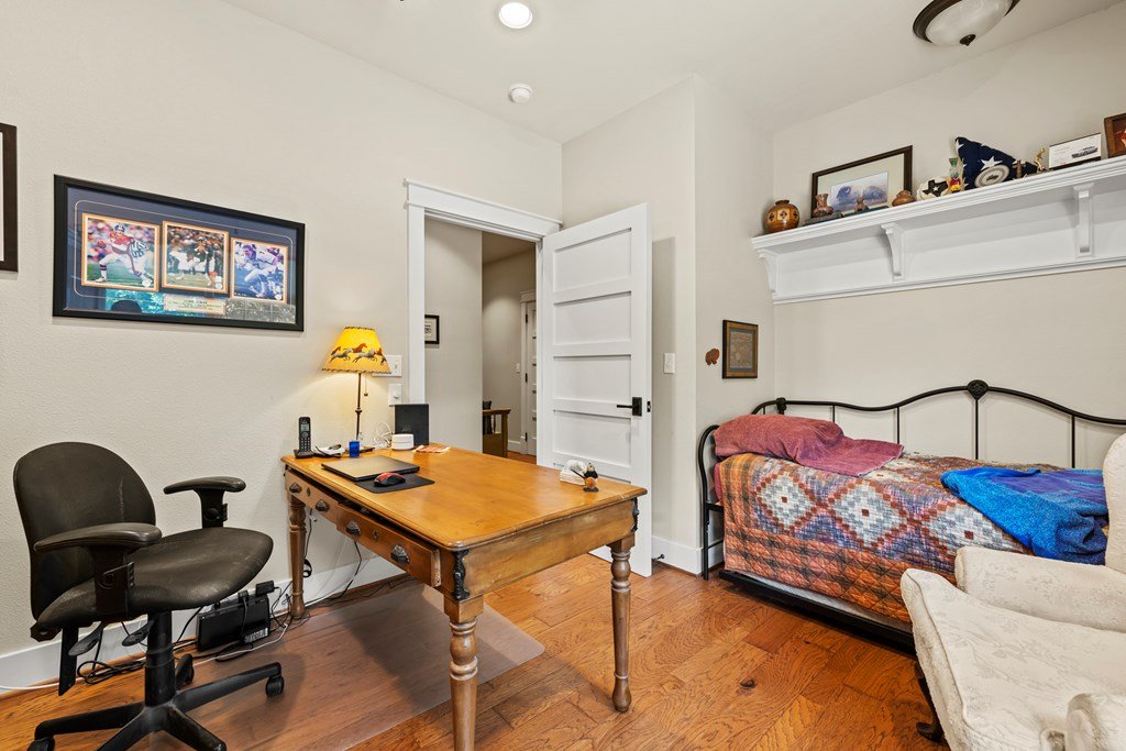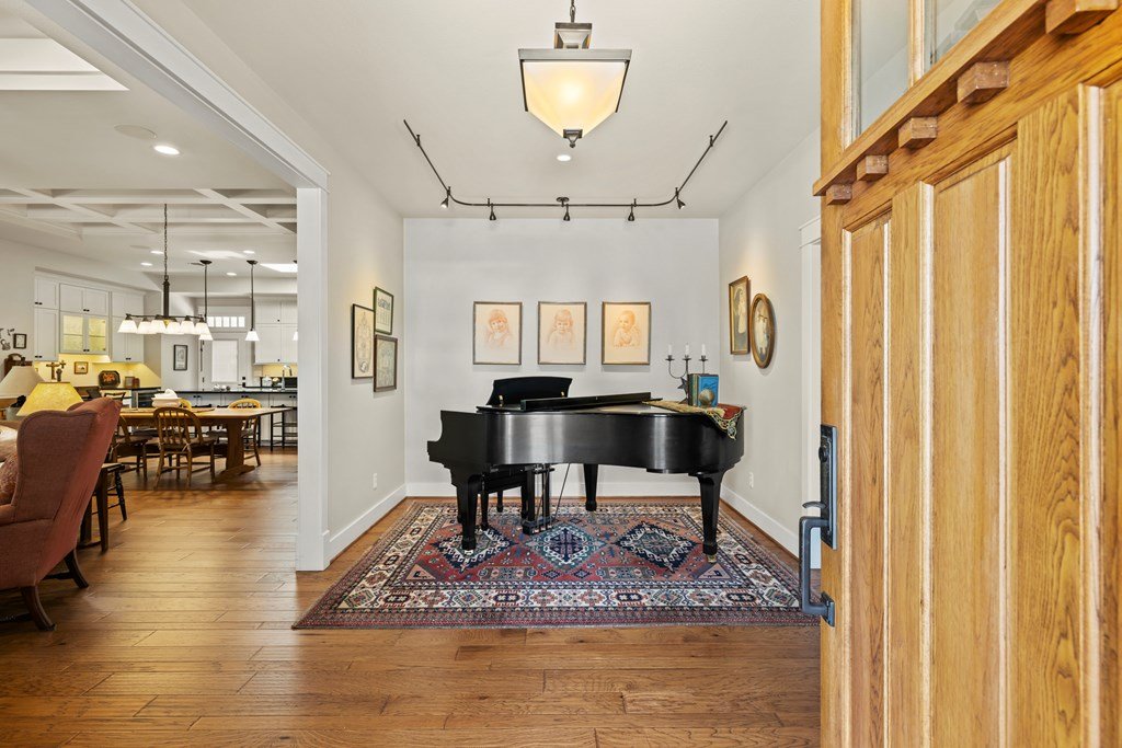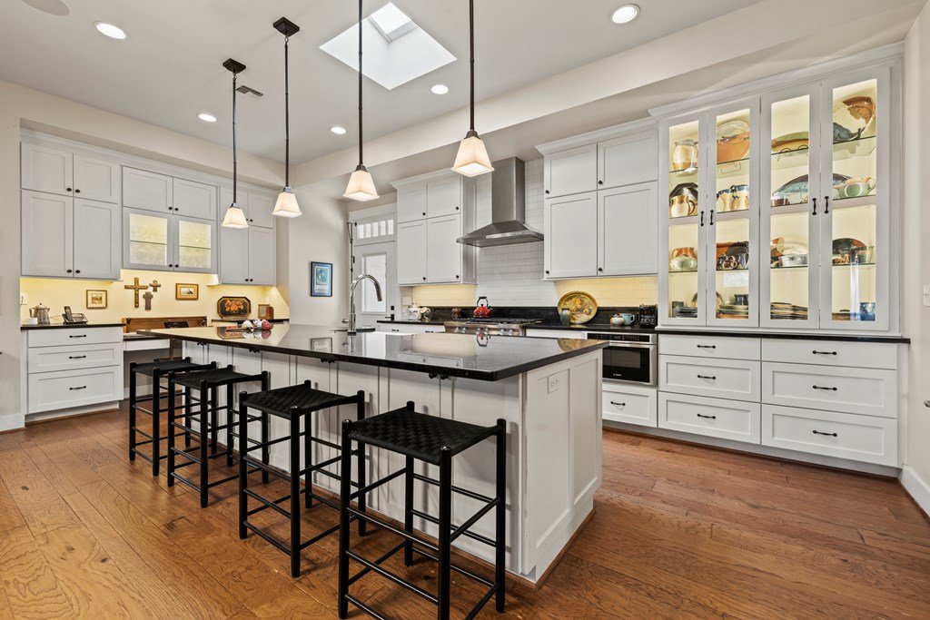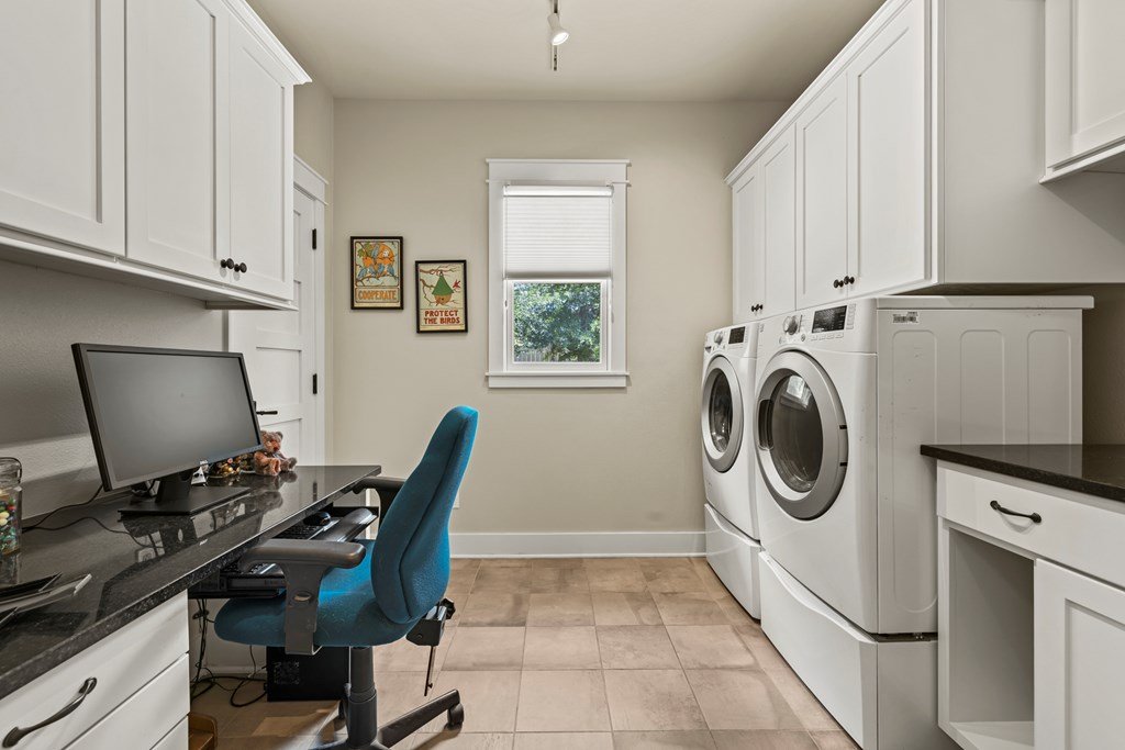 Timeless elegance meets modern Craftsman style in this one-owner, Laughlin designed and built home. Generous foyer welcomes you into open-concept living, dining, and kitchen space, perfect for entertaining and everyday living. The focal point of living room is an exquisite fireplace framed by full-length reclaimed brick accent 1/2 wall, complete with extended dental moulding trim mantel. Kitchen features large granite-top island, farm sink, six-burner gas range, illuminated glass-front cabinetry, custom pull-outs. Just off the kitchen, you'll find a convenient butler's pantry. Downstairs has 3 bedrooms, 2 baths. Master bath has oversized walk-in shower, Nuheat flooring system, and 2 walk-in closets. Throughout the home there are engineered hickory wood floors and solid wood doors. Upstairs is unfinished area with bedroom, bonus room, and bath awaiting your personal finishing touch by adding flooring, bathroom vanity, commode. Enjoy spending time on the wide, double L-shaped front porch which overlooks beautifully landscaped, terraced yard. Terrace walls are reclaimed brick. The home is in one of Fredericksburg's premier neighborhoods, The Preserve, four blocks north of Main St. New roof installed September 2025.
