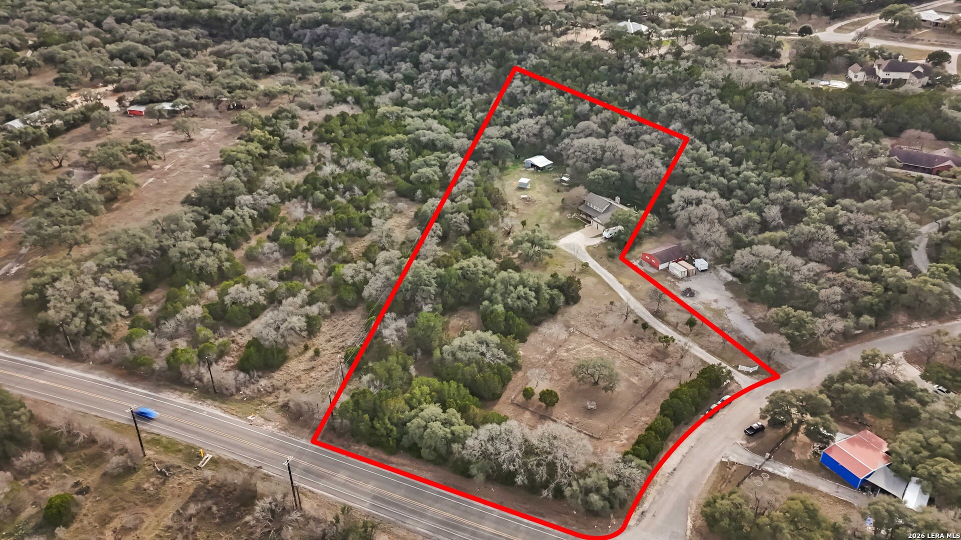 Private 4.5-Acre Horse Property with Barn, Arena & New Roof | Minutes from Garden Ridge & New Braunfels Tucked away on 4.5 private acres with frontage on FM 1863, this two-story Hill Country property offers space, privacy, and functionality. The 4 bedroom, 2.5 bath,(with loft/office space) home sits well back from the road, creating a peaceful setting where the home is barely visible from the street. Recent improvements include a roof that is approximately 1.5 years old, along with a new roof on the barn, giving buyers confidence in two major structures on the property. The home is also equipped with a water softener and sprinkler system for added convenience. Equestrian enthusiasts will appreciate the barn, horse shelter, and small arena, along with plenty of room for animals and outdoor living. Just off the primary bedroom is a fenced dog run, providing a secure and convenient space for your pup. Step outside to enjoy comfortable patios perfect for relaxing and taking in the quiet surroundings-ideal for morning coffee or unwinding in the evening while enjoying the privacy of your acreage. Located with convenient access to Garden Ridge, New Braunfels, and San Antonio, this property offers the feel of Hill Country living while remaining close to town. An RV currently on the property is also available for purchase (separate from the real estate)