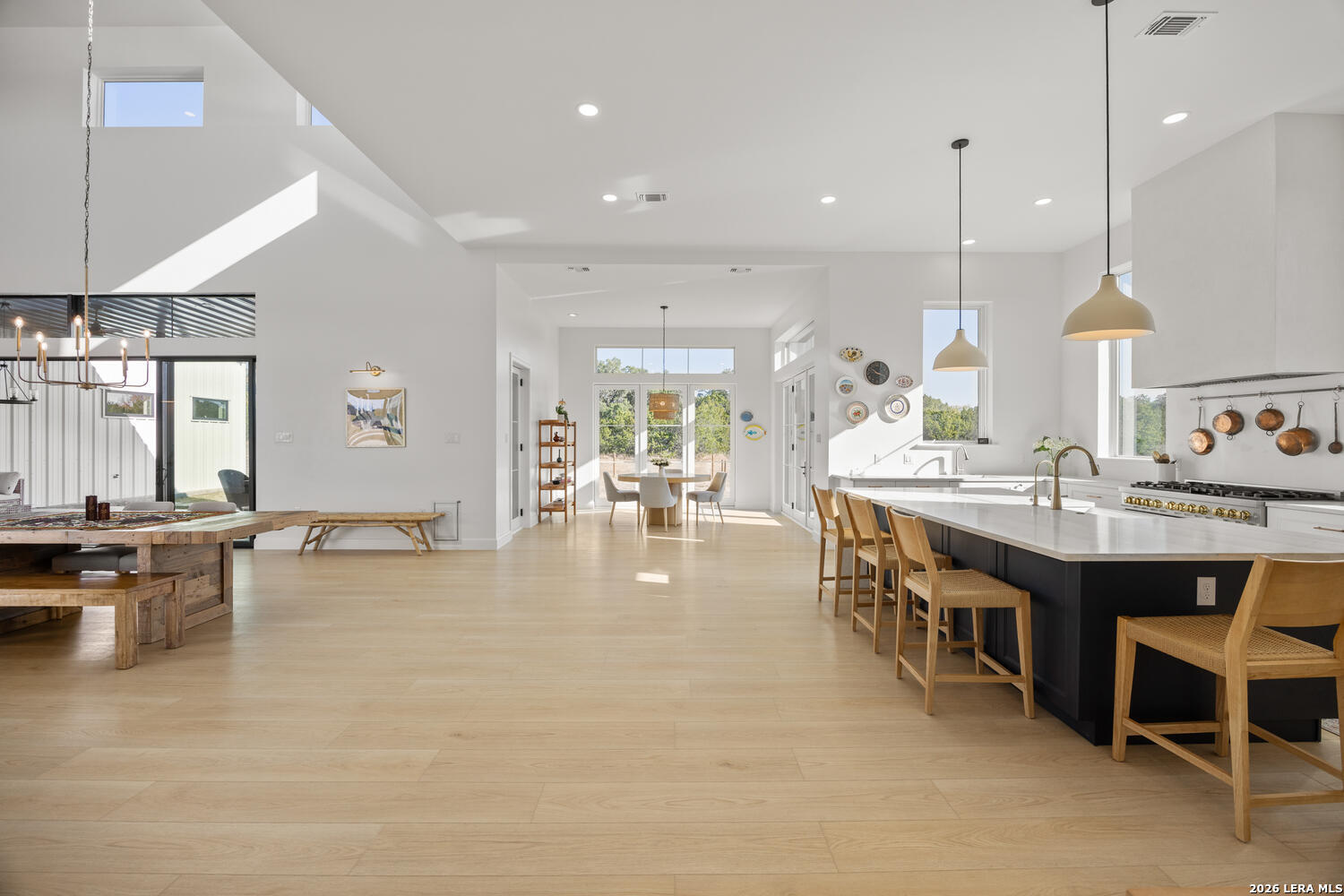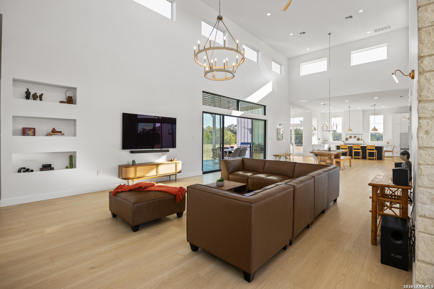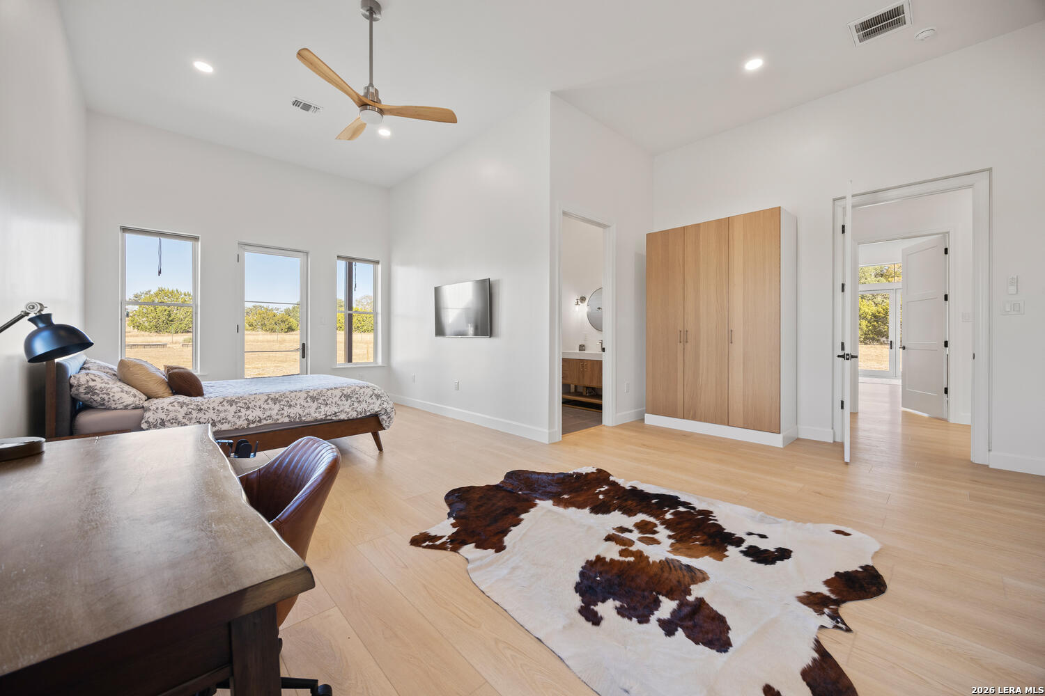 Welcome to an exceptional luxury estate in the gated community of Clearwater Canyon Ranch. Situated on more than 10 Ag-exempt, beautifully wooded acres with access to the pristine Medina River, this property offers an extraordinary opportunity to enjoy refined Texas Hill Country living in a private and serene setting. The main residence encompasses approximately 3,981 square feet of thoughtfully designed living space. This single-story, energy-efficient home is filled with natural light and features high ceilings, eight-foot doors throughout, and expansive Marvin sliding doors that seamlessly connect indoor and outdoor living areas. Sophisticated finishes, a statement chandelier, and carefully selected materials enhance the home's elegant yet comfortable atmosphere. The kitchen is appointed with high-end appliances and complemented by a fully equipped working chef's pantry, offering both functionality and refinement for everyday living and entertaining. The primary suite serves as a private retreat, highlighted by a spa-inspired bath with a soaking tub and upscale finishes designed for relaxation and comfort. Additional improvements on the property include: A 2,000-square-foot insulated RV garage/warehouse with a half bath A separate 1,000-square-foot one-bedroom, one-bath apartment ideal for guests or extended family Over 10 acres of wooded privacy within a secure, gated community Modern, energy-efficient construction throughout This remarkable estate is well suited for a growing family, those working remotely, or individuals seeking a peaceful retirement retreat. With its combination of acreage, river access, luxury features, and proximity to city conveniences, it represents a rare offering in the Texas Hill Country. Conveniently located just ten minutes from Bandera and approximately thirty minutes from San Antonio, the estate provides the perfect balance of seclusion and accessibility to shopping, dining, healthcare, and other essential services. Private showings are available by appointment. Owner financing is available.