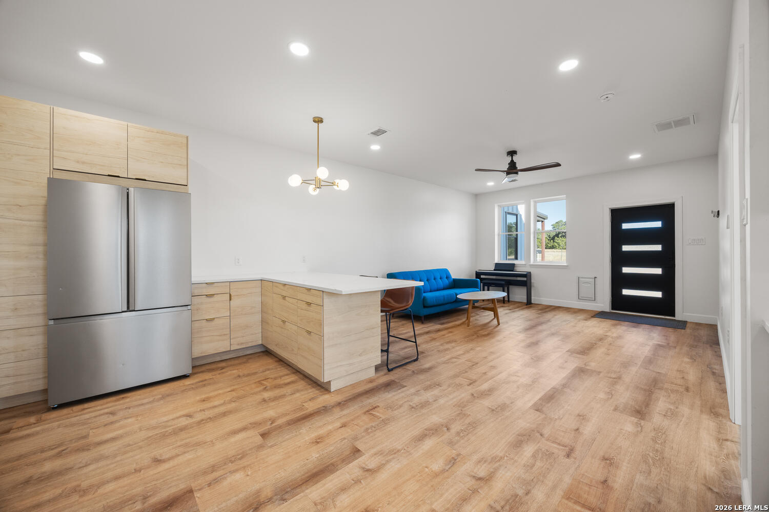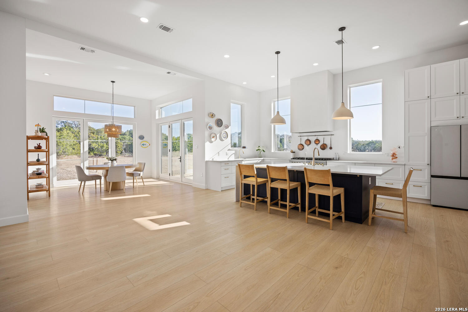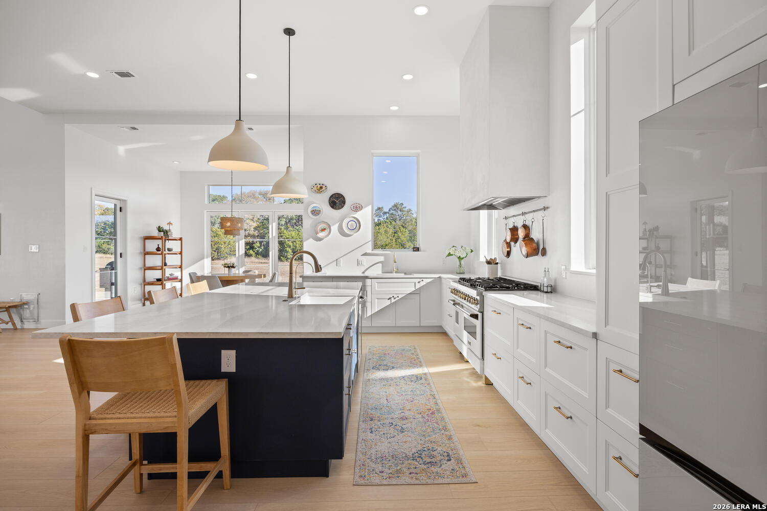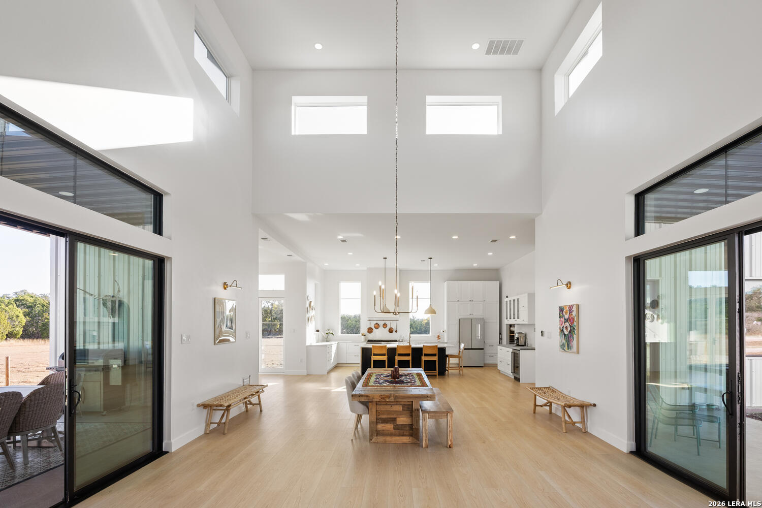 Welcome to an exceptional luxury estate in the gated community of Clearwater Canyon Ranch. Situated on more than 10 Ag-exempt, beautifully wooded acres with access to the pristine Medina River, this property offers an extraordinary opportunity to enjoy refined Texas Hill Country living in a private and serene setting. The main residence encompasses approximately 3,981 square feet of thoughtfully designed living space. This single-story, energy-efficient home is filled with natural light and features high ceilings, eight-foot doors throughout, and expansive Marvin sliding doors that seamlessly connect indoor and outdoor living areas. Sophisticated finishes, a statement chandelier, and carefully selected materials enhance the home's elegant yet comfortable atmosphere. The kitchen is appointed with high-end appliances and complemented by a fully equipped working chef's pantry, offering both functionality and refinement for everyday living and entertaining. The primary suite serves as a private retreat, highlighted by a spa-inspired bath with a soaking tub and upscale finishes designed for relaxation and comfort. Additional improvements on the property include: A 2,000-square-foot insulated RV garage/warehouse with a half bath A separate 1,000-square-foot one-bedroom, one-bath apartment ideal for guests or extended family Over 10 acres of wooded privacy within a secure, gated community Modern, energy-efficient construction throughout This remarkable estate is well suited for a growing family, those working remotely, or individuals seeking a peaceful retirement retreat. With its combination of acreage, river access, luxury features, and proximity to city conveniences, it represents a rare offering in the Texas Hill Country. Conveniently located just ten minutes from Bandera and approximately thirty minutes from San Antonio, the estate provides the perfect balance of seclusion and accessibility to shopping, dining, healthcare, and other essential services. Private showings are available by appointment. Owner financing is available.