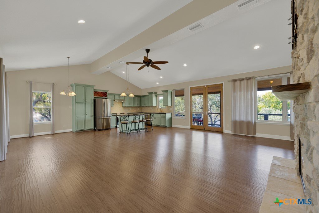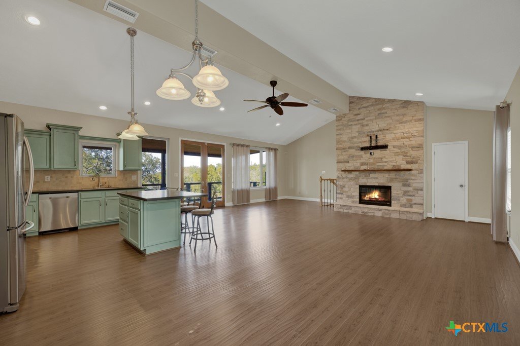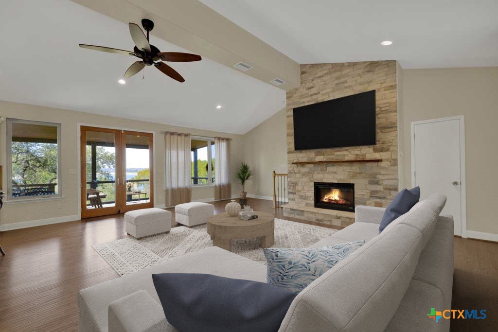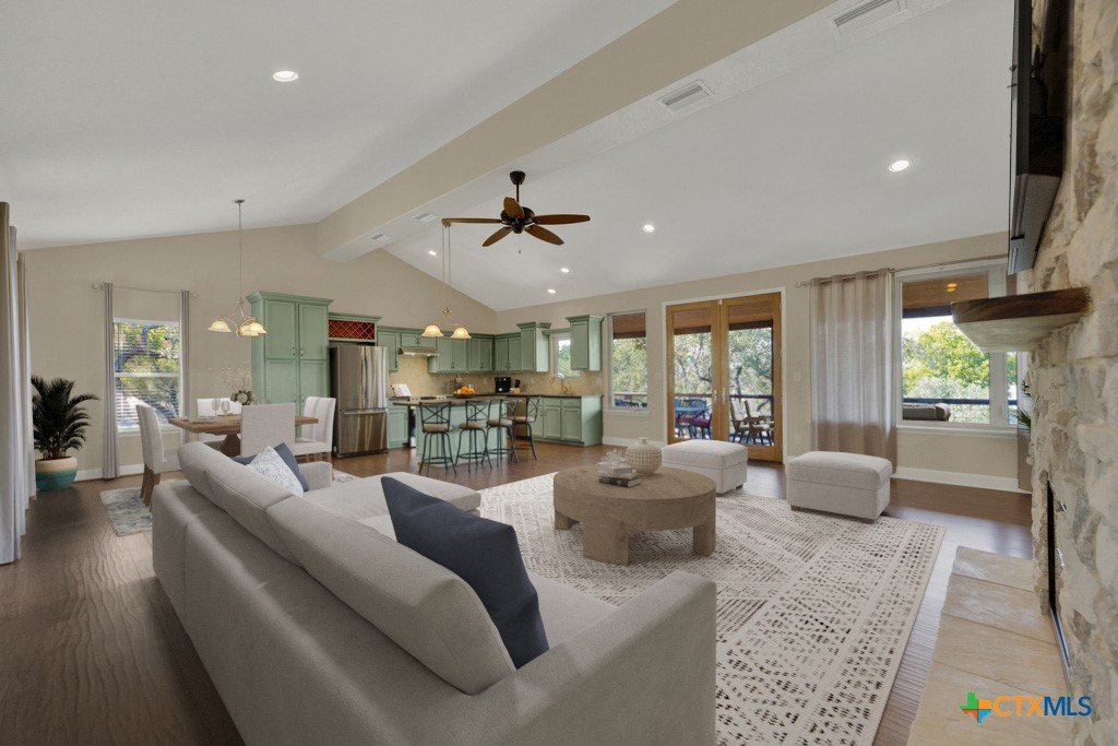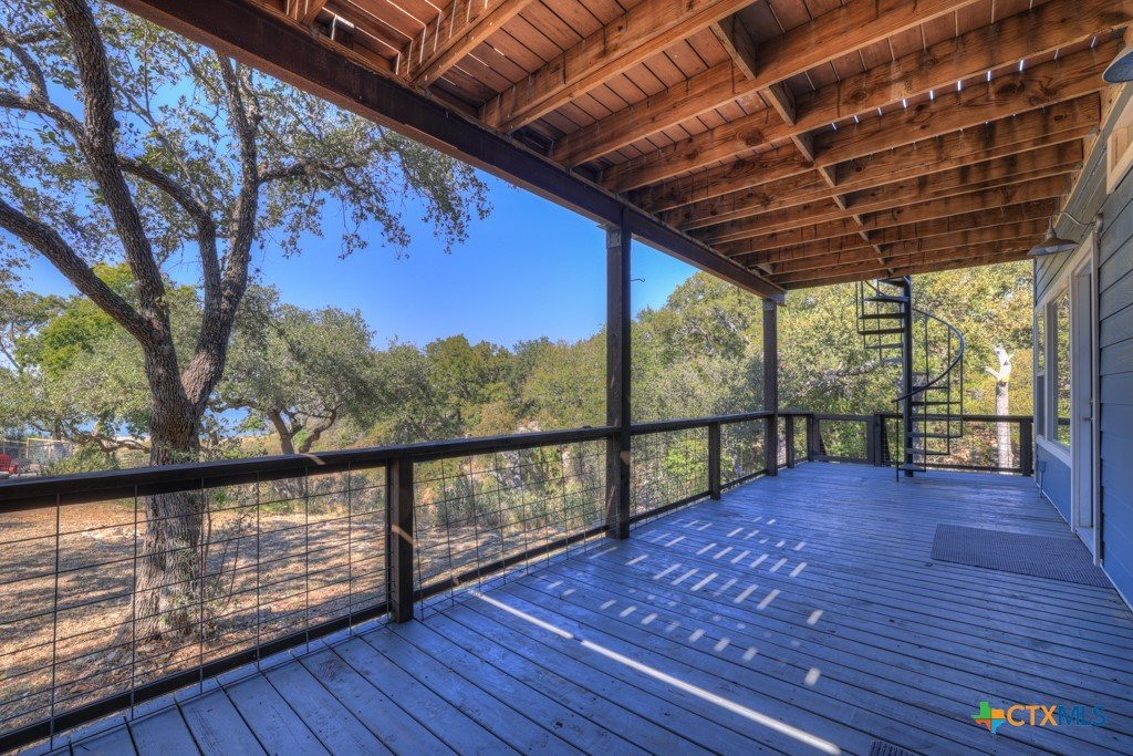 Discover this charming two-story home nestled along the tranquil shoreline of Canyon Lake, offering a perfect retreat with excellent investment potential—vacation rentals are permitted. The property comprises two lots: the main home on one and an adjacent lot at 913 Glenn Dr., valued at $164,000 by the Comal County Appraisal District. This second lot opens up endless possibilities—build another residence, expand your outdoor retreat, or sell it—your options are unlimited. Located in the scenic heart of Central Texas, this property combines lakefront serenity with easy access to local attractions. Enjoy nearby antique shops, caves, water parks, and a vibrant food and music scene in New Braunfels, Wimberley, or Fredericksburg—all just a short drive away. Upstairs, the open-concept kitchen, dining, and living area is filled with natural light from expansive windows that showcase stunning lake views. Step out onto the upper deck for a relaxing vantage point to take in the scenery. A convenient half bath offers added comfort on this level. Downstairs features three bedrooms and two full bathrooms. Two of the bedrooms have direct access to the lower deck, perfect for enjoying the peaceful lakefront setting. The home is equipped with a full-house water softener system located beneath the lower deck.