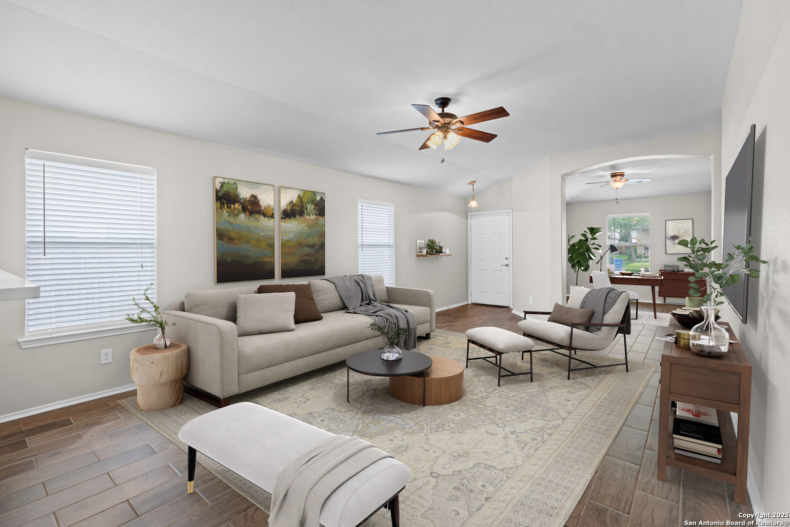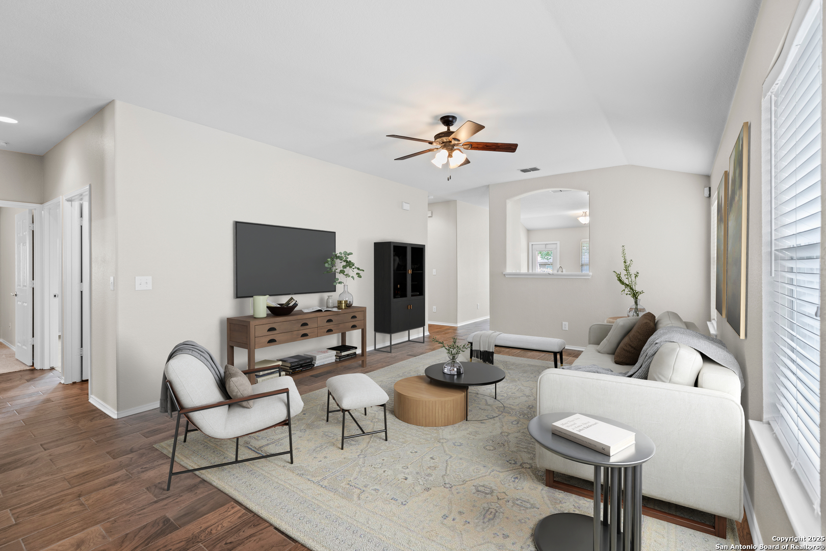 This charming 3-bedroom, 2-bath home is full of warmth, natural light, and thoughtful updates! Step inside to find beautiful flooring throughout and fresh interior paint (April 2025), creating a clean, airy feel. The separate dining room offers space to host, while the open-concept layout flows seamlessly from the kitchen to the living and dining areas-perfect for everyday living and entertaining. The kitchen is a standout with upgraded countertops and cabinets (2021), a center island, walk-in pantry, breakfast nook, and a sleek Bosch dishwasher (2021). The spacious primary suite features dual closets and a full en-suite bath. Secondary bedrooms are nicely sized and versatile for guests, home office, or hobbies. Enjoy outdoor living on the covered patio with an extended deck-replaced in 2021-for easy entertaining. Additional upgrades include new carpet (March 2025), HVAC system (2023), water heater (2019), and water softener (2018). Tucked in an established neighborhood in the heart of New Braunfels, this light, bright, and lovingly maintained home is truly move-in ready. Come see it today!