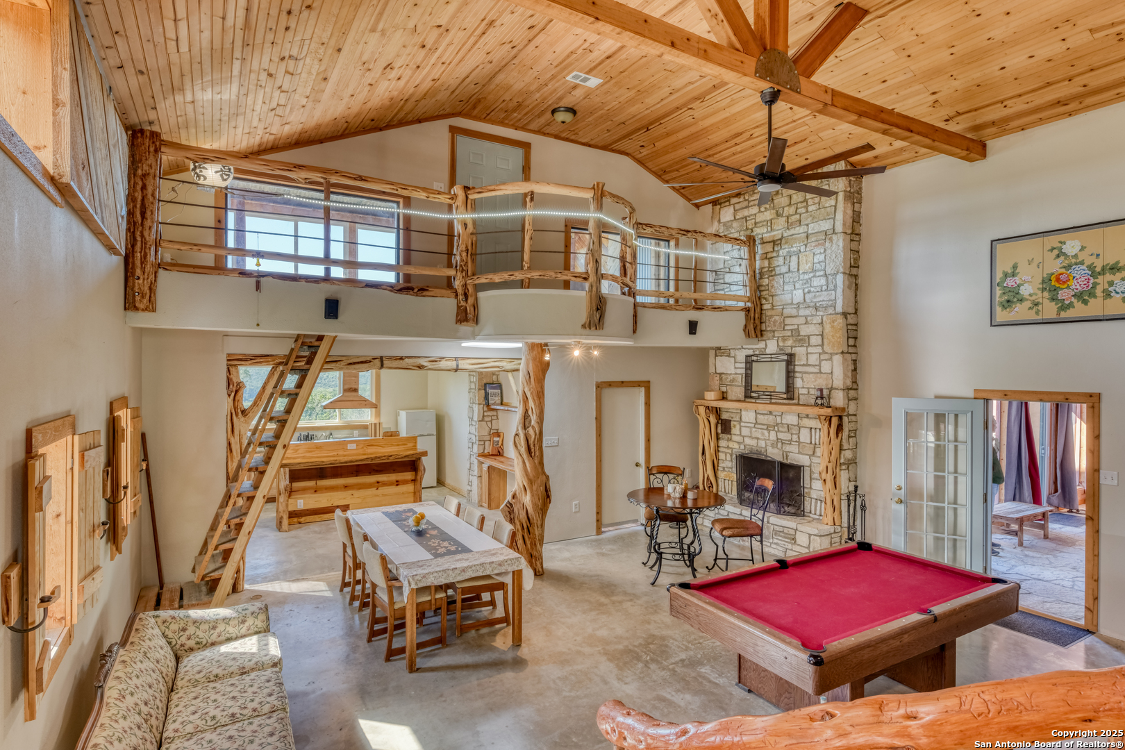 Hill Country property with home, located on a secluded hilltop between Medina and Kerrville, TX. If quiet stary nights and endless Texas skies are what you're looking for, look no further. This unique home offers plenty of space, unlimited storage and a large garage with workshop. The current owner is a skilled craftsman who has invited the hill country beauty into the home, with many custom-made cedar beams and details throughout. The main living area with high ceilings and adjacent kitchen (one of two) offers plenty of interior space for family gatherings or entertaining. Outside, enjoy your evenings on the patio while making gourmet pizzas in the outdoor pizza oven. One of the many spots on the property that offer breathtaking views of the hillside and beyond. Additionally, this home features a spacious, unfinished bonus area on the second floor, accessible from both inside and outside. Perched above the rest of the property, it offers sweeping hillside views that may be the finest on site. With limitless potential, this space could be transformed into a guest suite, game room, or an extra bedroom, whatever suits your vision.