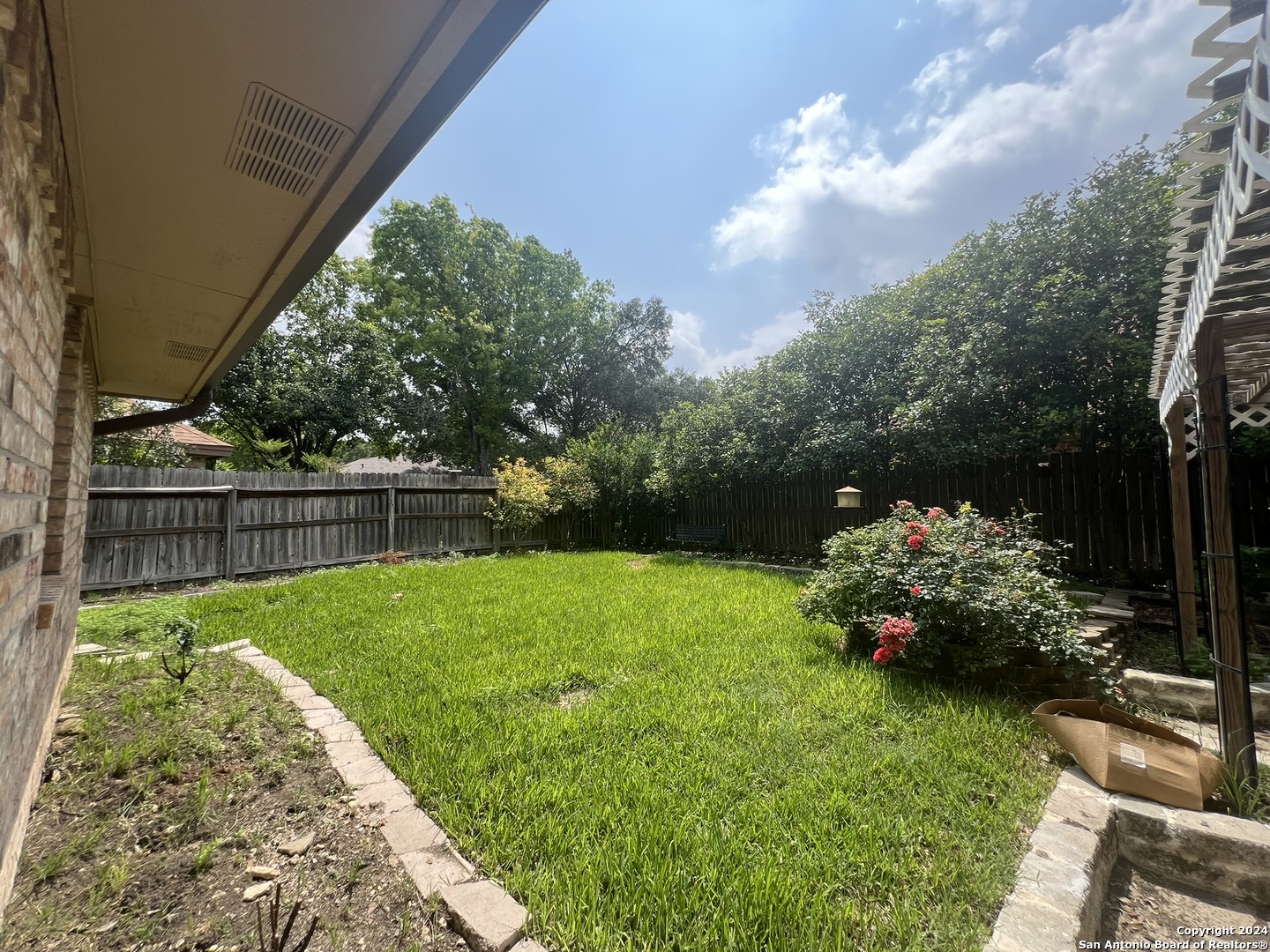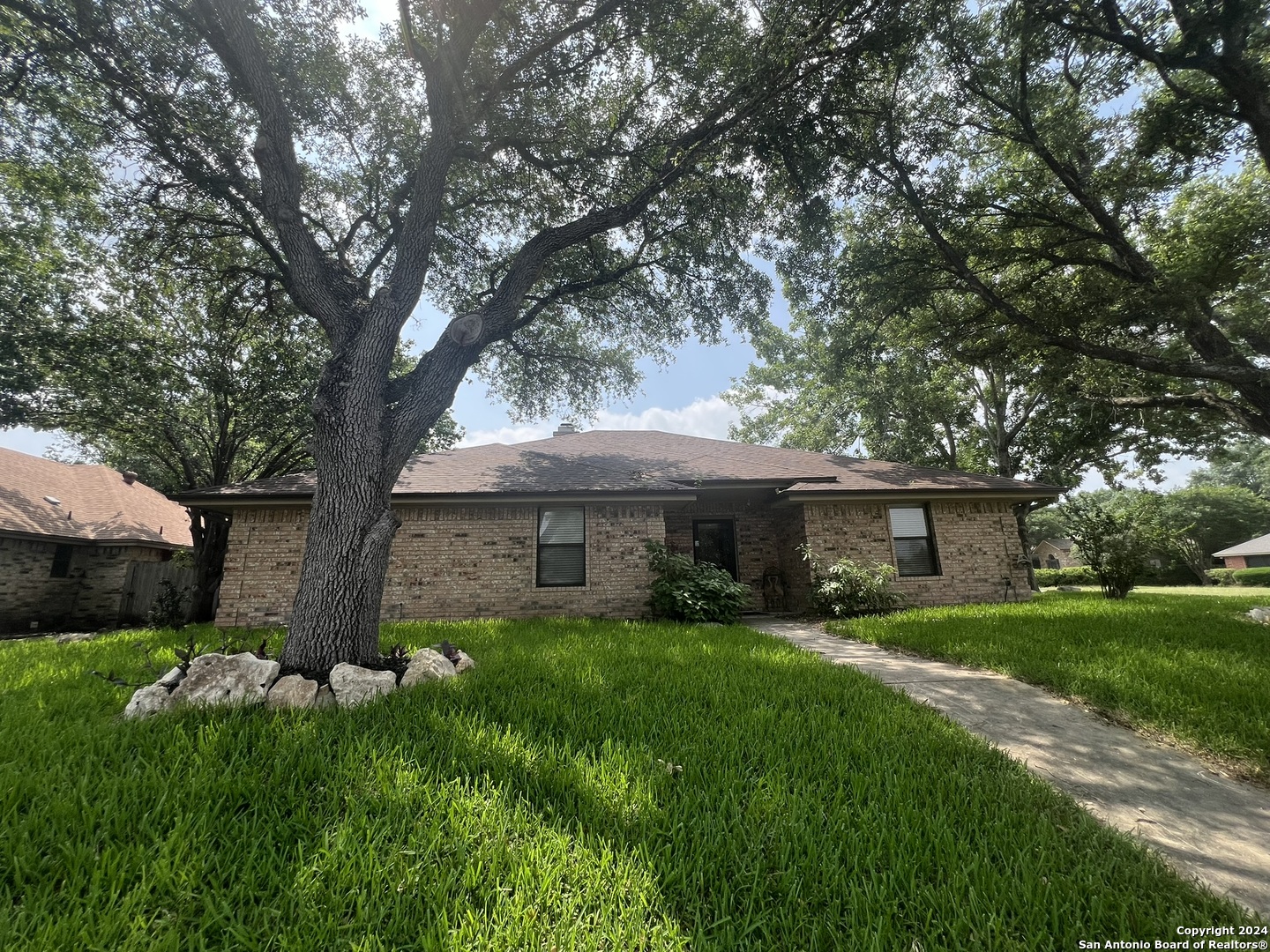 Nicely updated 1 story just off Walnut! Trees & Shade make it that much better! Single living area opens to fully equipped kitchen w/ granite c-tops and good work-space for the cook of the house. Formal dining and atrium for extra entertainment spaces. Generous secondary bedrooms with new carpet & lighting. Master offers full bath w/ jetted tub and stand up shower & dual sink and dual closets too! Situated on corner lot with sprinkler system & private backyard. Minutes to IH35 shopping & schools.