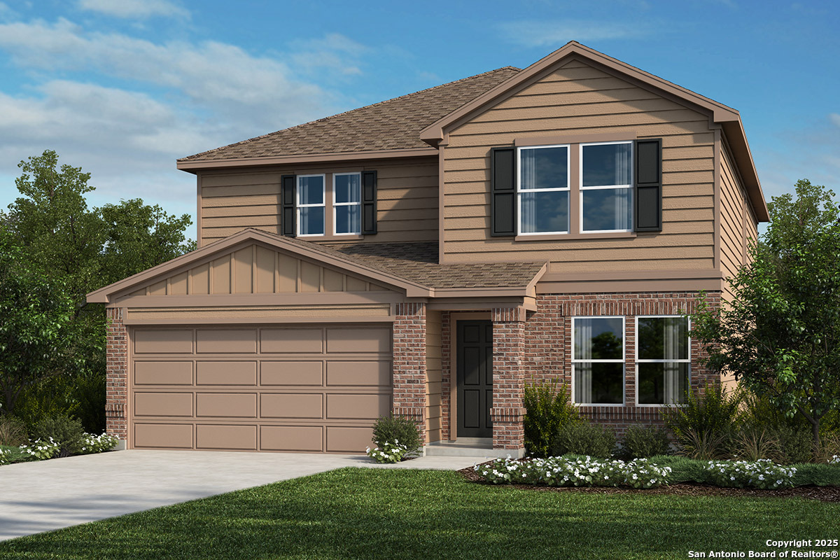 Step into comfort with this thoughtfully designed home featuring 9-ft. first-floor ceilings and a versatile den with elegant double doors. The kitchen boasts Whirlpool stainless steel appliances, Woodmont Belmont 42-in. upper cabinets, Silestone countertops in Linen Cream, and an extended breakfast bar perfect for casual dining. Relax in the primary bath with upgraded cabinets and a 42-in. shower with a stylish Daltile tile surround. Designer details include a Carrara-style entry door, Kwikset Polo interior hardware, and Rekindle ceramic tile flooring throughout the great room, kitchen, and bathrooms. Additional highlights include a wireless security system, fully sodded yard, and automatic sprinkler system for easy outdoor maintenance.