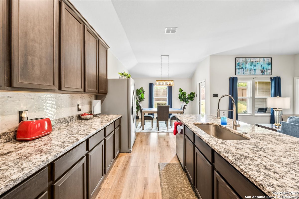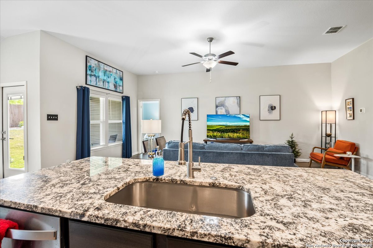 OWNER FINANCING AVAILABLE! Includes existing American Home Shield home waranty! Please inquire for Details. Bright and airy four-bedroom, two-bath home with true open-concept living. The upgraded kitchen anchors the space with a large island, expansive granite counters, and stainless steel appliances, all open to the dining area and family room-perfect for everyday life and entertaining. After a busy day, retreat to the private primary suite with a spacious bedroom and en-suite bath. Out back, the property backs to a ranch-no neighbors behind for extra privacy.