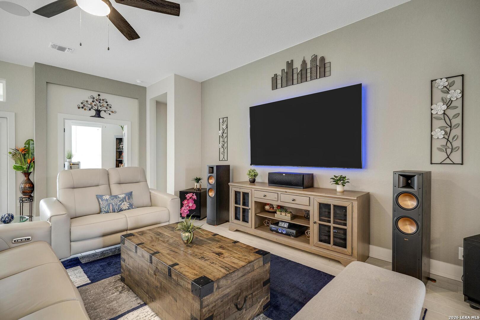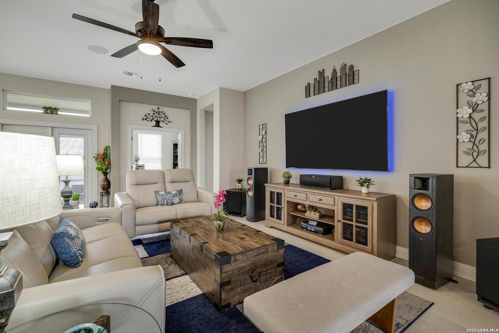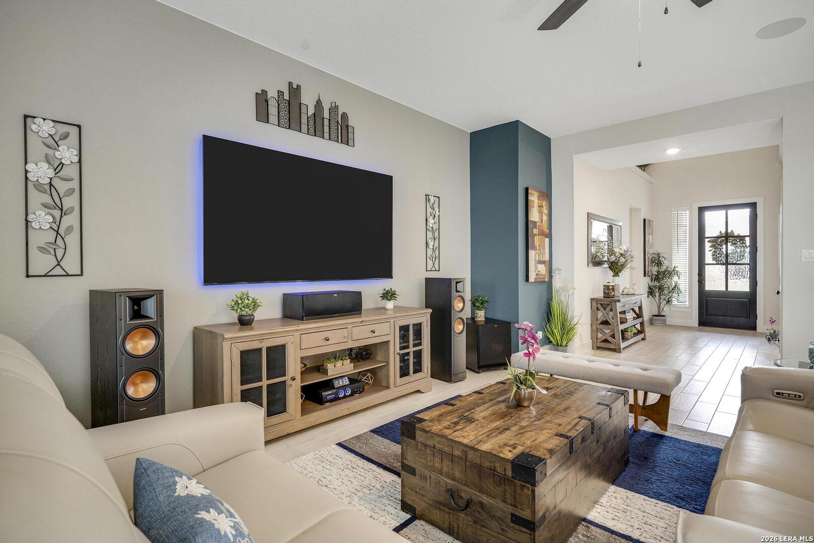 $12,000 FOR BUYER'S CLOSING COSTS . THIS HOME SHOWS BETTER THAN A MODEL HOME. FROM THE ENTRY YOU SEE THE PRIVATE BACKYARD THAT BACKS TO A RANCH THAT WILL REMAIN FOREVER. THE DRAMATIC LARGE LIVING AREA HAS VERY TALL CEILINGS AND IT IS OPEN TO THE KITCHEN THAT HAS A BEAUTIFUL AND LARGE QUARTZ COUNTERTOP THAT CAN SEAT MANY FOR ENTERTAINING. BE SURE TO NOTICE THE UNUSUAL CAN LIGHTING.THERE IS NICE SIZED EATING AREA FOR TABLE AND CHAIRS. THE MASTER BEDROOM IS DOWNSTAIRS PLUS A STUDY AND 2 MORE BEDROOMS. THE UPSTAIRS HAS A MEDIA ROOM WITH THE FOURTH BEDROOM AND BATH.