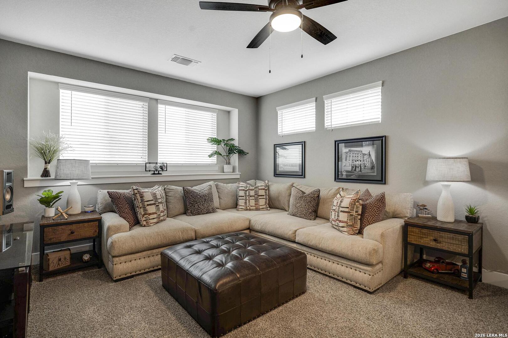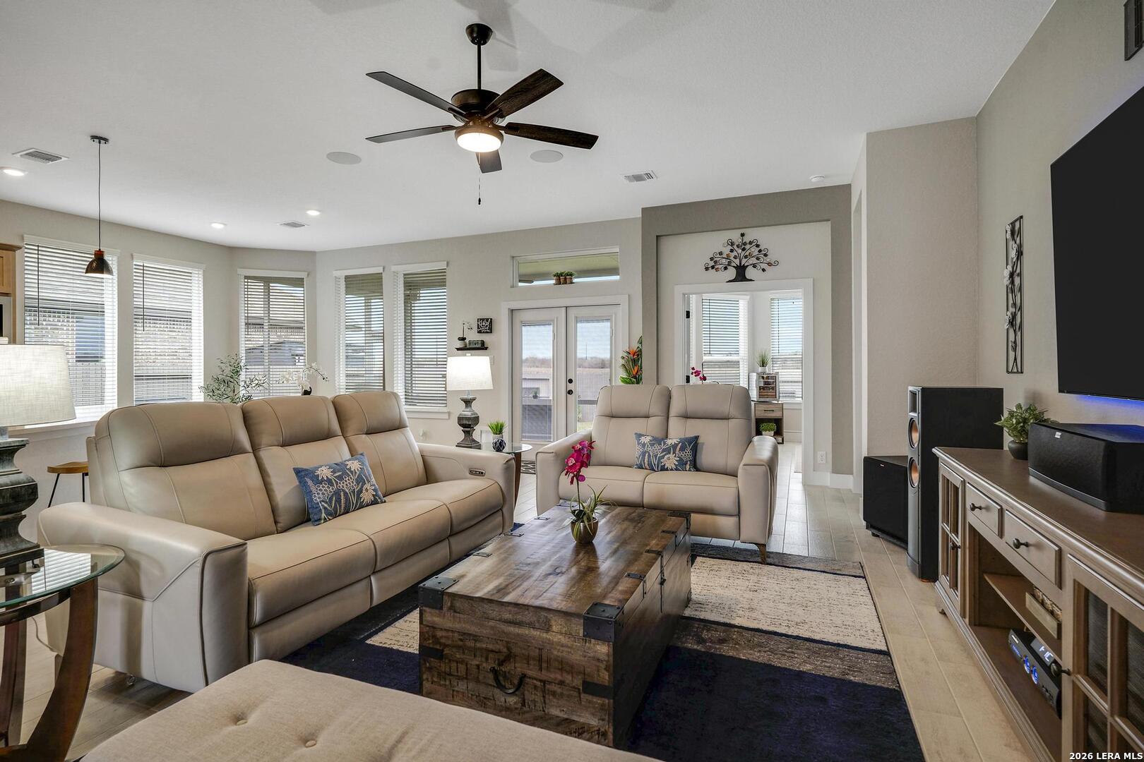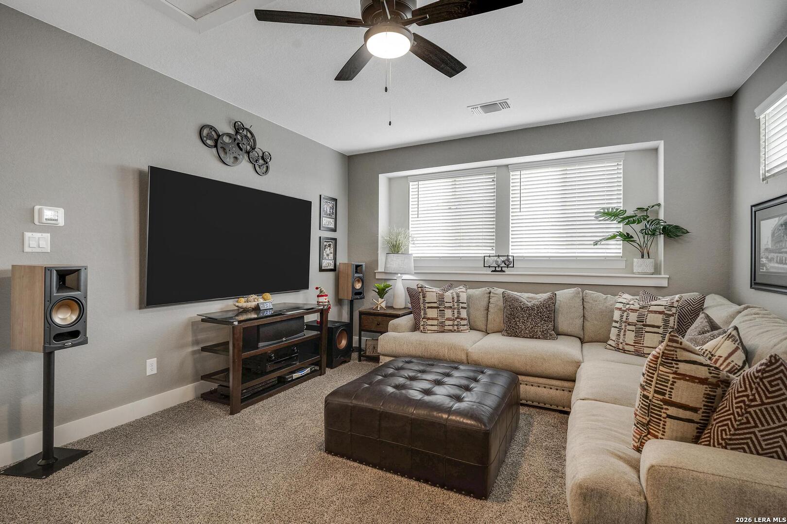 $12,000 FOR BUYER'S CLOSING COSTS . THIS HOME SHOWS BETTER THAN A MODEL HOME. FROM THE ENTRY YOU SEE THE PRIVATE BACKYARD THAT BACKS TO A RANCH THAT WILL REMAIN FOREVER. THE DRAMATIC LARGE LIVING AREA HAS VERY TALL CEILINGS AND IT IS OPEN TO THE KITCHEN THAT HAS A BEAUTIFUL AND LARGE QUARTZ COUNTERTOP THAT CAN SEAT MANY FOR ENTERTAINING. BE SURE TO NOTICE THE UNUSUAL CAN LIGHTING.THERE IS NICE SIZED EATING AREA FOR TABLE AND CHAIRS. THE MASTER BEDROOM IS DOWNSTAIRS PLUS A STUDY AND 2 MORE BEDROOMS. THE UPSTAIRS HAS A MEDIA ROOM WITH THE FOURTH BEDROOM AND BATH.