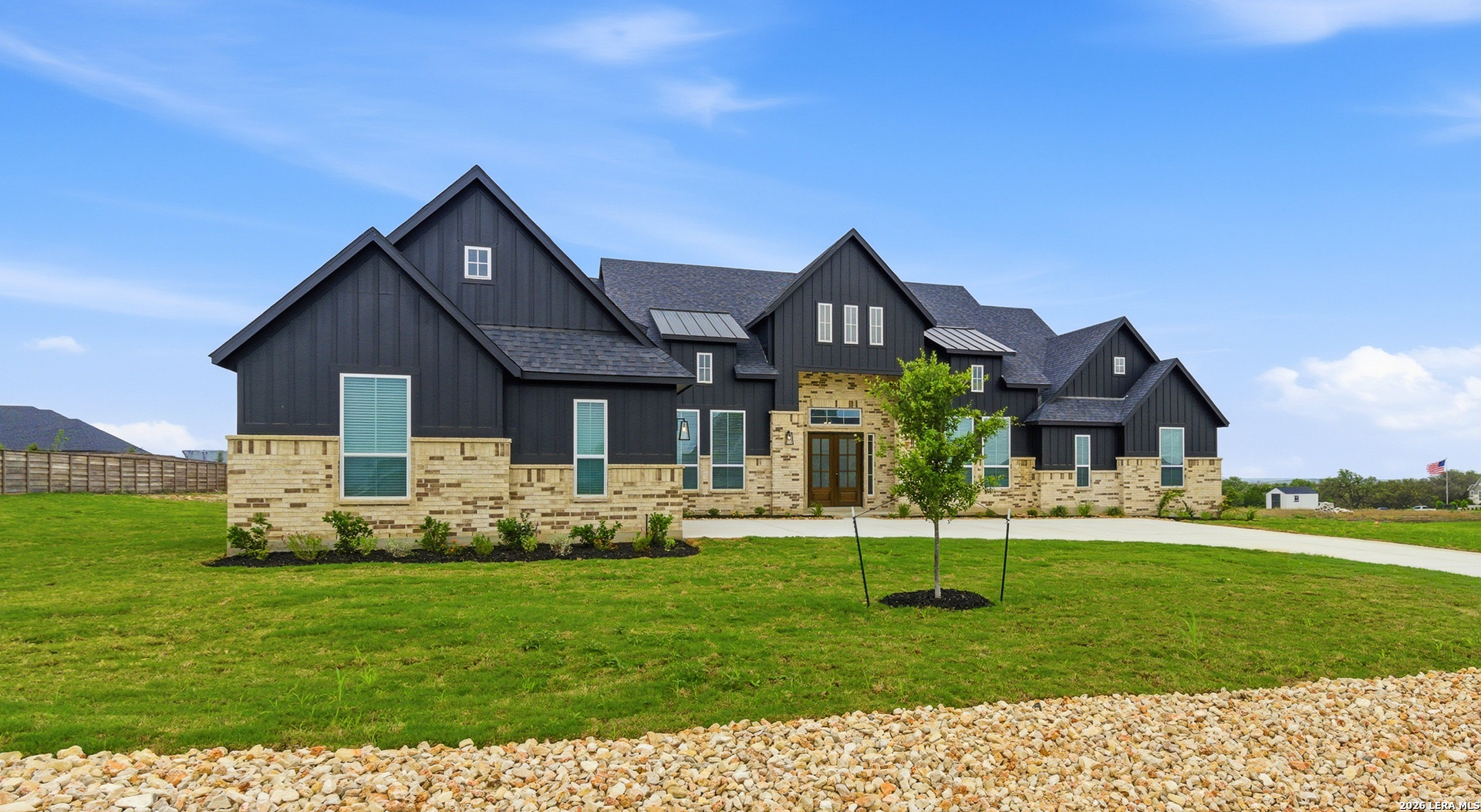 Move in Ready!! Offered on a 1-acre green belt in a community where every homesite is 1-acre. Only a total of 27 homes will be built in unit 1 here. Hilltop Views, just minutes from Cibolo, or New Braunfels and right between I-10 and I-35 you will have the perfect dream spot! This is a very limited opportunity community to build dreams homes like this on an acre under a million! This 4,000 sqft home is an enhanced version of our model home in the community adding more sqft to the home, a working pantry, swing car garages, and a private patio off the master!
