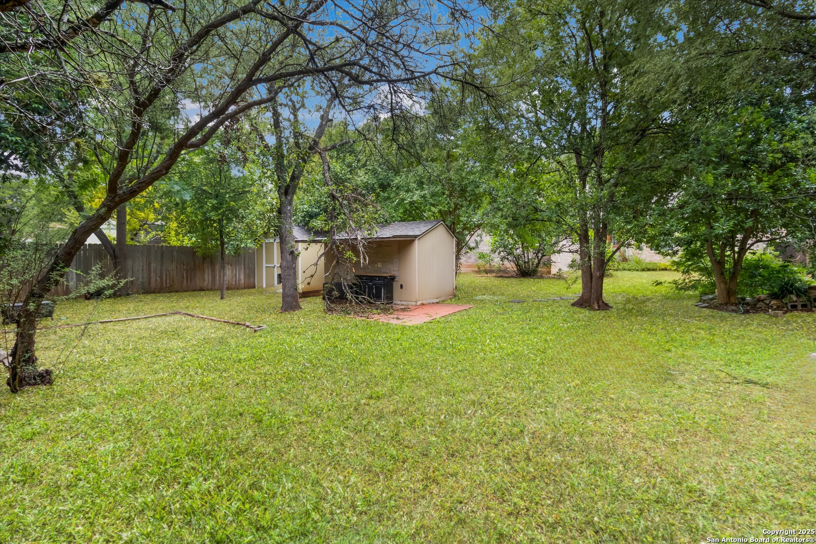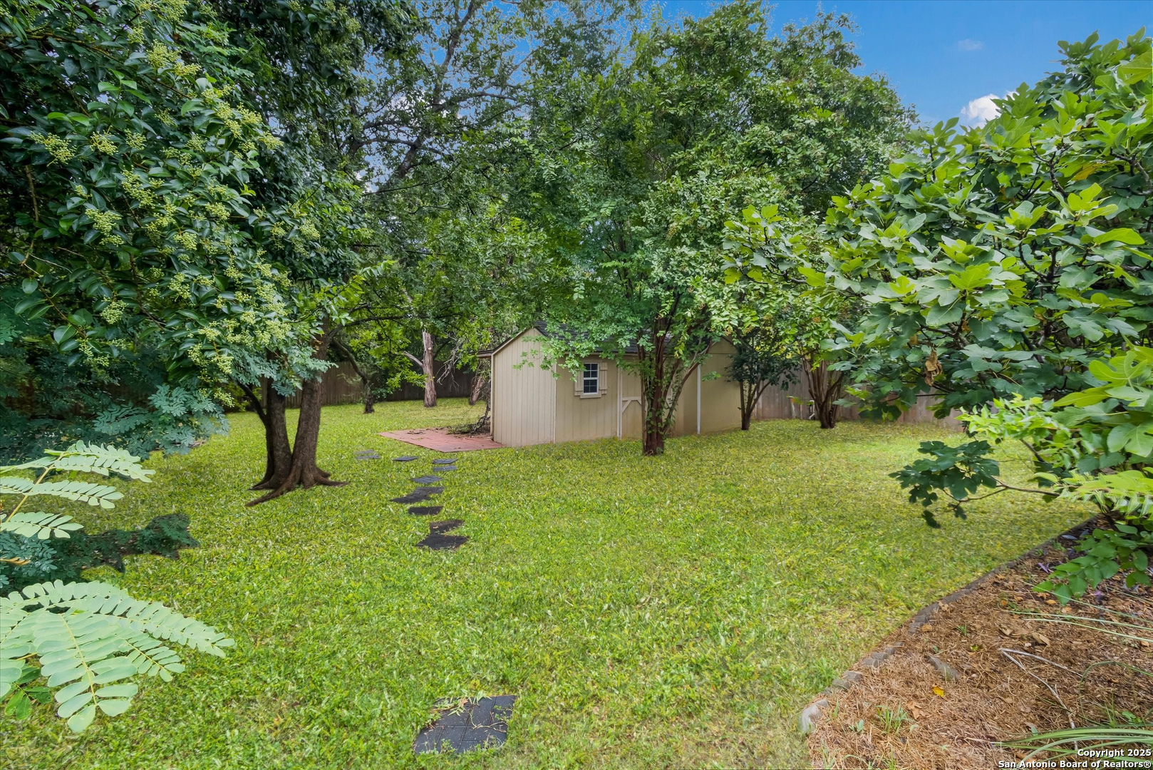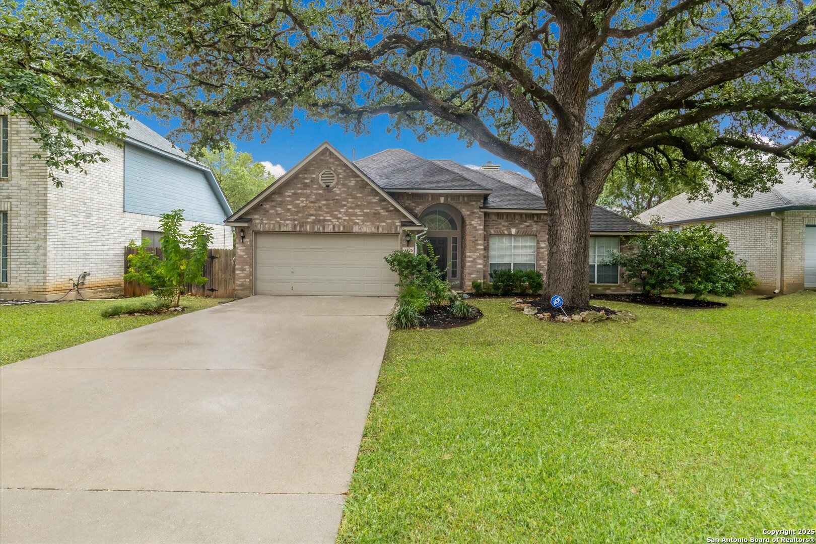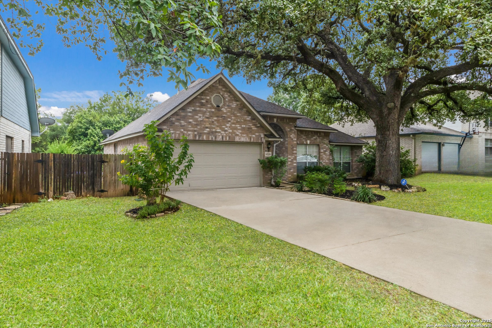 Welcome to 9326 Camino Venado, a beautifully updated traditional home nestled in a gated community on the Northside of San Antonio. This thoughtfully designed single-story home offers 2,083 square feet of living space with 3 bedrooms, 2 full baths, and a versatile study/flex space that could easily serve as a fourth bedroom. From the moment you arrive, the curb appeal is undeniable. Mature trees frame the brick exterior, creating a warm and inviting setting. Inside, you'll find fresh interior paint, new luxury vinyl plank flooring throughout the main living areas, and plush new carpet in the bedrooms. The open-concept layout is anchored by a light-filled living room with a cozy fireplace, seamlessly connecting to the dining area and updated kitchen. Featuring granite counters, painted cabinetry, and stainless-steel appliances, the kitchen is a perfect blend of style and function. The spacious primary suite offers a private retreat, complete with a walk-in closet and an updated bath boasting granite counters, dual vanities, and a soaking tub. Secondary bedrooms are generously sized, and the flexible bonus room adds even more versatility to the floorplan. Outdoors, the property truly shines. Set on a rare double lot totaling .39 acres, the backyard is a peaceful oasis dotted with mature shade trees-ideal for gatherings, play, or even adding a pool. With quick access to Loop 1604 and close proximity to top-rated Northside ISD schools, shopping, dining, and entertainment, this home offers both convenience and comfort. This is where your next chapter begins!