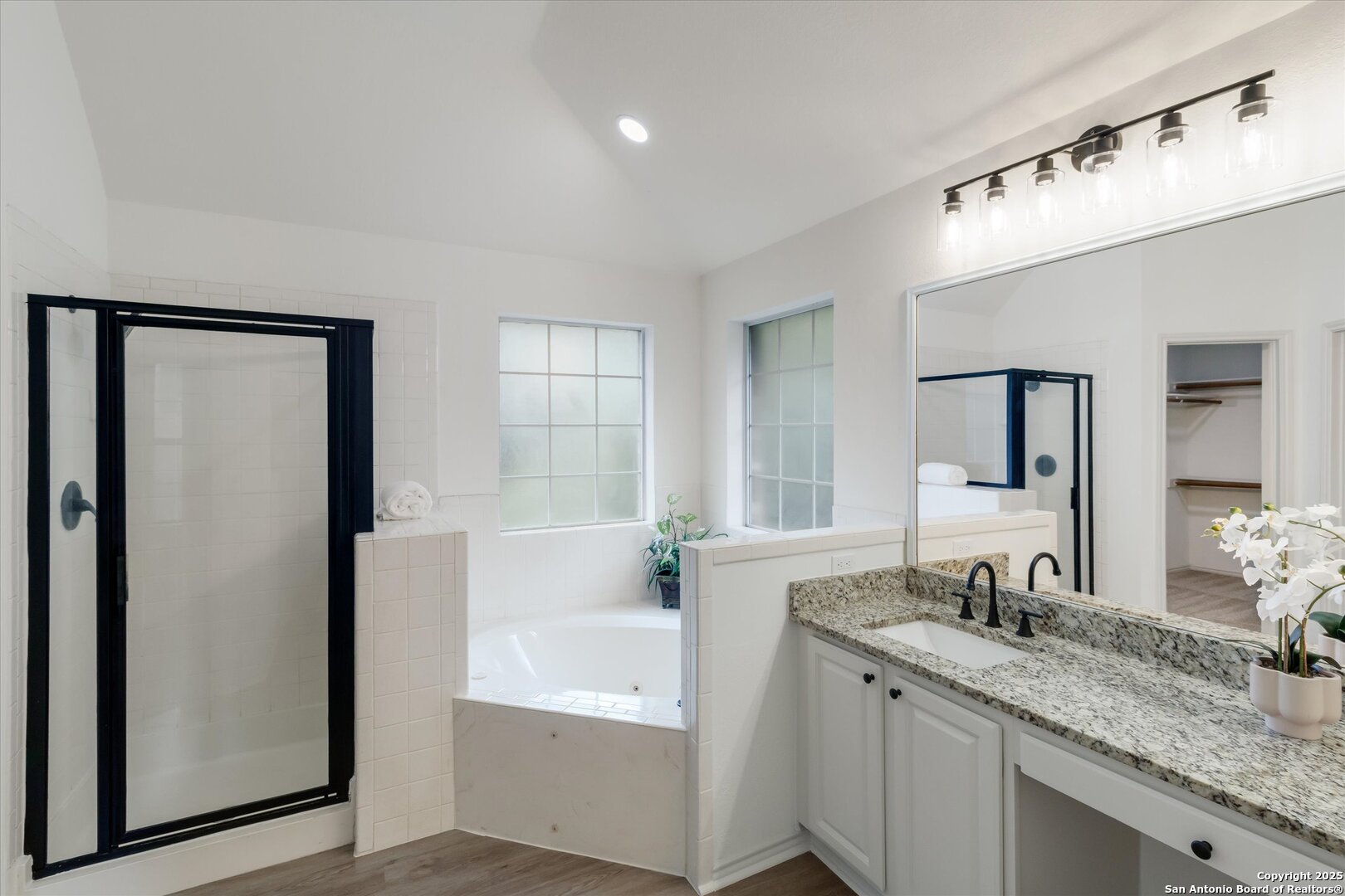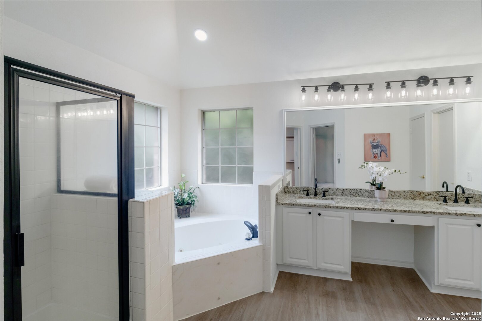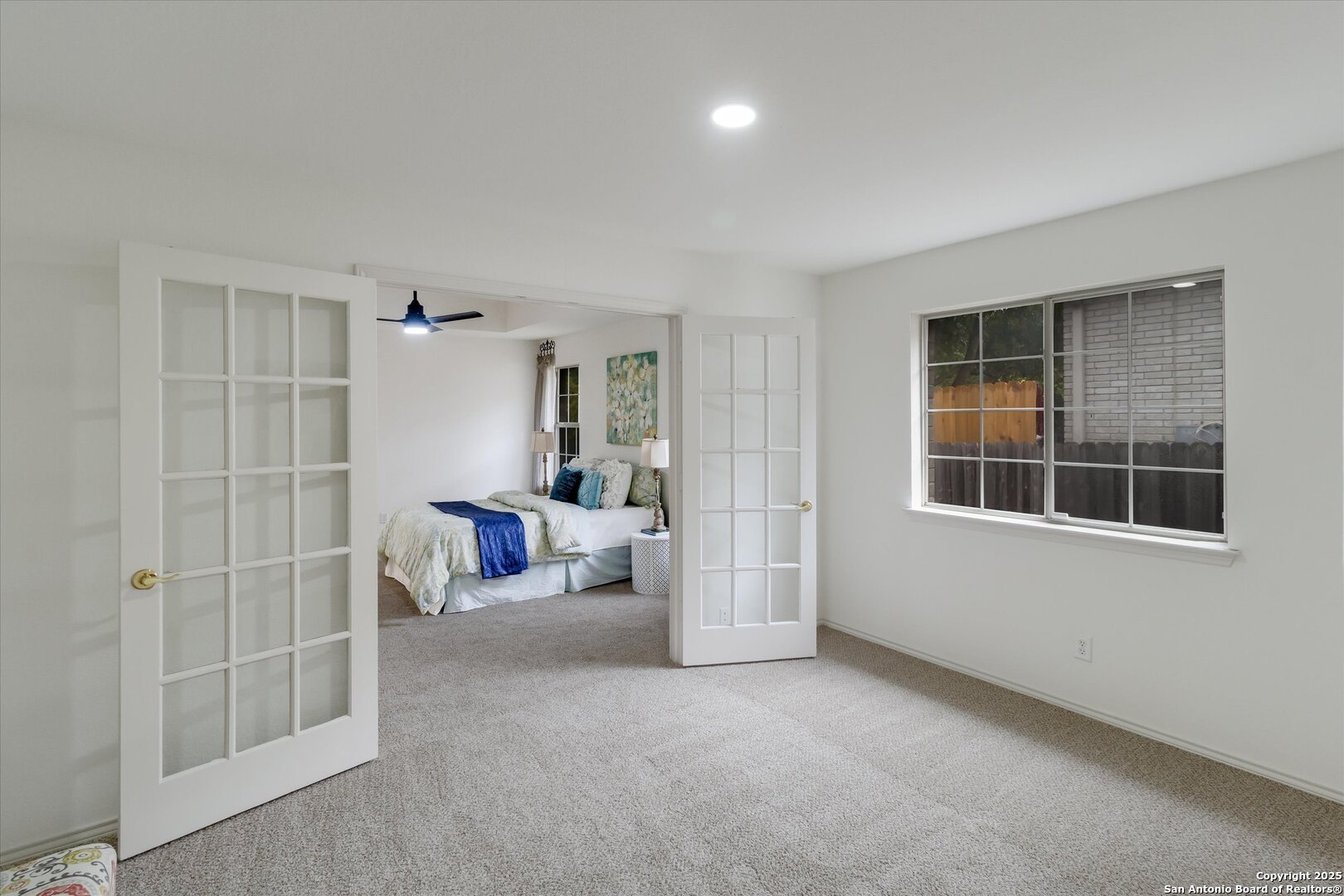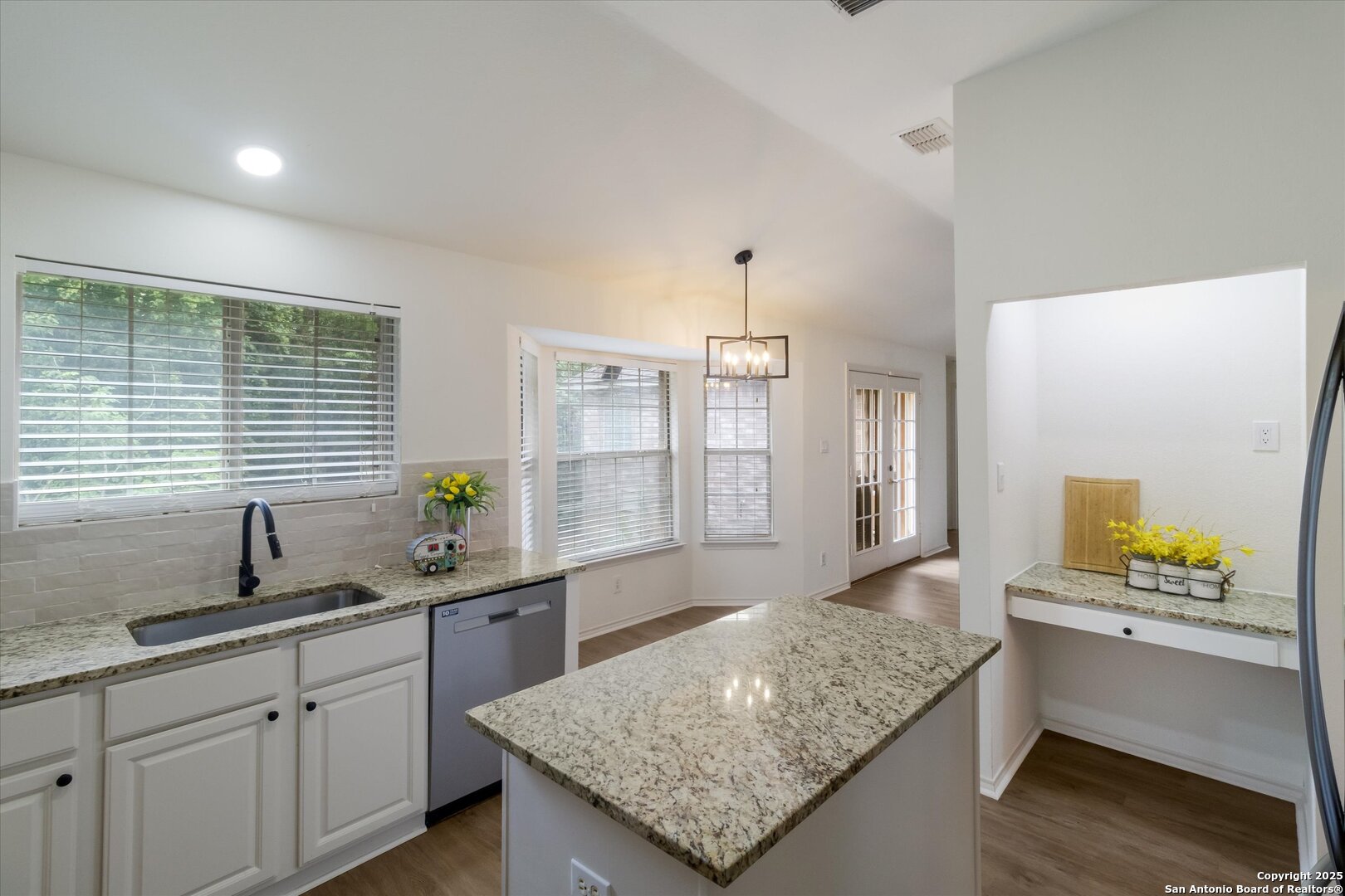 Welcome to 9326 Camino Venado, a beautifully updated traditional home nestled in a gated community on the Northside of San Antonio. This thoughtfully designed single-story home offers 2,083 square feet of living space with 3 bedrooms, 2 full baths, and a versatile study/flex space that could easily serve as a fourth bedroom. From the moment you arrive, the curb appeal is undeniable. Mature trees frame the brick exterior, creating a warm and inviting setting. Inside, you'll find fresh interior paint, new luxury vinyl plank flooring throughout the main living areas, and plush new carpet in the bedrooms. The open-concept layout is anchored by a light-filled living room with a cozy fireplace, seamlessly connecting to the dining area and updated kitchen. Featuring granite counters, painted cabinetry, and stainless-steel appliances, the kitchen is a perfect blend of style and function. The spacious primary suite offers a private retreat, complete with a walk-in closet and an updated bath boasting granite counters, dual vanities, and a soaking tub. Secondary bedrooms are generously sized, and the flexible bonus room adds even more versatility to the floorplan. Outdoors, the property truly shines. Set on a rare double lot totaling .39 acres, the backyard is a peaceful oasis dotted with mature shade trees-ideal for gatherings, play, or even adding a pool. With quick access to Loop 1604 and close proximity to top-rated Northside ISD schools, shopping, dining, and entertainment, this home offers both convenience and comfort. This is where your next chapter begins!