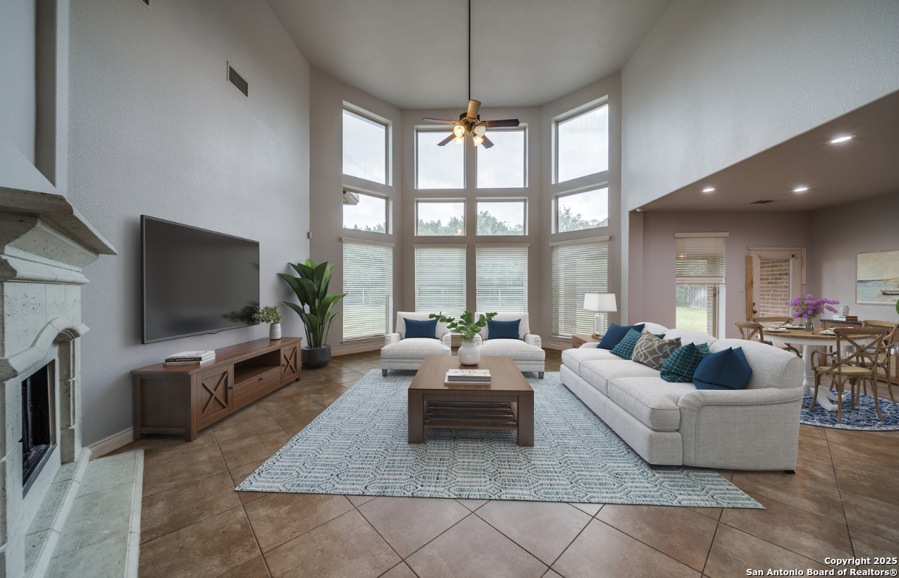 Welcome to this stunning two-story home, proudly standing as the largest home currently listed in the highly sought-after Preserve neighborhood of New Braunfels. With six spacious bedrooms, four and a half bathrooms, and a three-car garage, this home offers exceptional space, flexibility, and timeless elegance. Step inside to soaring ceilings, a dramatic curved staircase, fresh interior paint, and an open-concept layout drenched in natural light. The main level features a formal dining room, a private office with French doors, and a welcoming living room with a cozy fireplace and serene backyard views. The gourmet kitchen is a chef's dream, featuring granite countertops, a gas cooktop, double ovens, and a central island-perfect for hosting and entertaining. The luxurious primary suite is tucked away on the main floor, complete with dual walk-in closets and a spa-like ensuite bath. An additional downstairs bedroom and full bath provide the perfect space for guests or multi-generational living. Upstairs, you'll find three generously sized bedrooms, two full bathrooms, and a large game/media room for endless fun and relaxation. Step outside to a covered patio with ceiling fans overlooking a beautifully fenced yard that backs to a tranquil greenbelt-ideal for privacy and enjoying nature. All just minutes from Gruene, downtown New Braunfels, and top-rated schools. This incredible home truly has it all-space, style, and location!