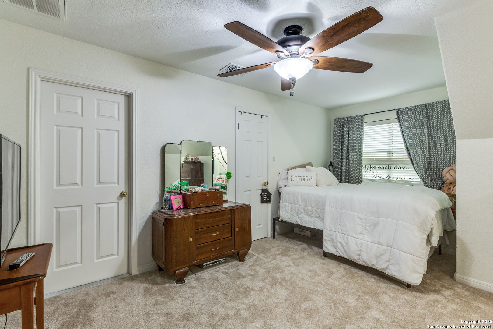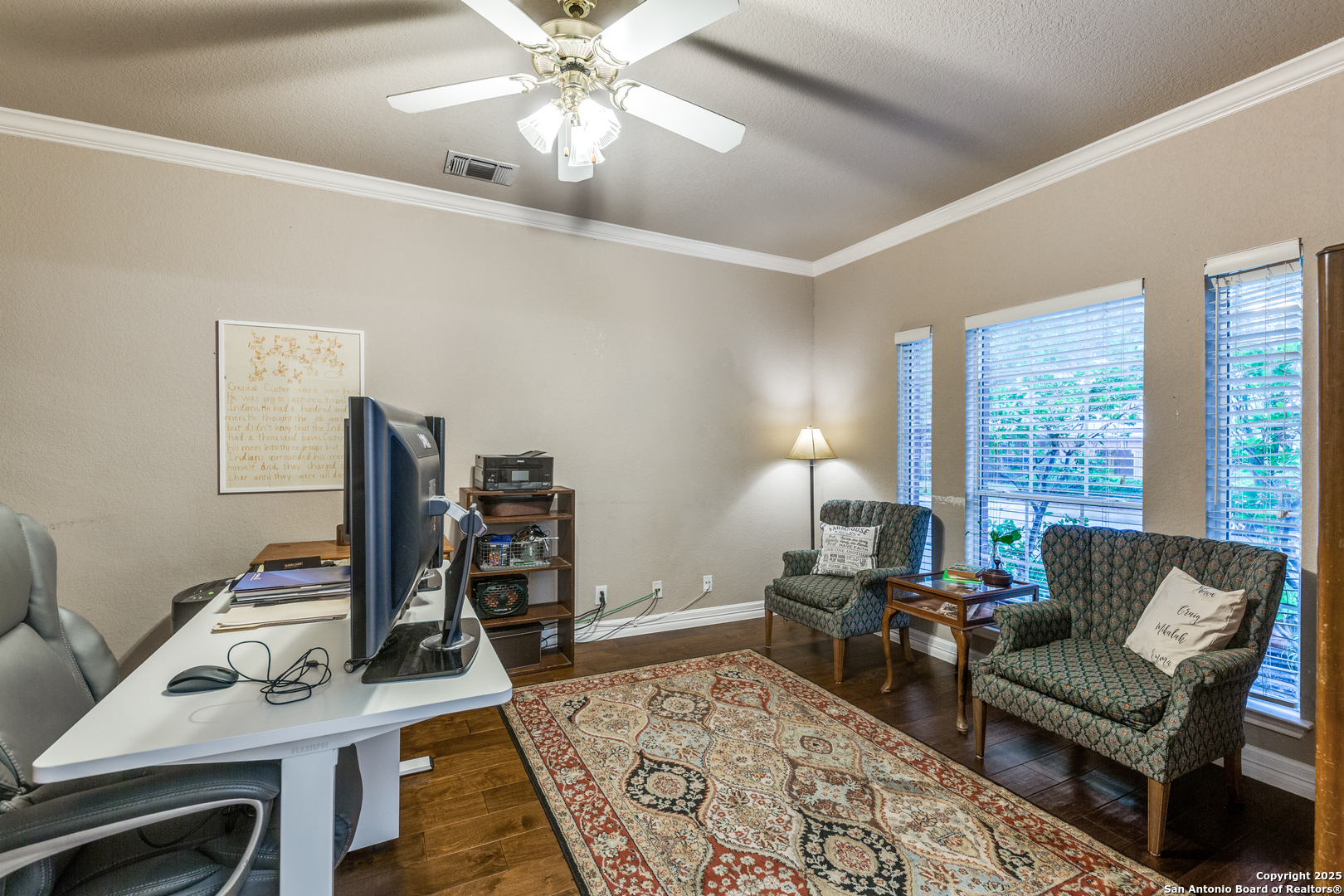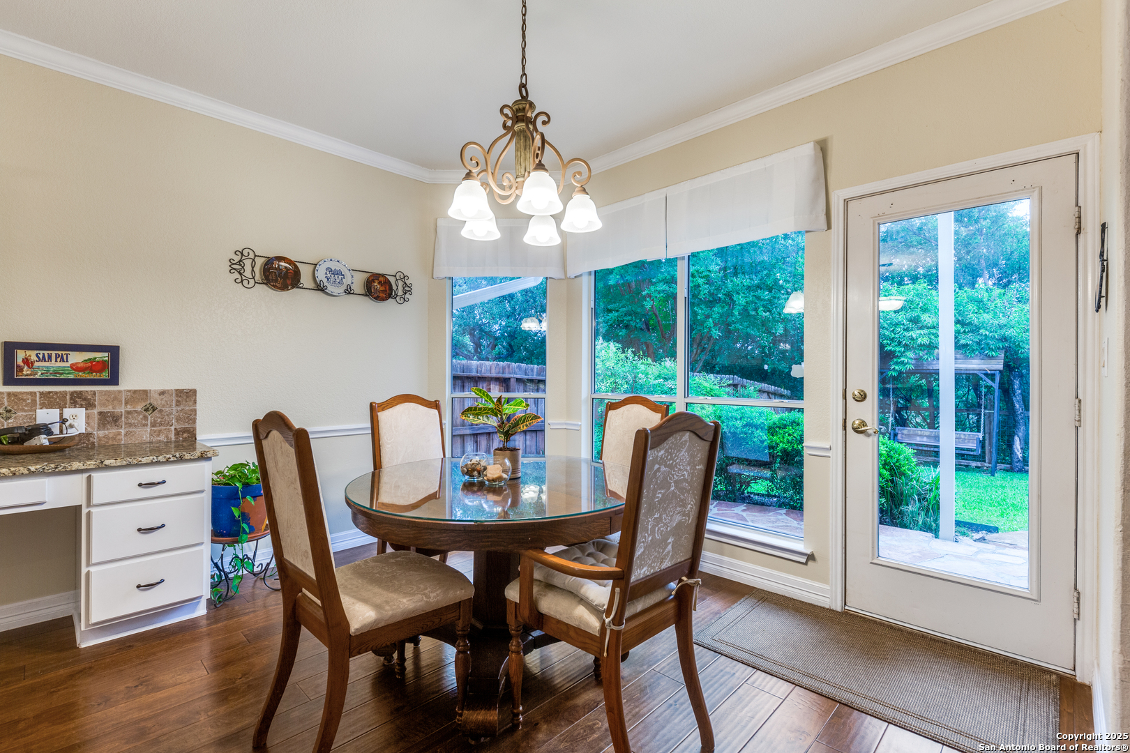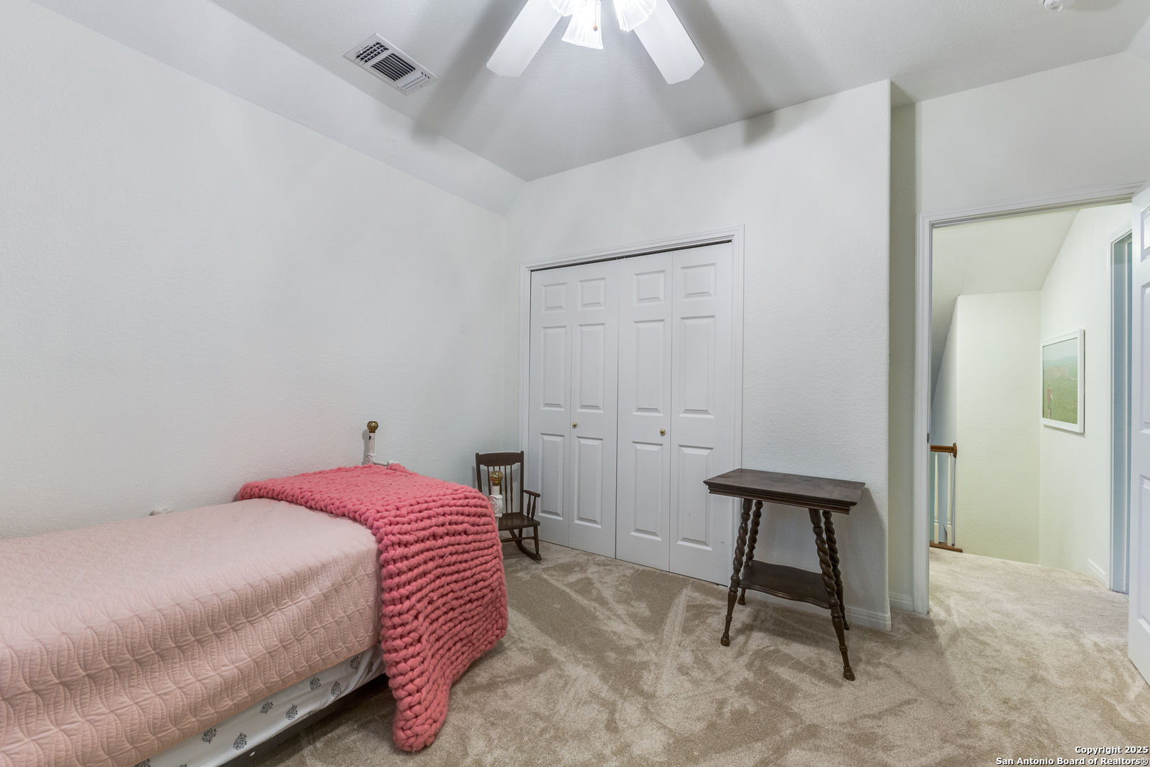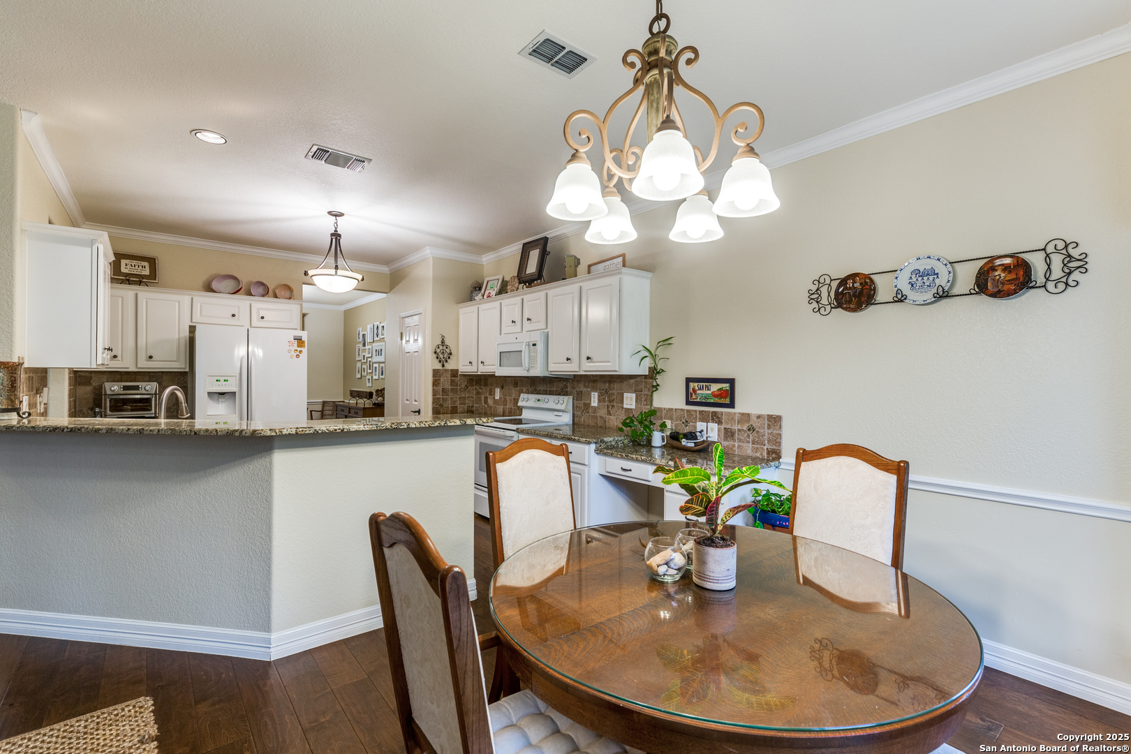 Nestled in the gated community of Cedar Springs in Helotes, this beautiful two-story 2628 sq. ft. home offers 4 bedrooms and 2.5 baths on a greenbelt lot. The spacious layout includes a formal dining room, a dedicated office, and a generous family room with stone fireplace-perfect for entertaining. The kitchen features granite countertops and overlooks the main living space with rich hardwood flooring. The primary bedroom is conveniently located downstairs and boasts a stunning remodeled en-suite bath with updated shower, tub, countertops, tile, and fixtures. Upstairs, you'll find three large bedrooms and a full bathroom. One of the bedrooms includes attic access and is already plumbed for a potential additional bathroom. The fenced backyard provides a serene retreat, with the lot extending to the creek bed for added privacy and space. Enjoy the fantastic neighborhood amenities, including a pool, tennis courts, clubhouse, and a park/playground. Located just minutes from H-E-B, Home Depot, and nearby shopping centers, this home combines comfort, convenience, and community. ** swing in backyard does not convey**